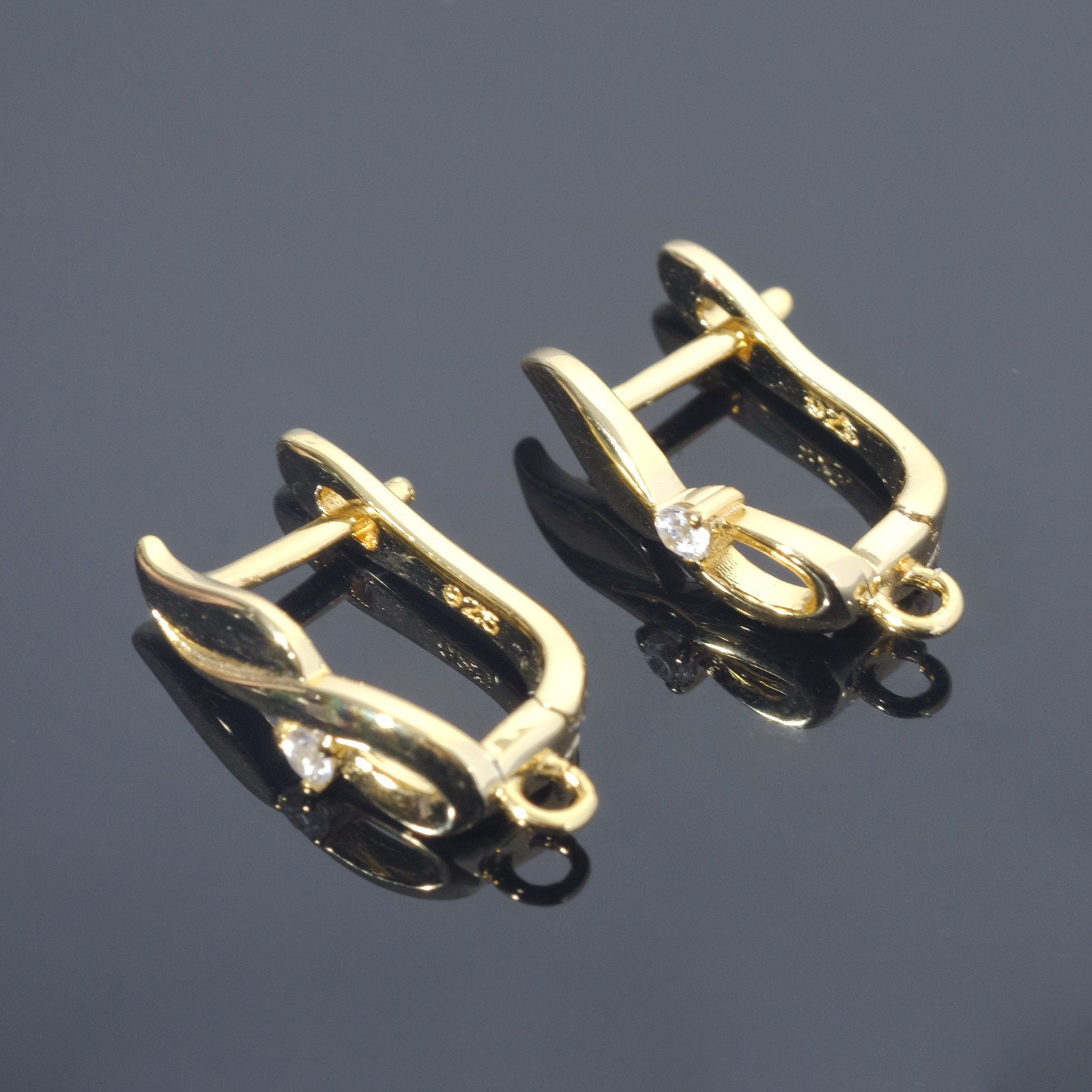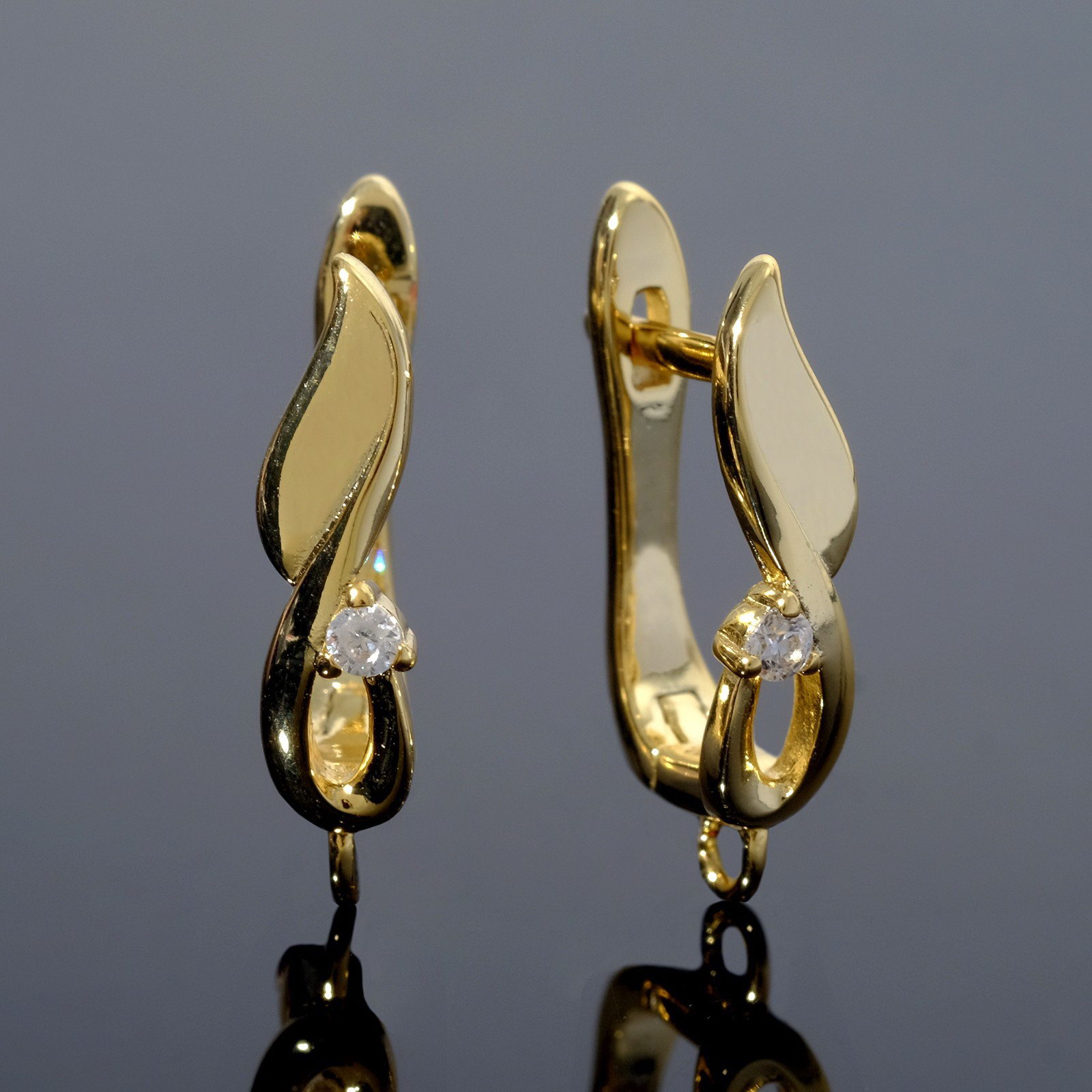 Швензы родированные "Женственность", белые в золоте, 0.5x1.8x1 см., Китай