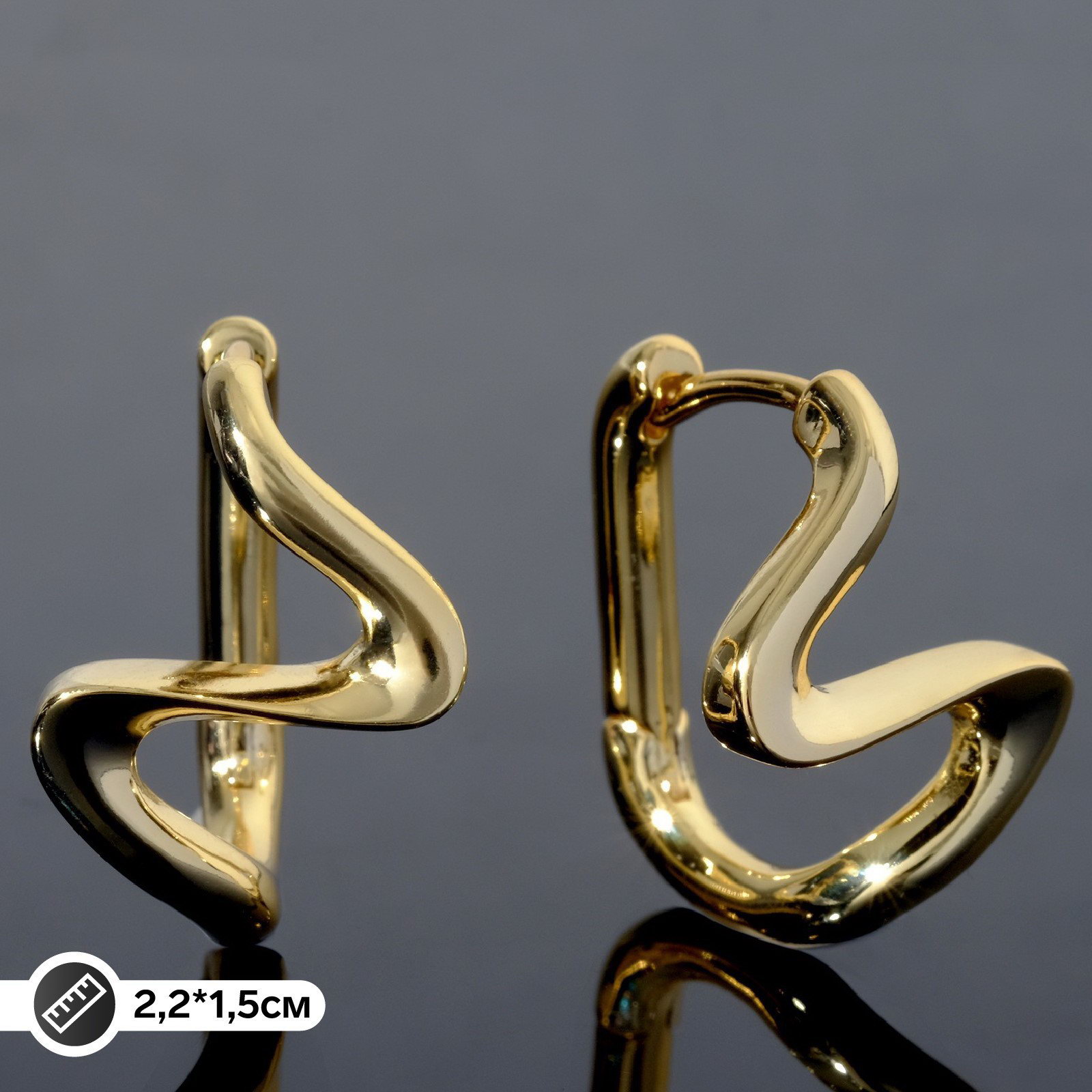 Швензы родированные "Гибкость" волна, цвет золото, 1.5x2.2x0.3 см., Китай