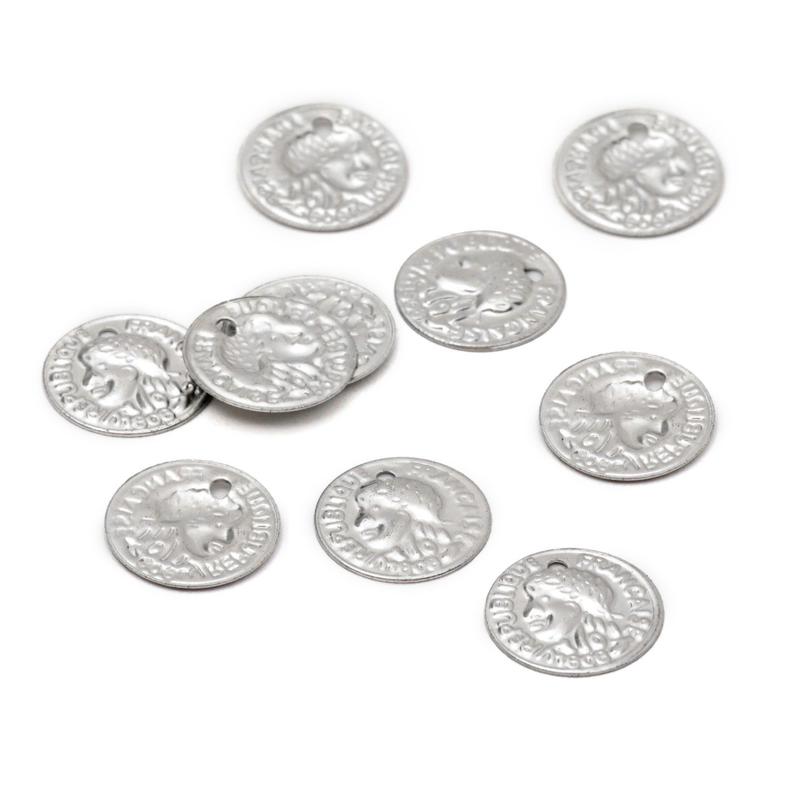 Подвеска "Монета римская" d=10 мм, набор 10 шт., цвет серебро, 1x1x0.2 см., QF, Китай