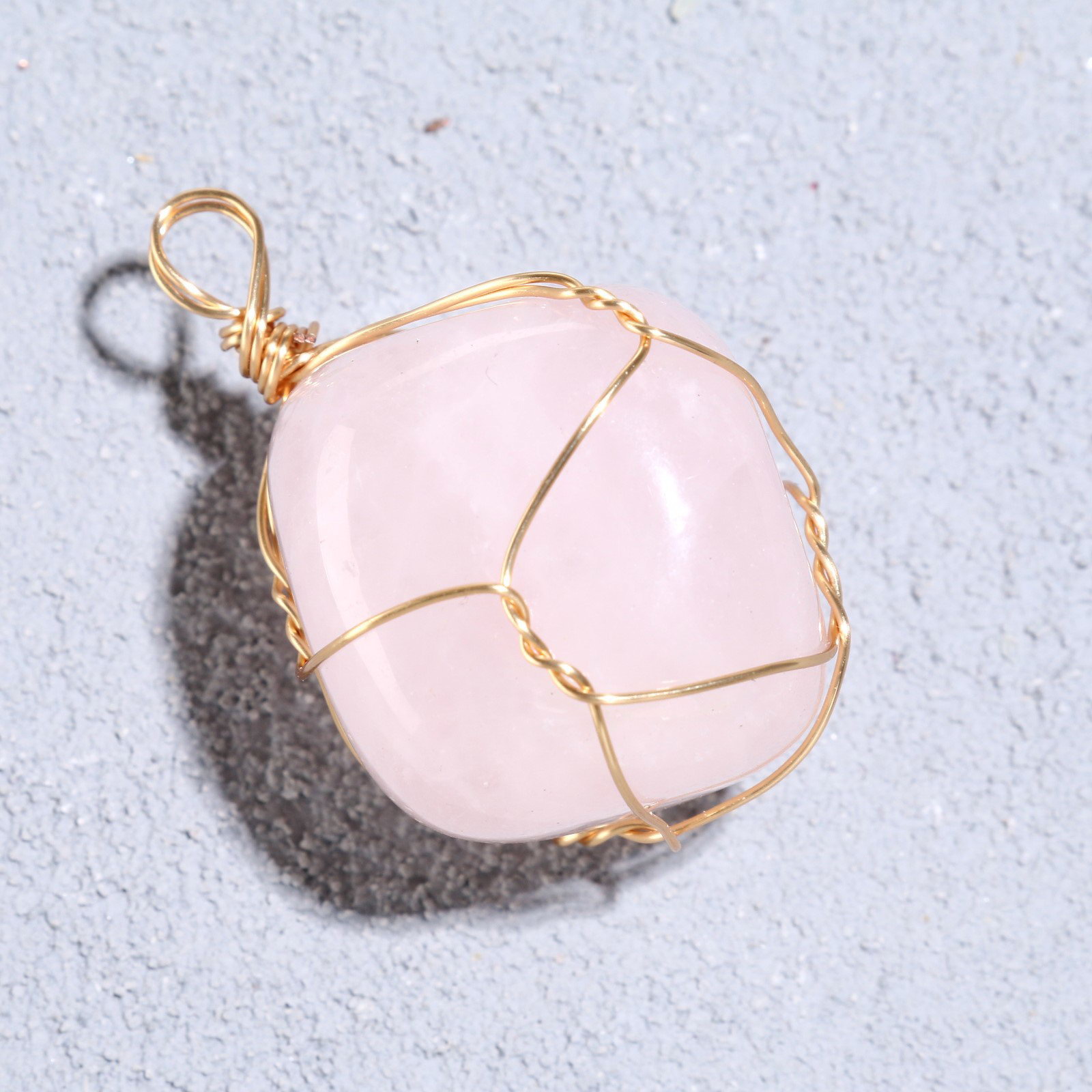 Подвеска из камня "Кварц розовый", в проволоке, 3x2x2 см., Китай