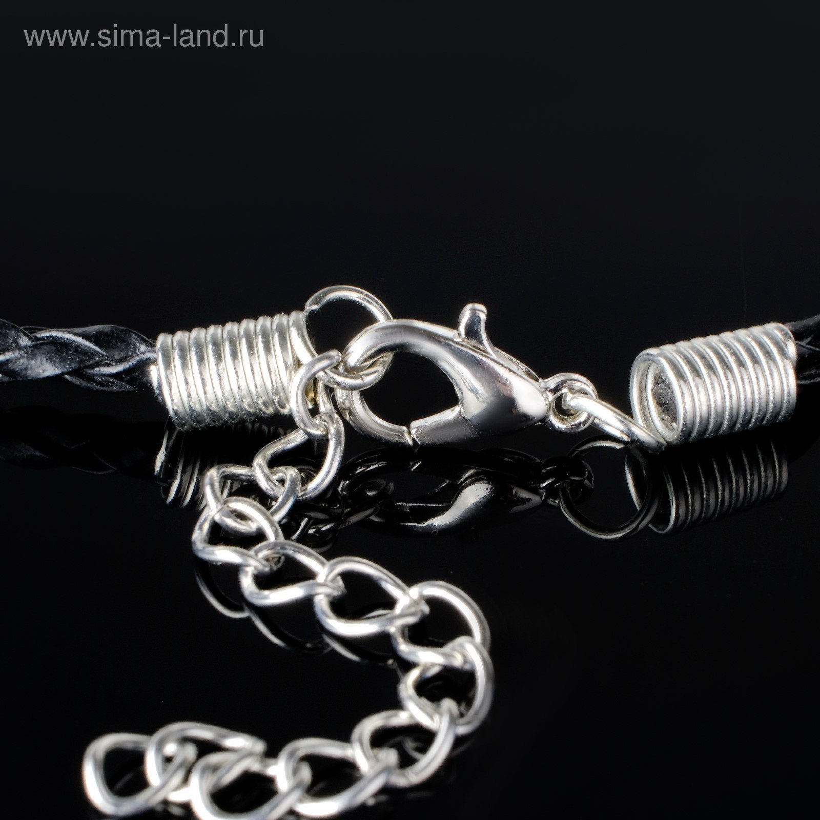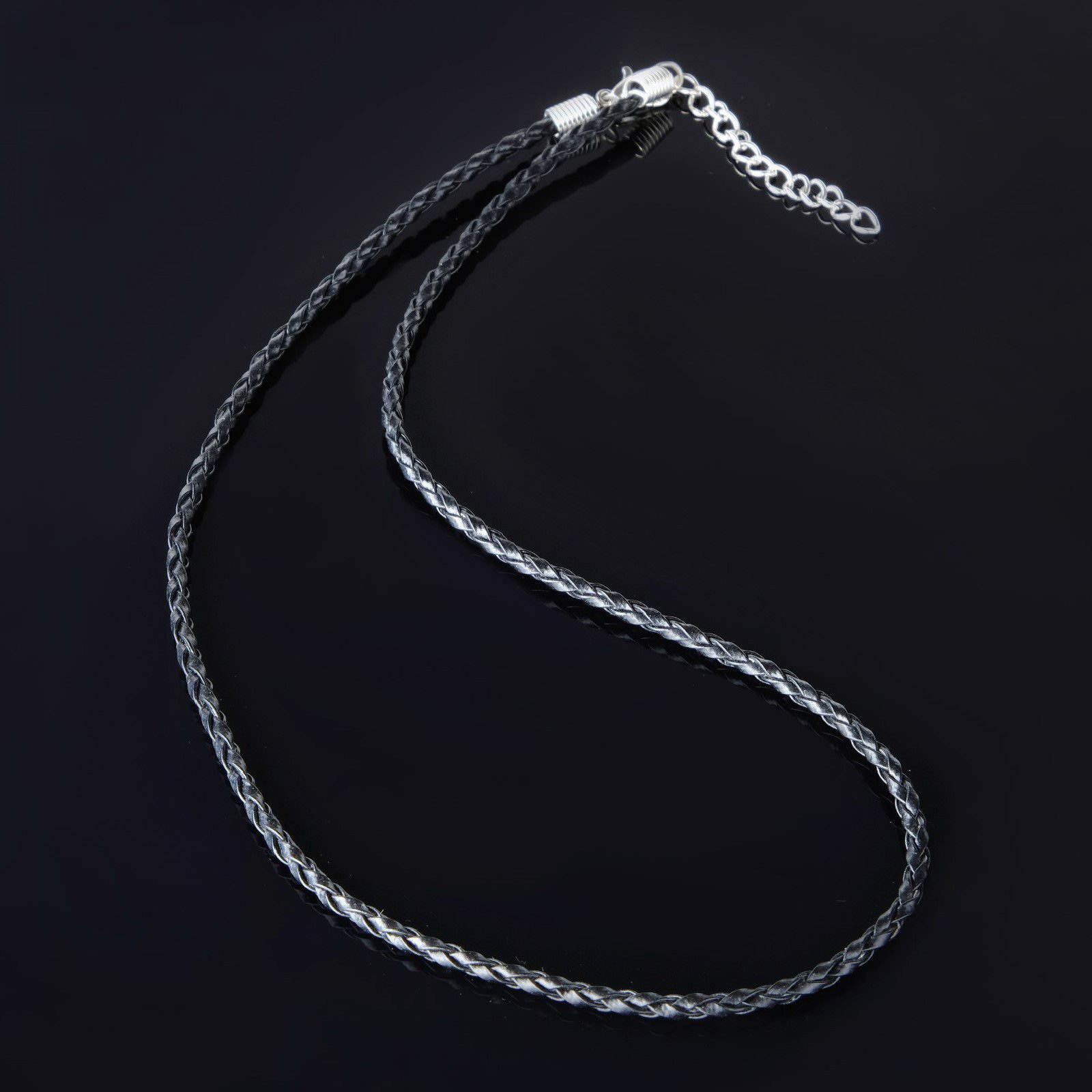 Шнурок кожаный для кулона, d=3 мм, 45 см, чёрный, косичка, 30х30х0.3 см., QF, Китай