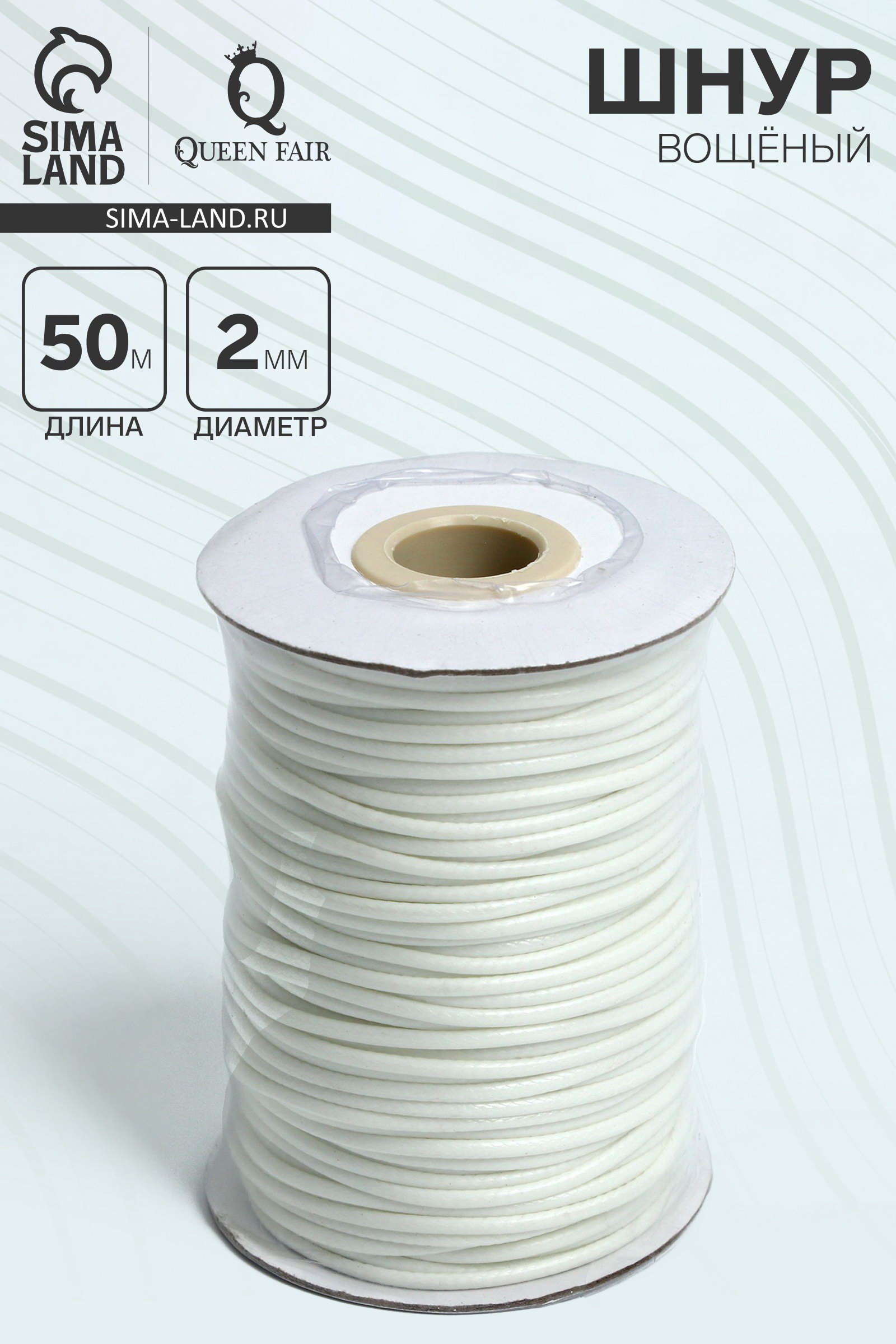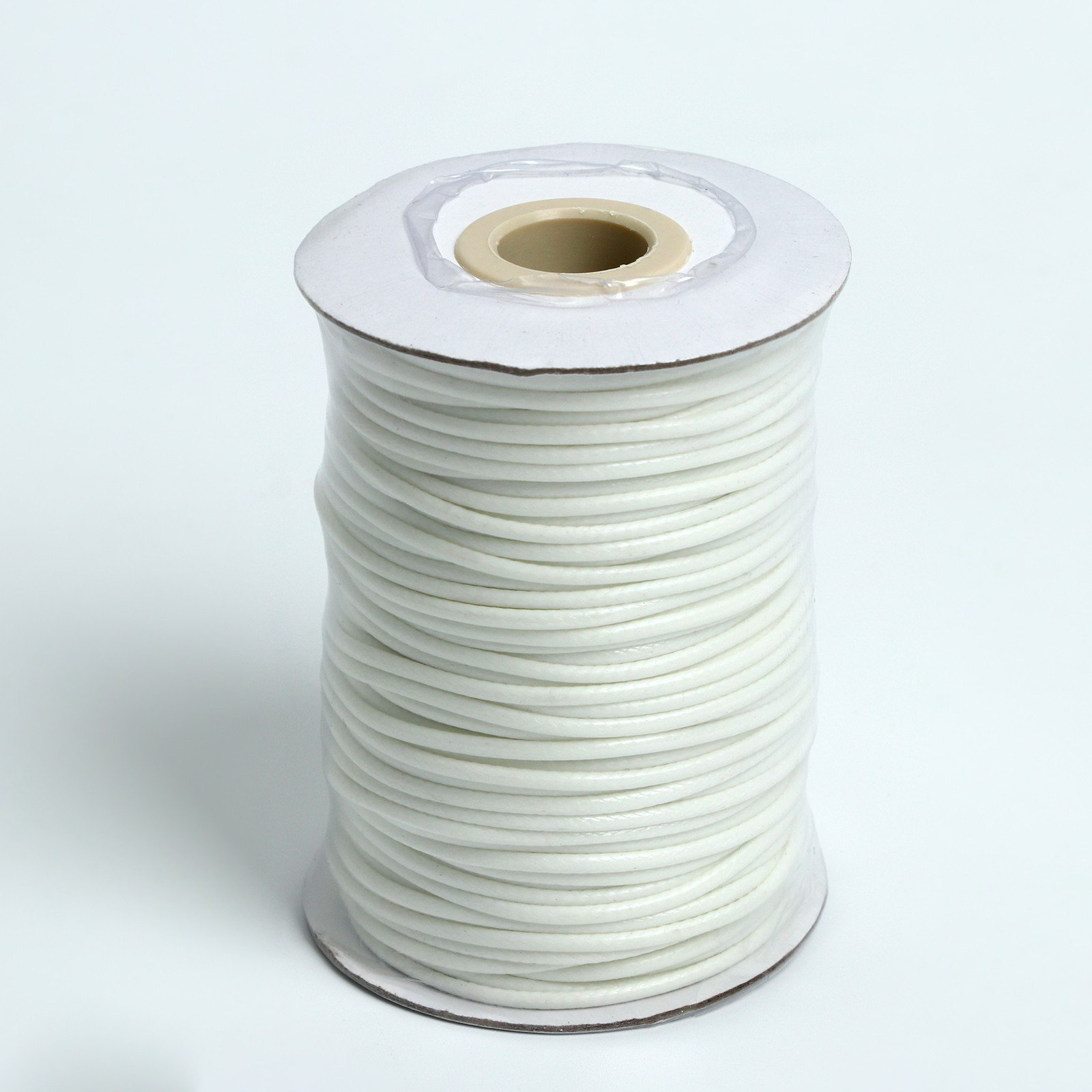 Шнур вощеный полиэстера d=2 мм, L=50 м, цвет белый, 20х20х0.2 см., QF, Китай