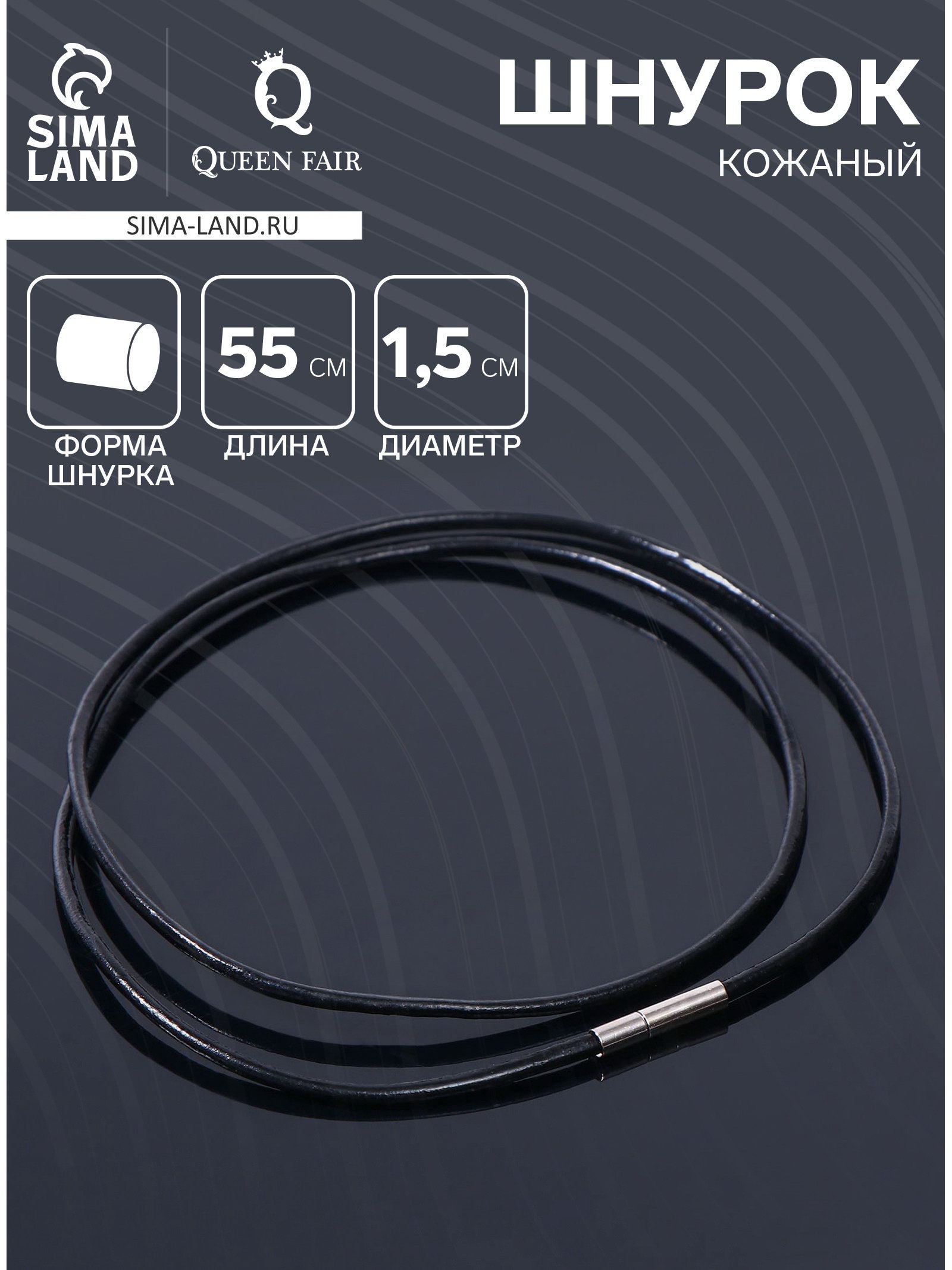 Шнурок кожаный d=1.5мм, 55см, цвет чёрный, 0.2x55x0.2 см., Queen fair, Китай