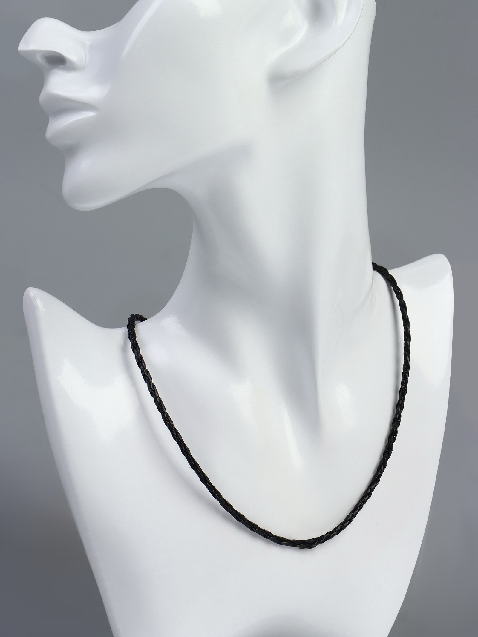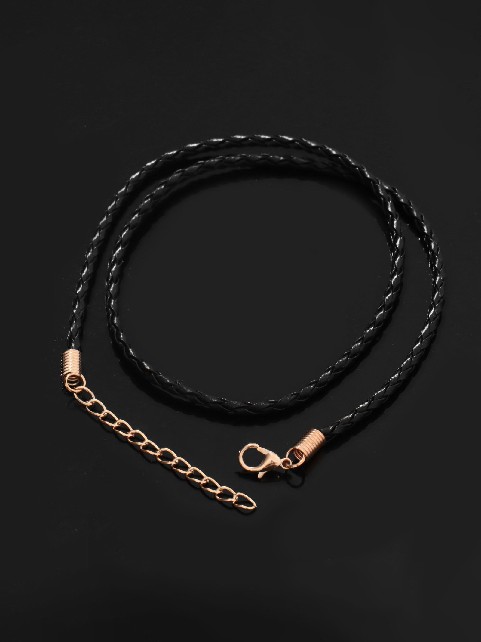 Шнурок кожаный d=3 мм, 45 см, чёрный в золоте, косичка, 30х30х0.3 см., QF, Китай