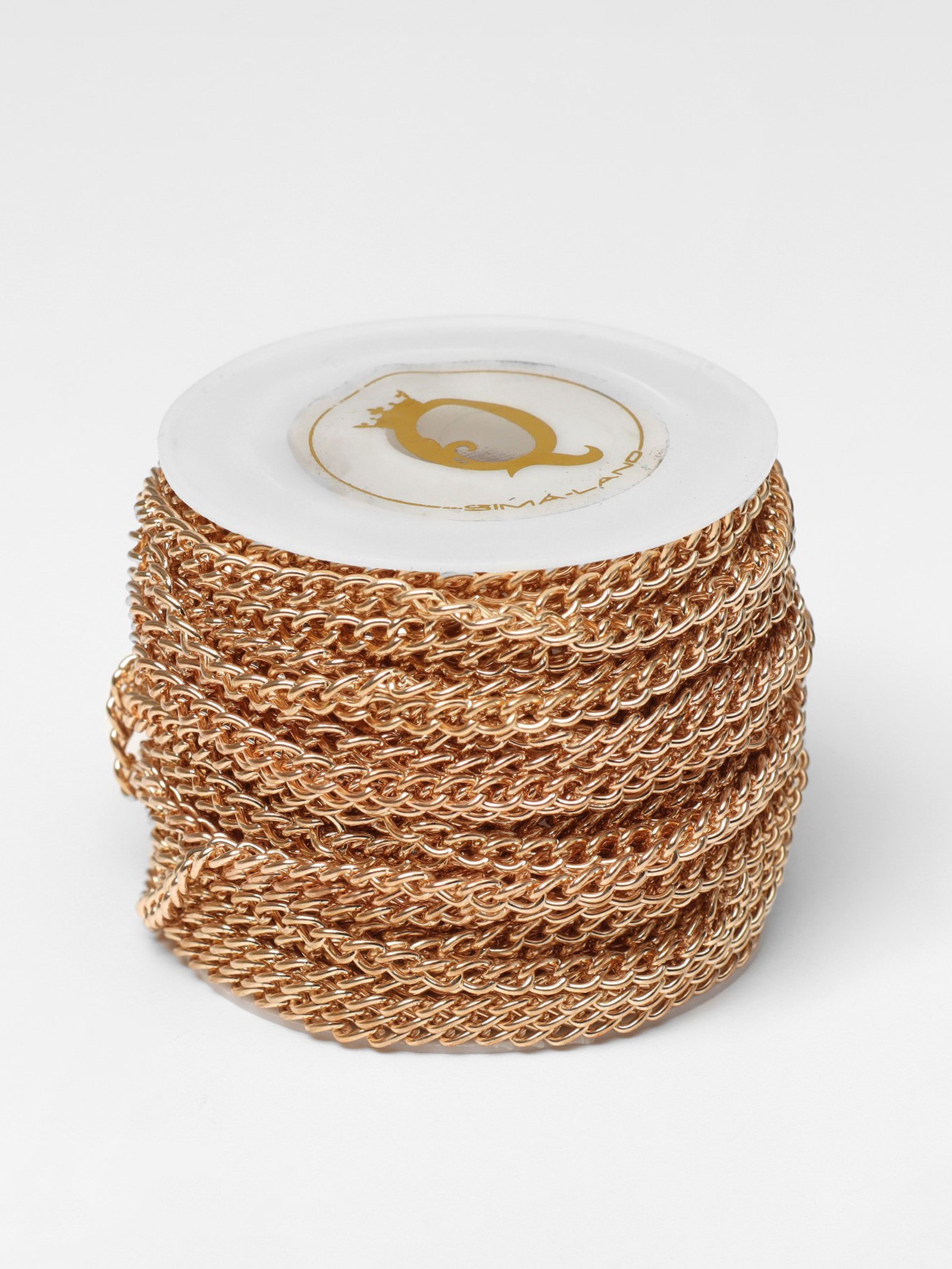 Цепочка железная без карабина на бобине, 0.3x0.3x0.1 см, L=10 м, цвет золото, 0.3x1000x0.1 см., QF, Китай