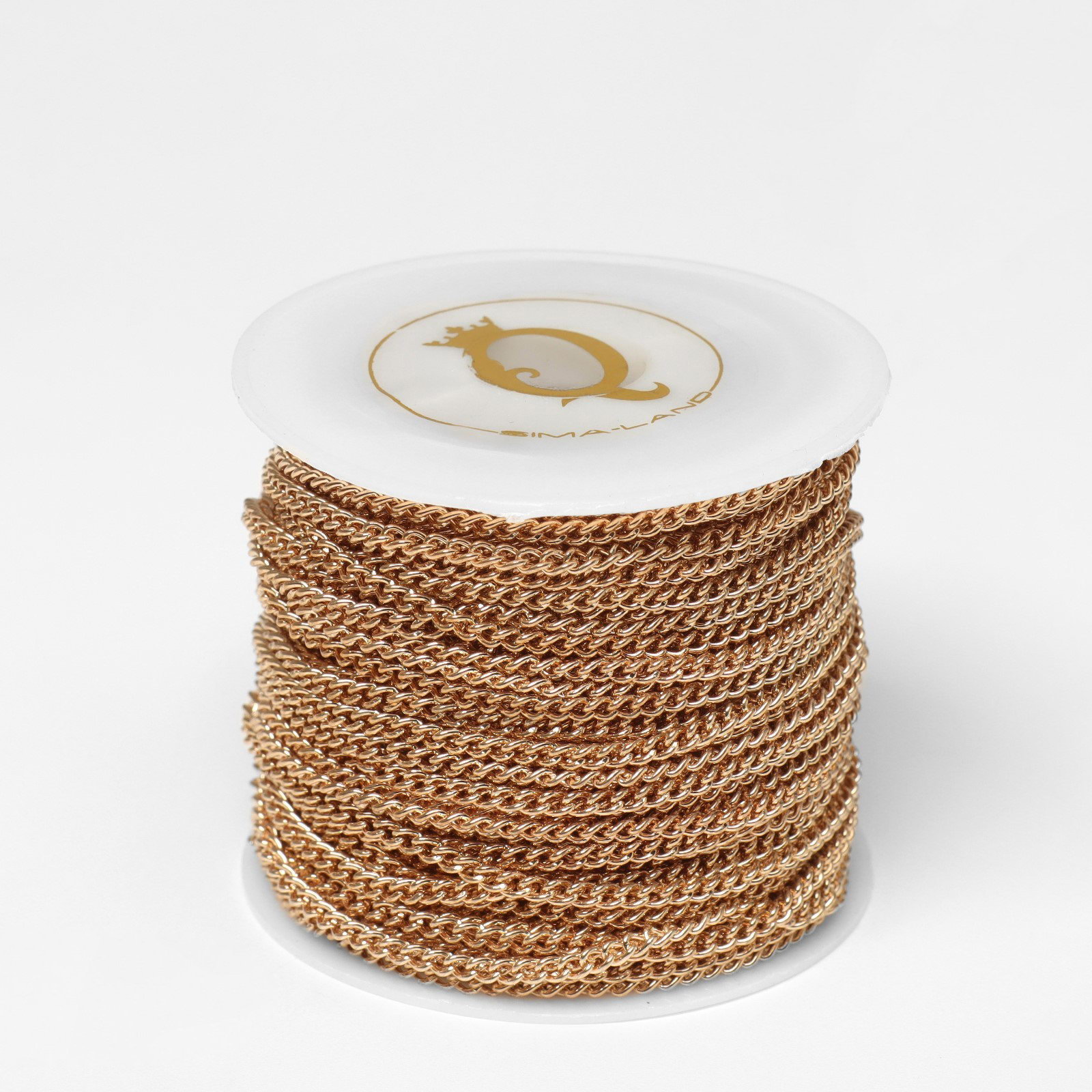 Цепочка железная без карабина на бобине, 0.11x0.11x0.1 см, L=10 м, сердце, цвет золото, 0.1x1000x0.1 см., QF, Китай