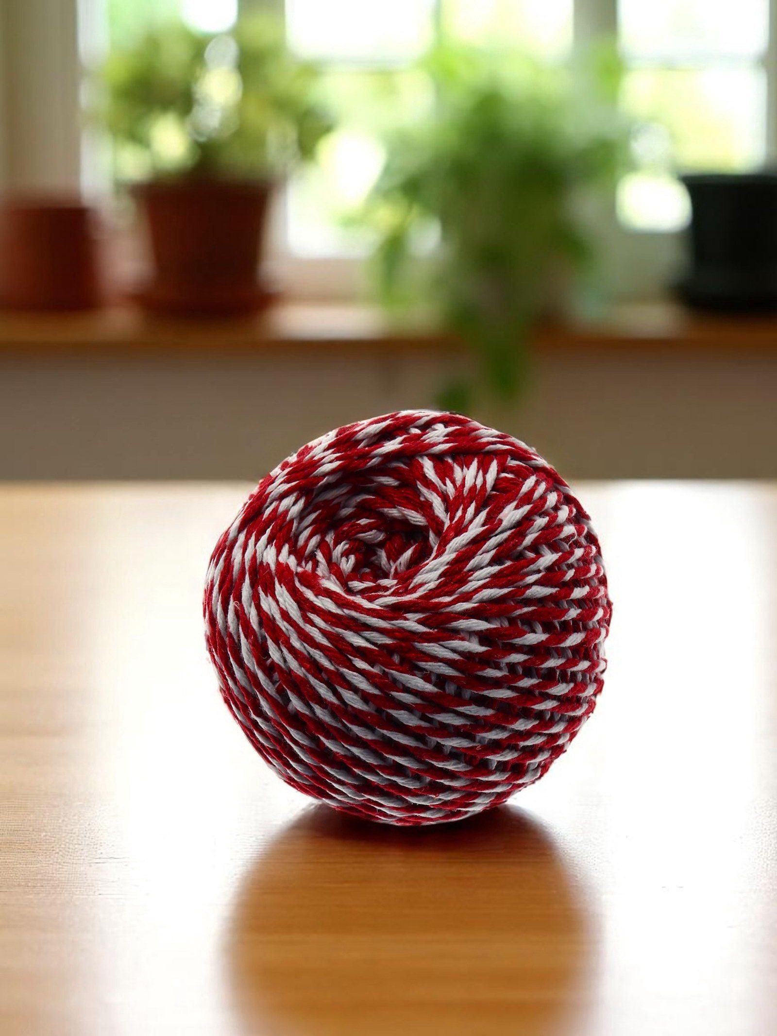 Шнур "Шпагат" длина 100 м, d=2 мм, хлопок, красно-белый, 20х20х8 см., QF, Китай