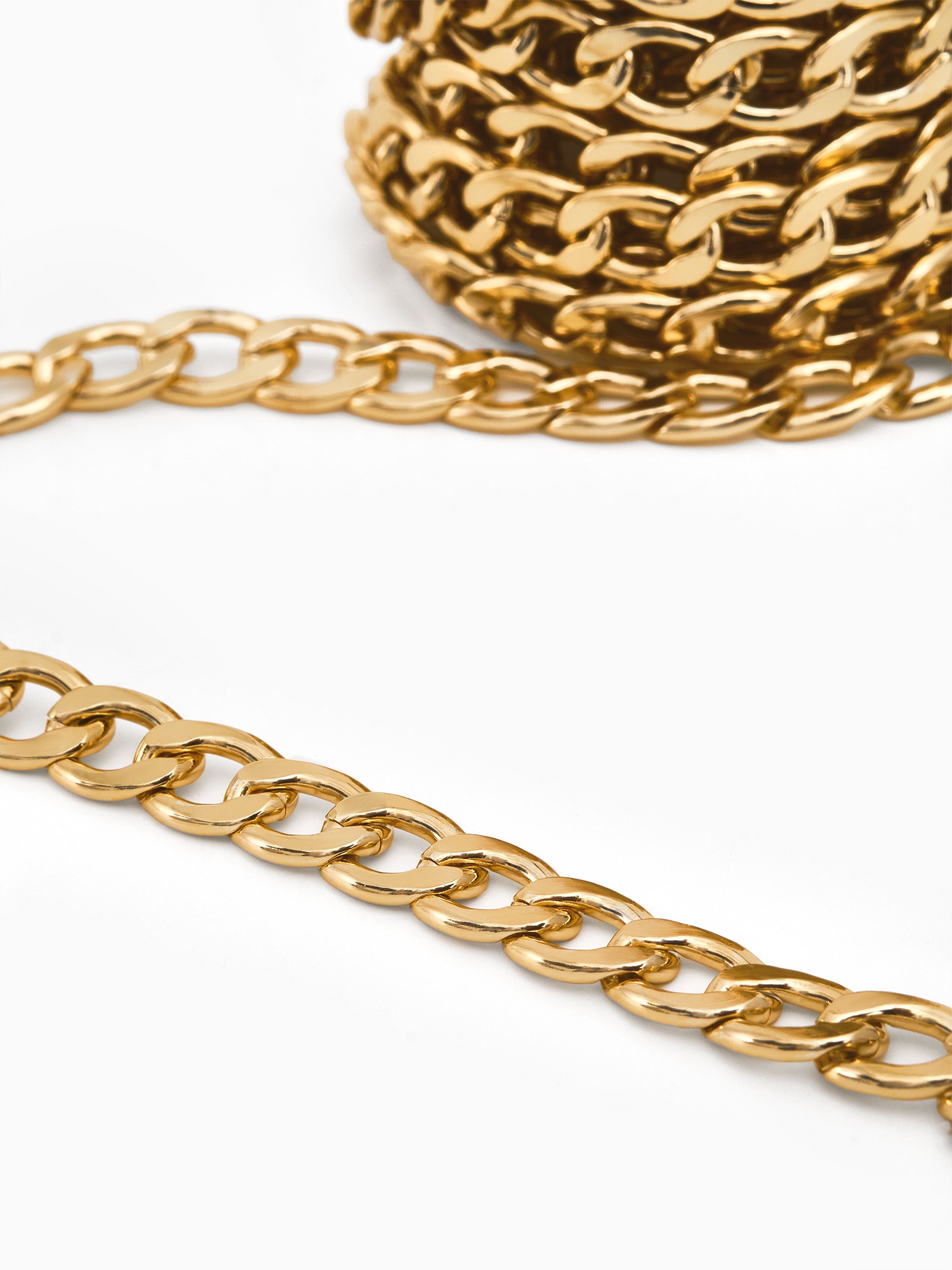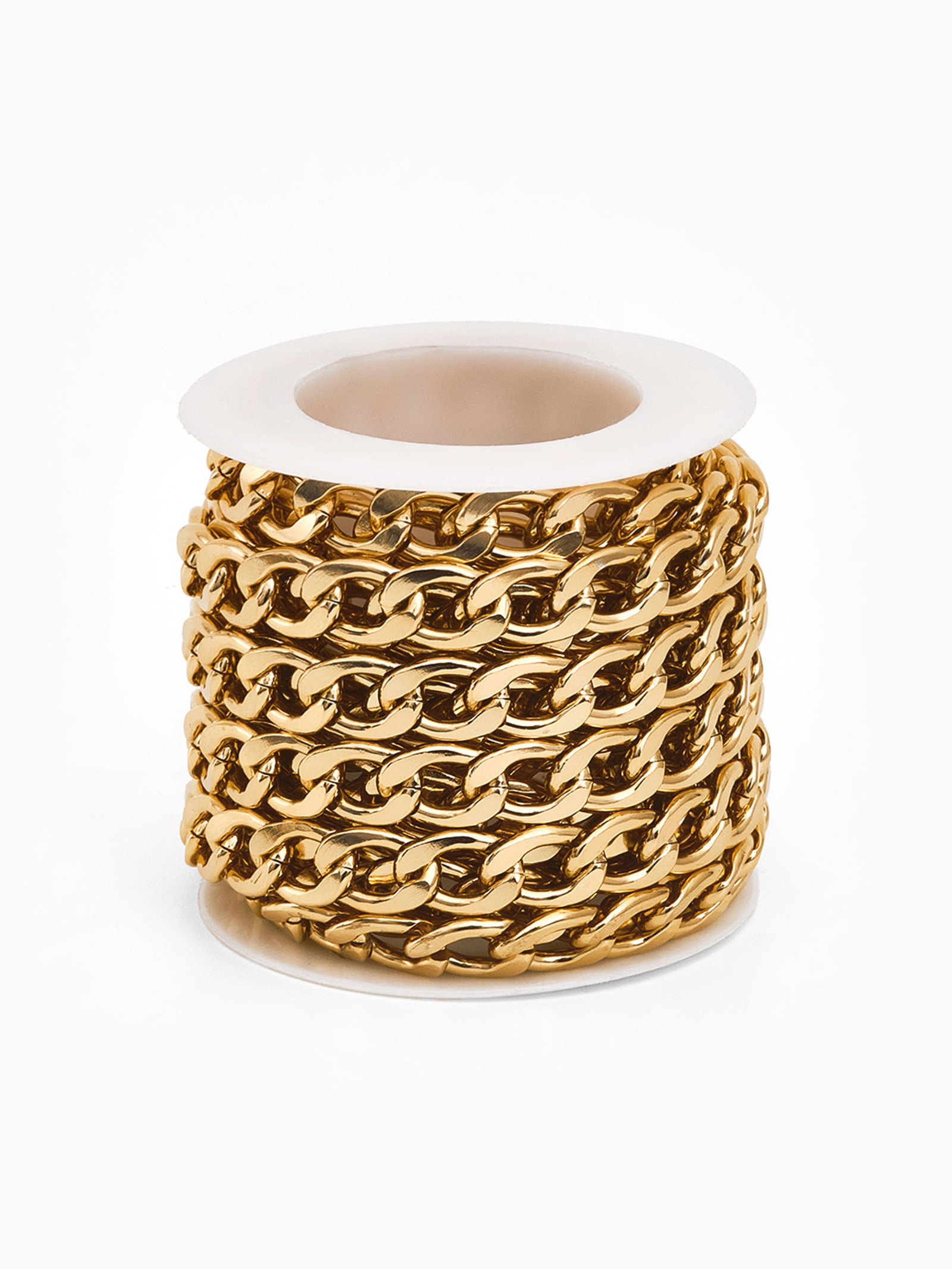 Цепочка с крупными звеньями без карабина на бобине, 13х8.5 мм, L=3м, цвет золото, 1.3x3000x0.9 см., QF, Китай