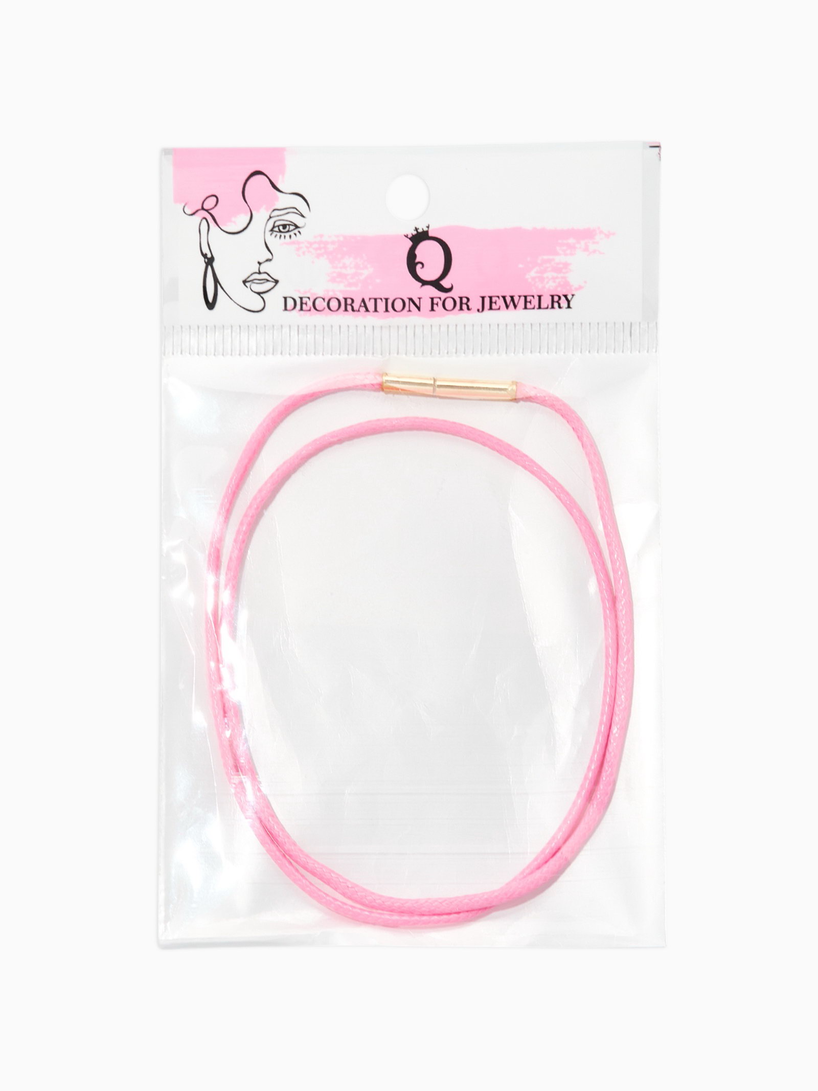 Шнурок вощеный, 40 см, d=2 мм, винтовой замок, нейлон, розовый с золотом, 20х20х0.2 см., QF, Китай