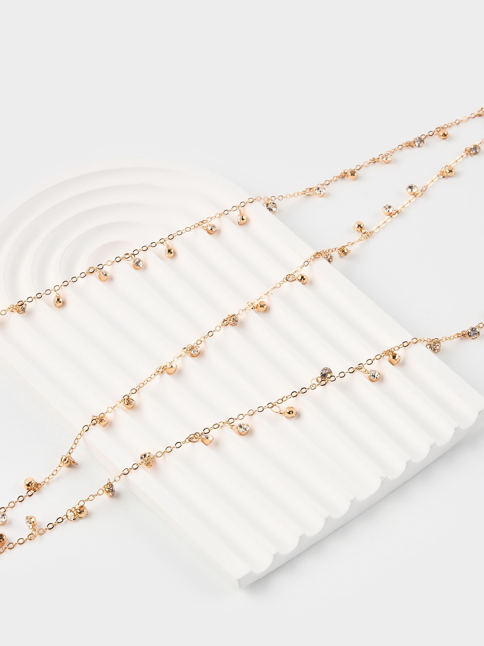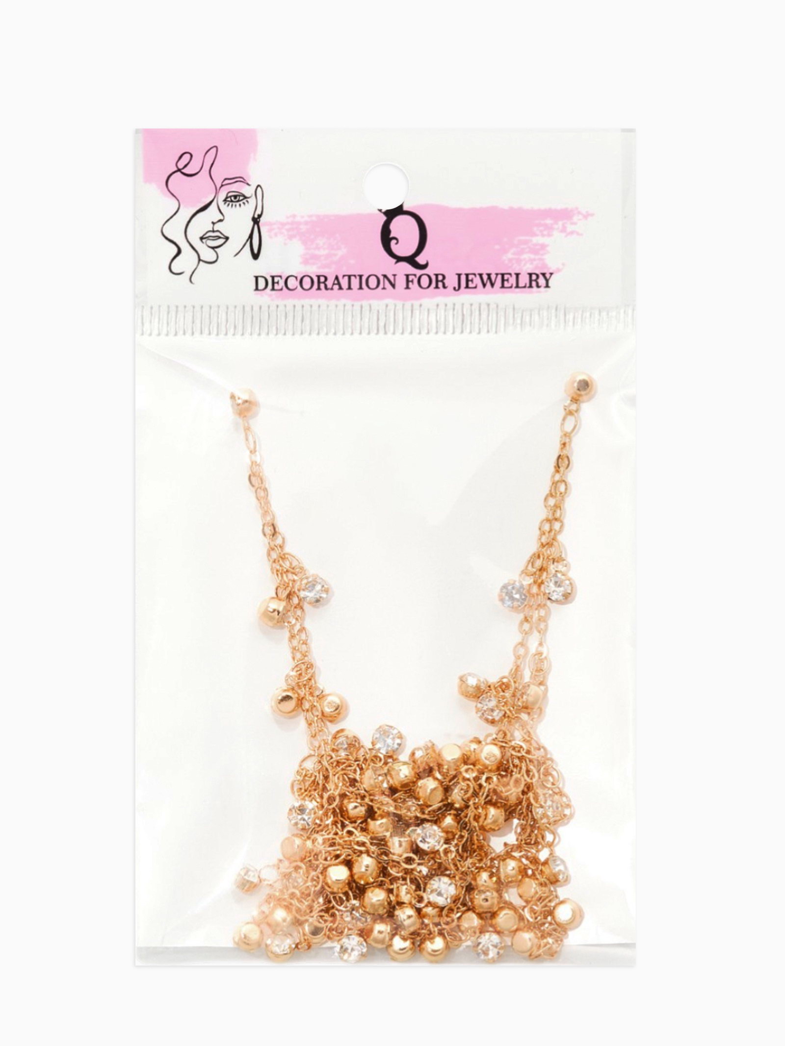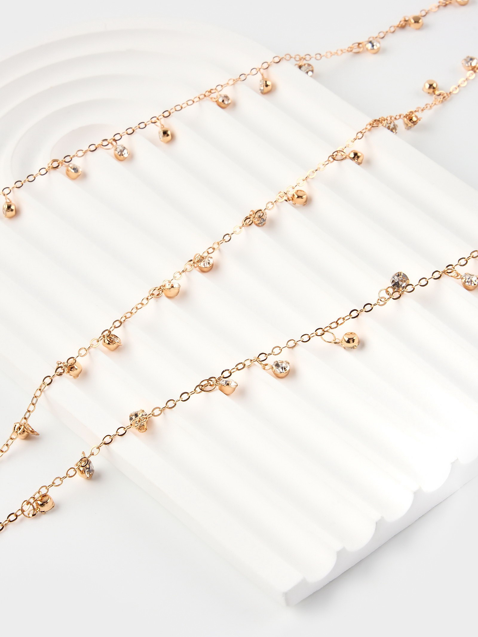 Цепочка со стразами, 4 мм, L=100 см, мелкое плетение 2x1.8 мм, цвет золото, 0.2x100x0.4 см., QF, Китай