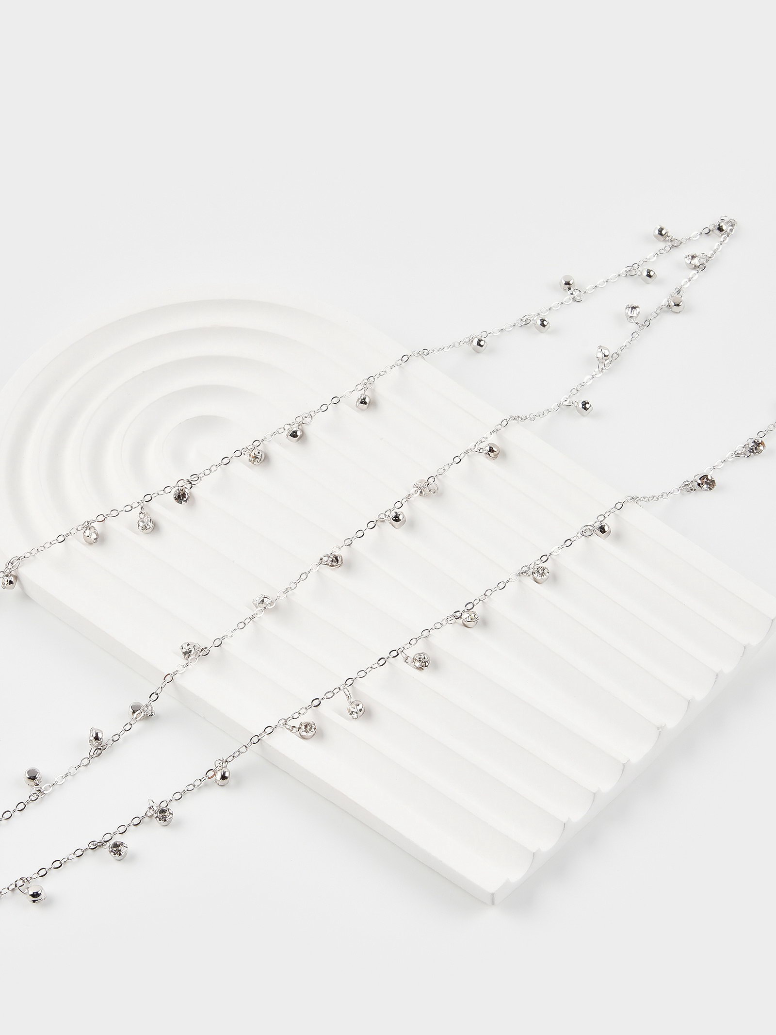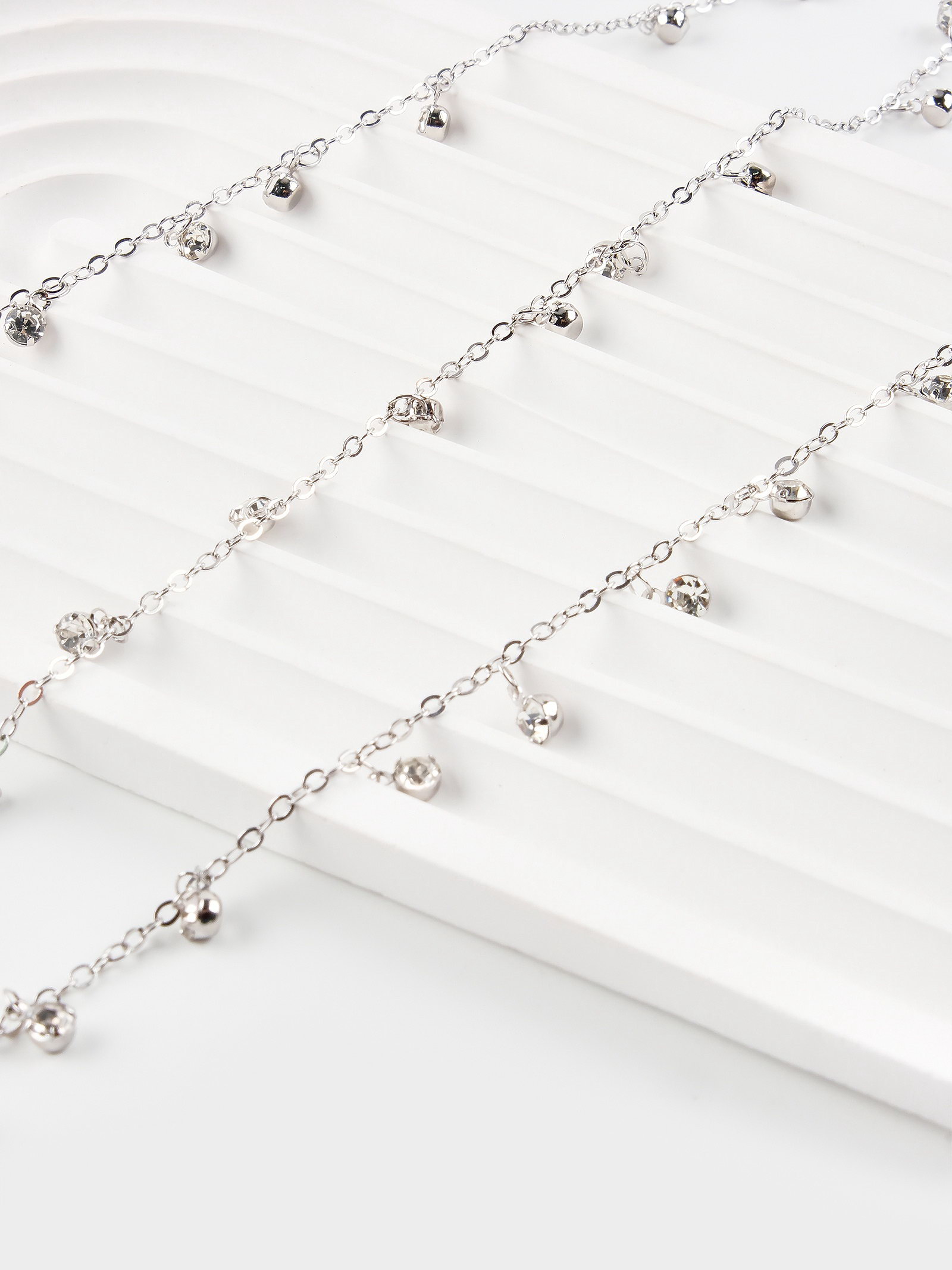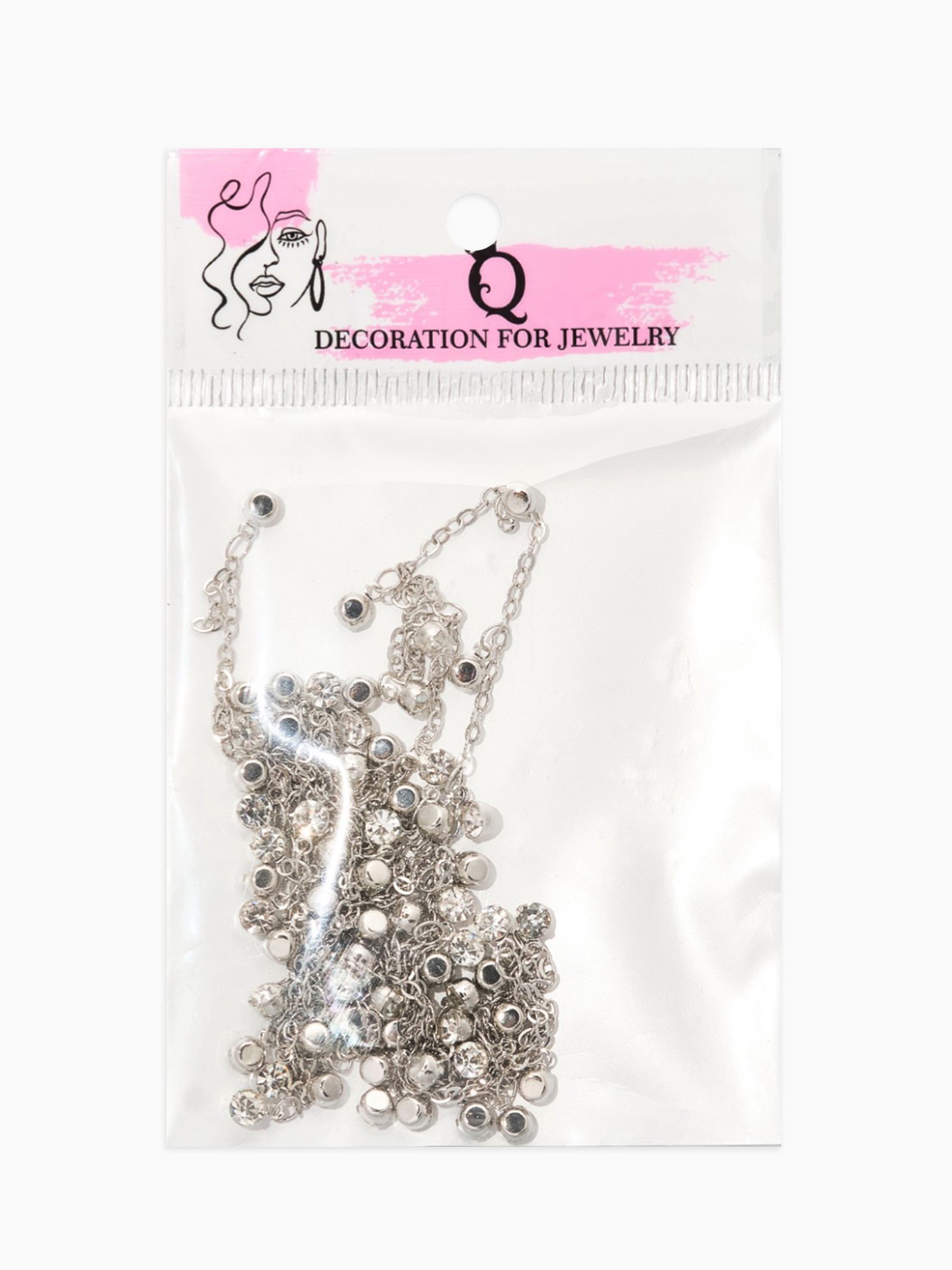 Цепочка со стразами, 4 мм, L=100 см, мелкое плетение 2x1.8 мм, цвет серебро, 0.2x100x0.4 см., QF, Китай