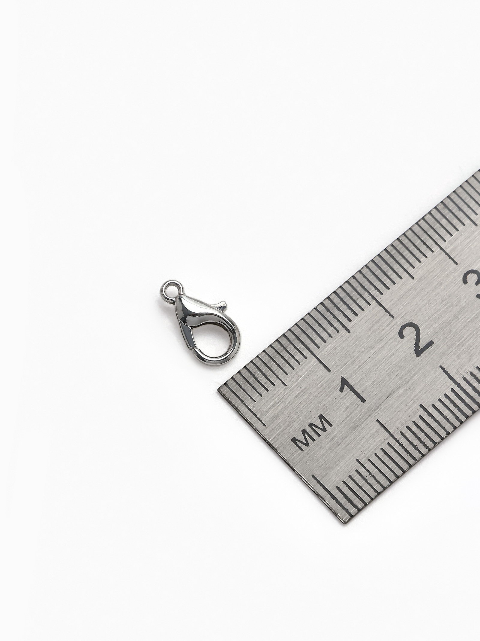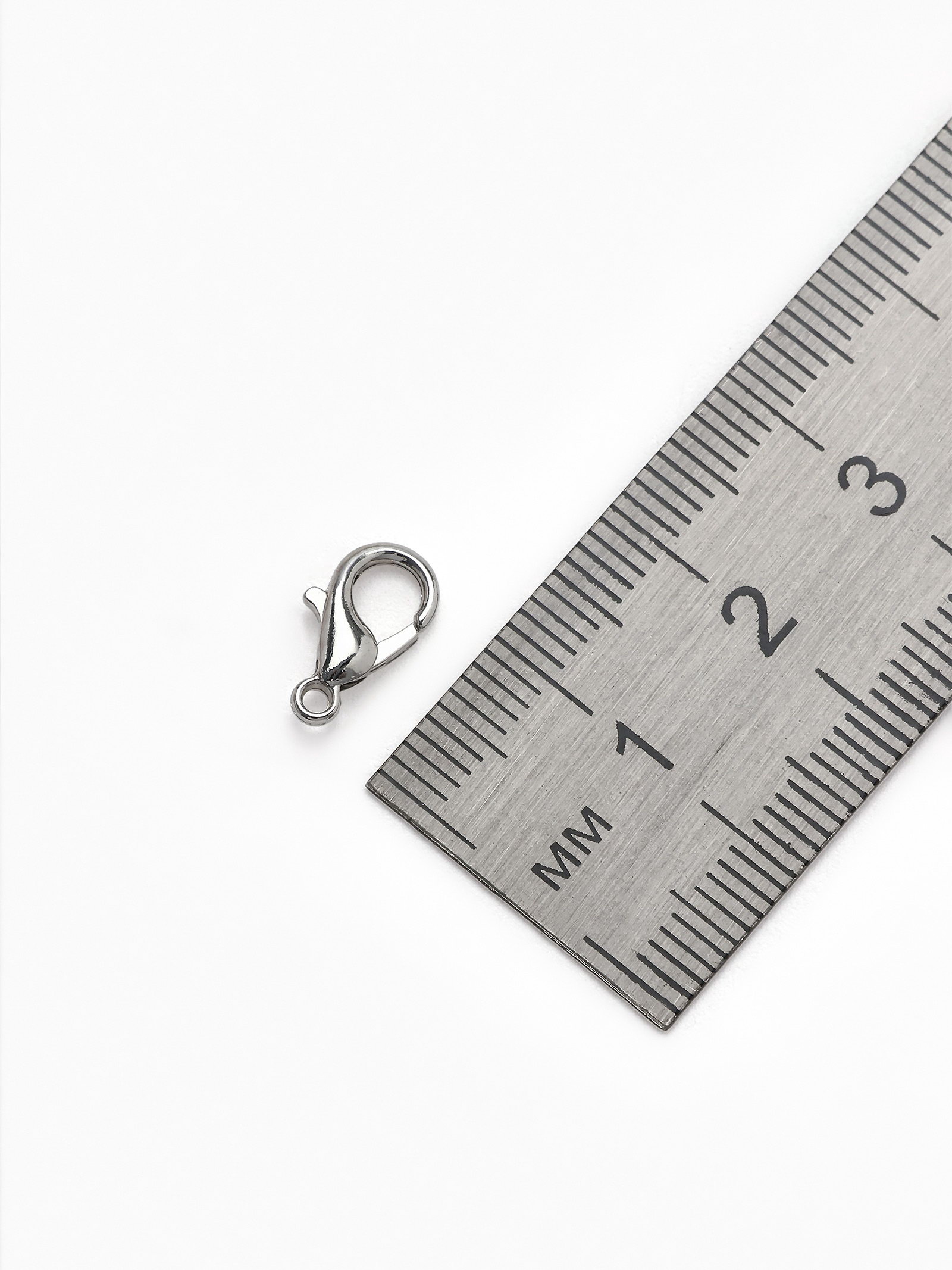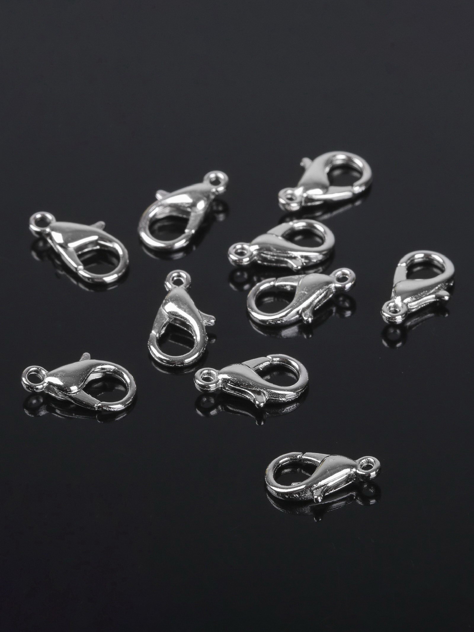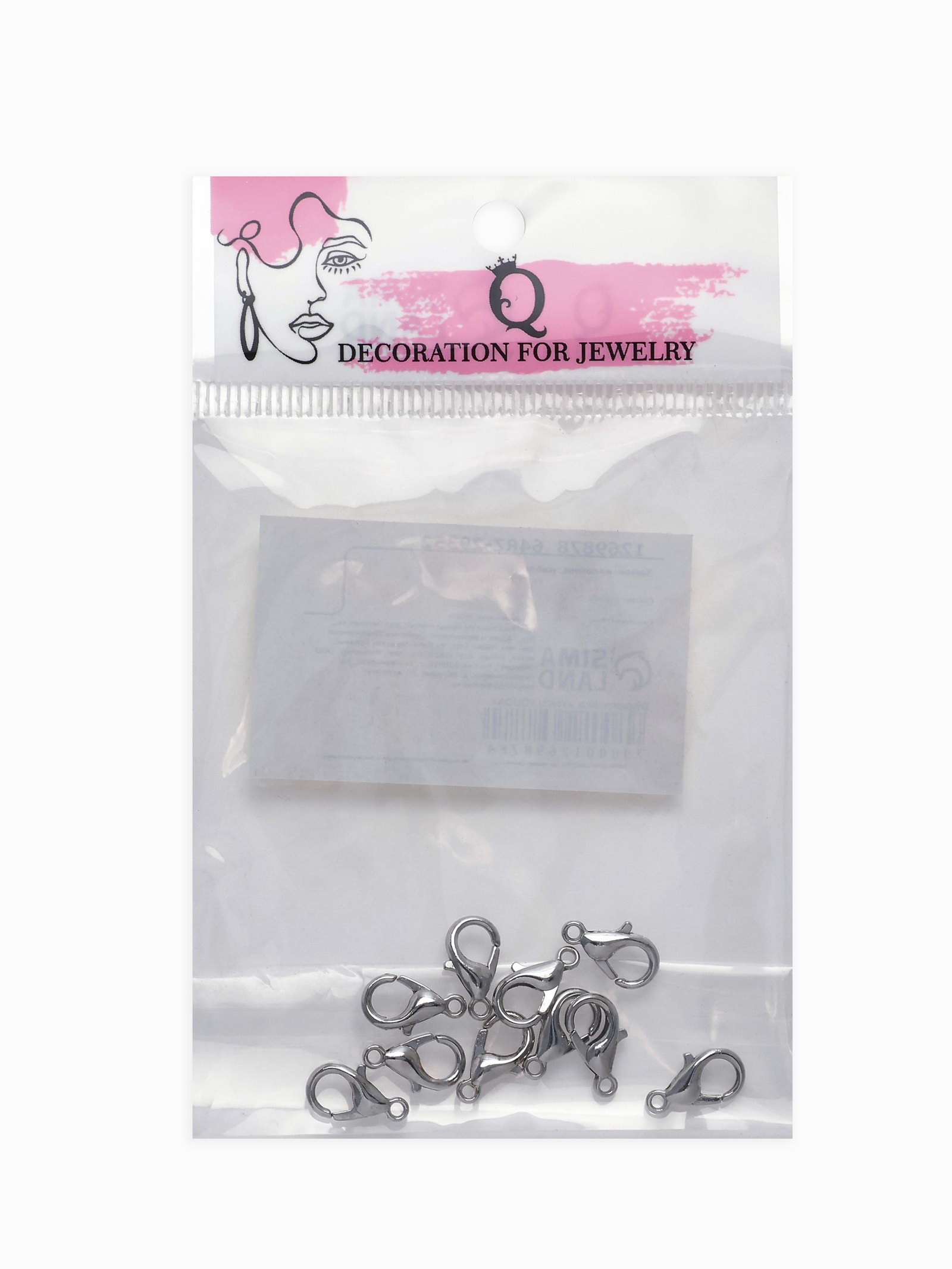 Замок карабин, 10 шт. 12x7 мм, цвет серебро, 0.7x1.2x0.2 см., QF, Китай