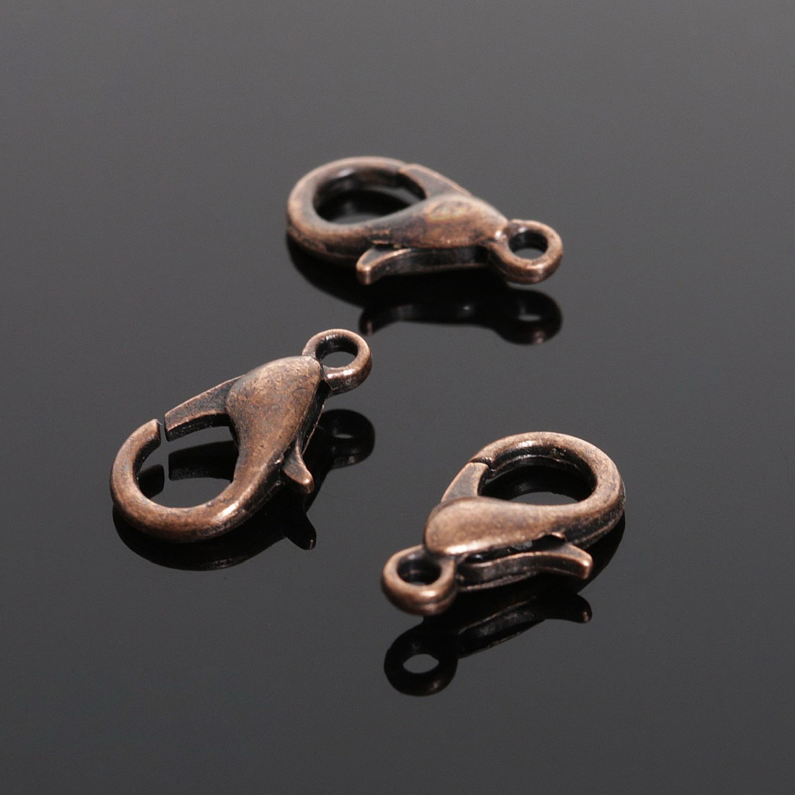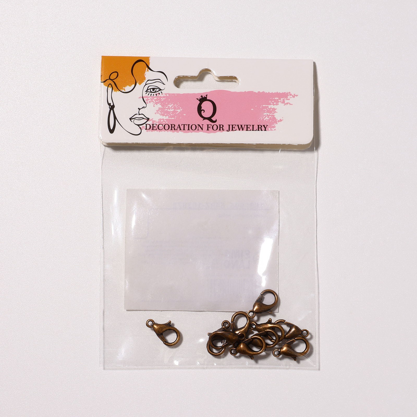 Замок карабин СМ-536, 10 шт. 12x7 мм, цвет чернёной медный, 0.7x1.2x0.1 см., QF, Китай