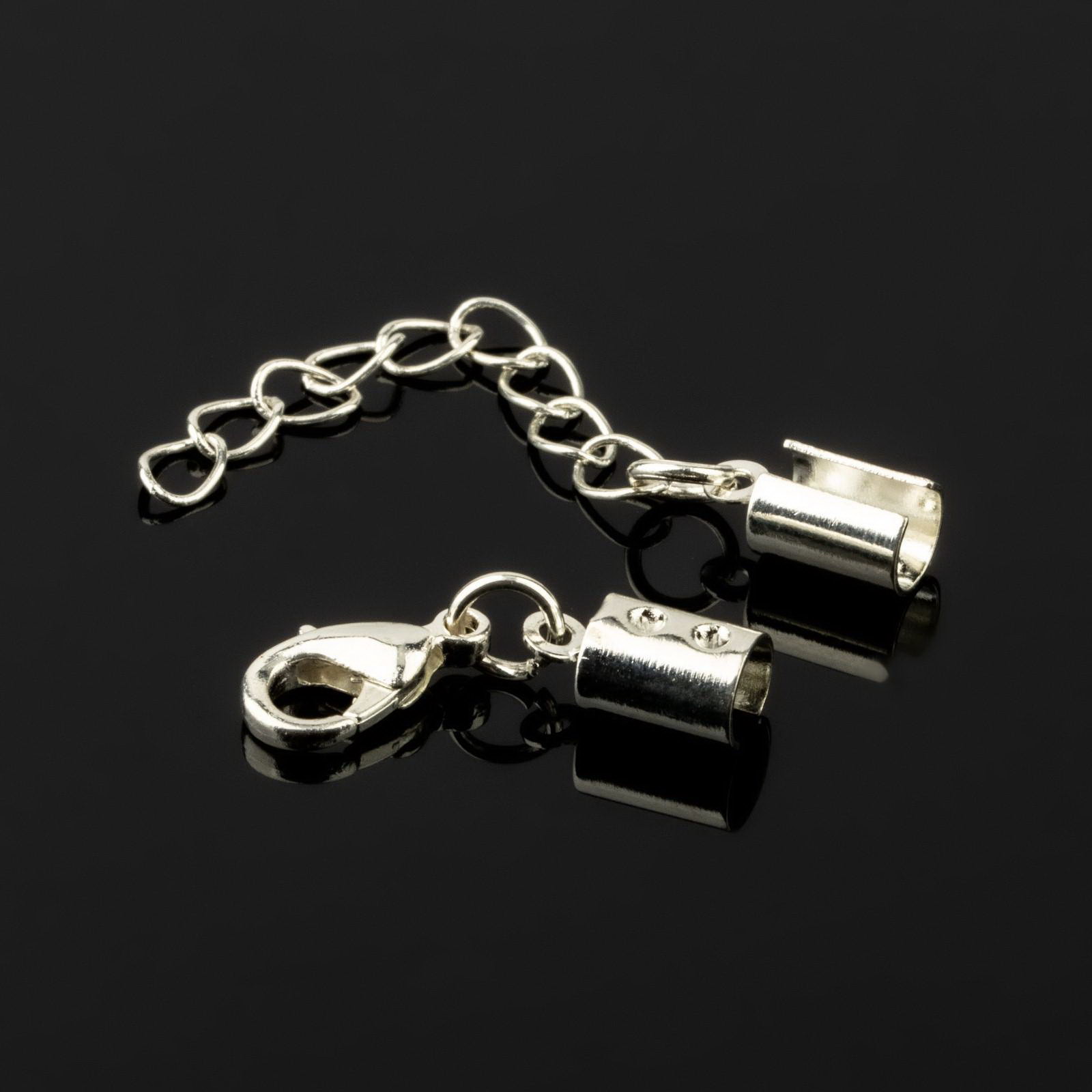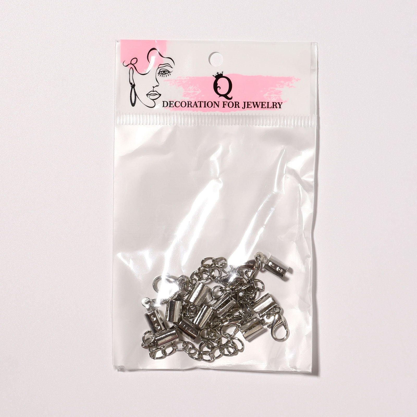 Замок карабин 5 шт. 12x7 мм, с удлинителем и обжимными круглыми концевиками 10x5 мм, 1.2x5x0.7 см., QF, Китай