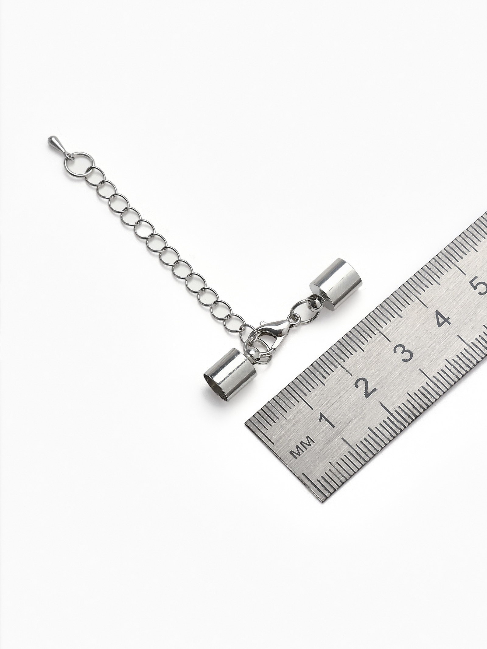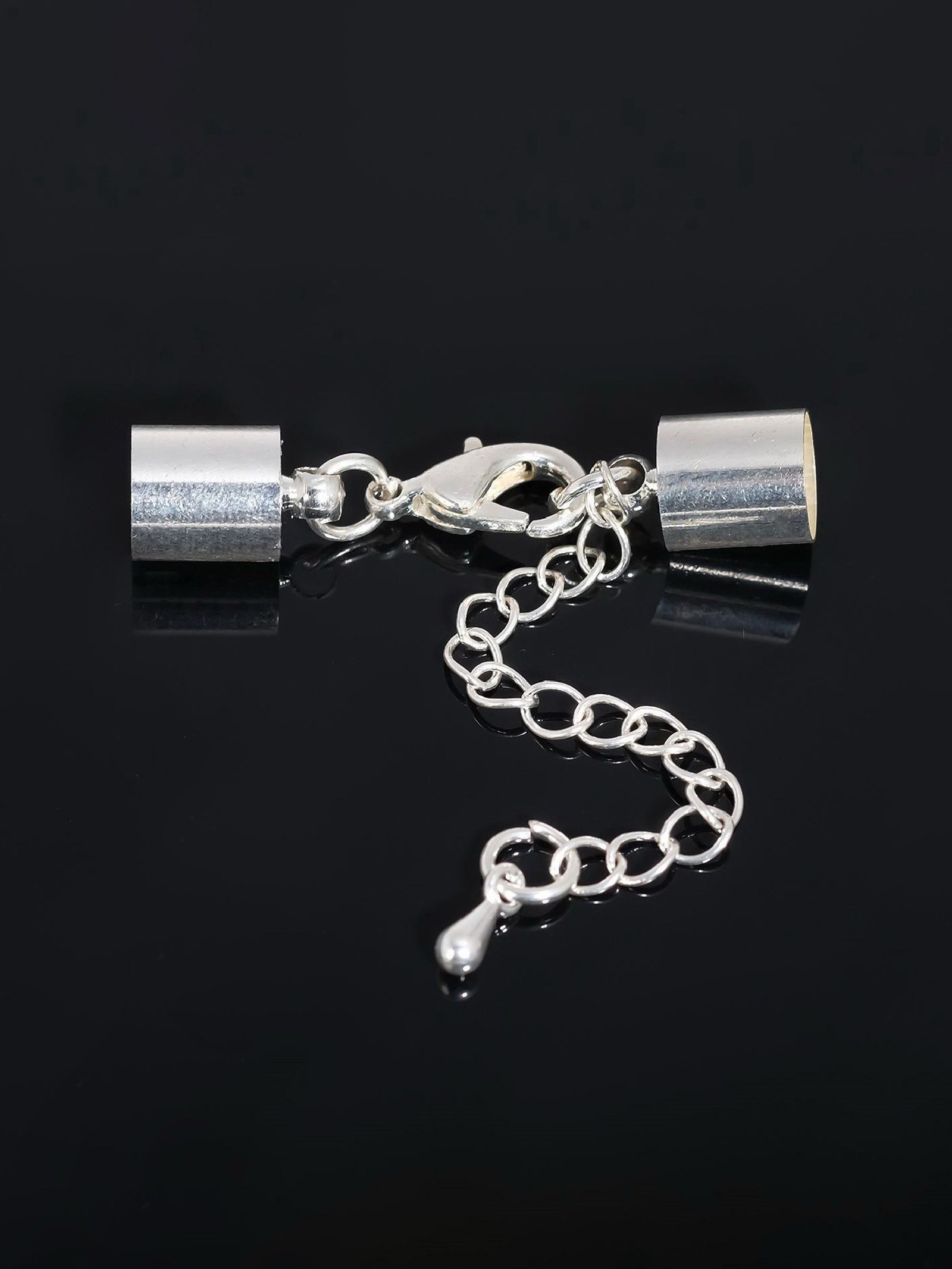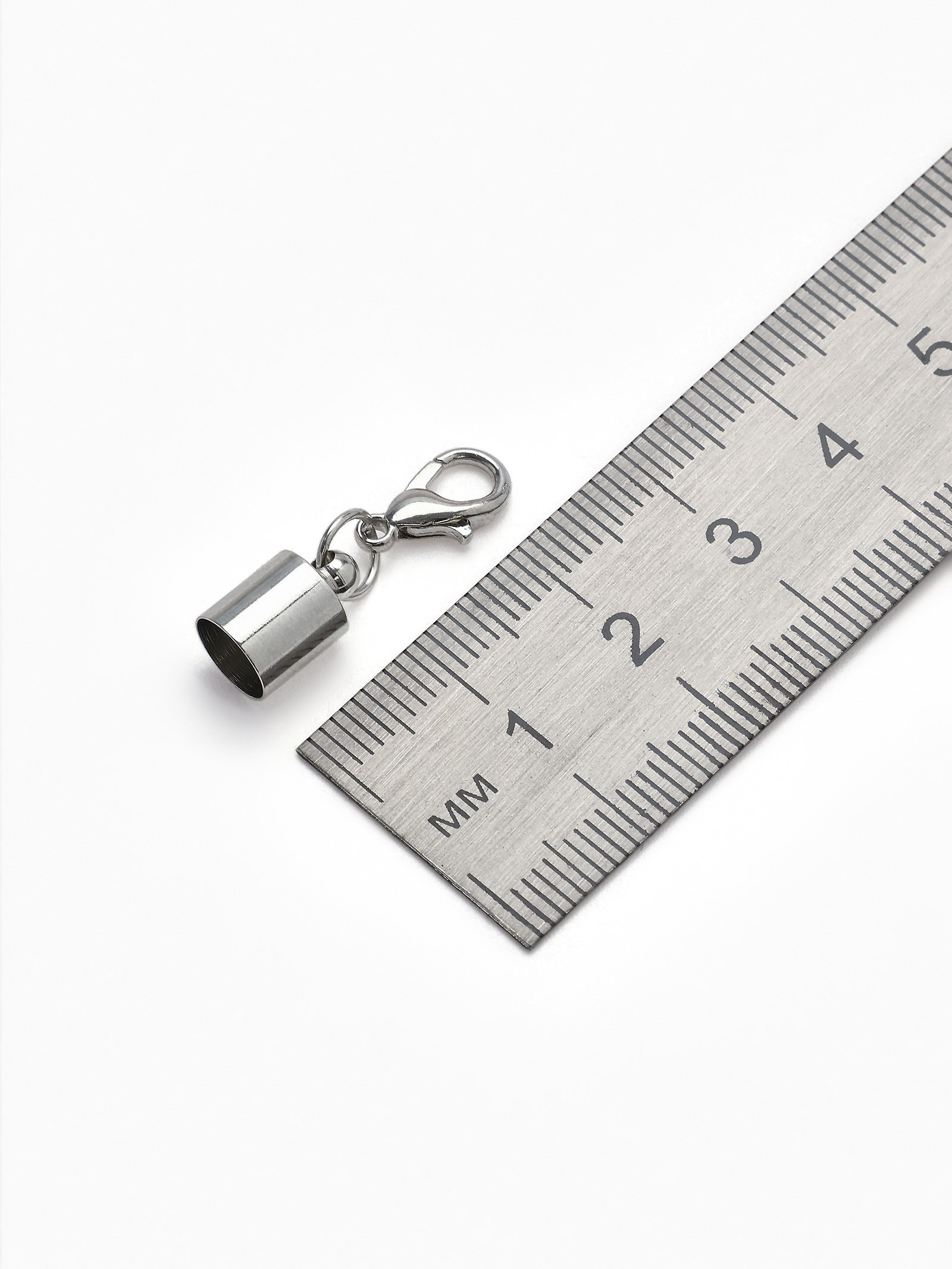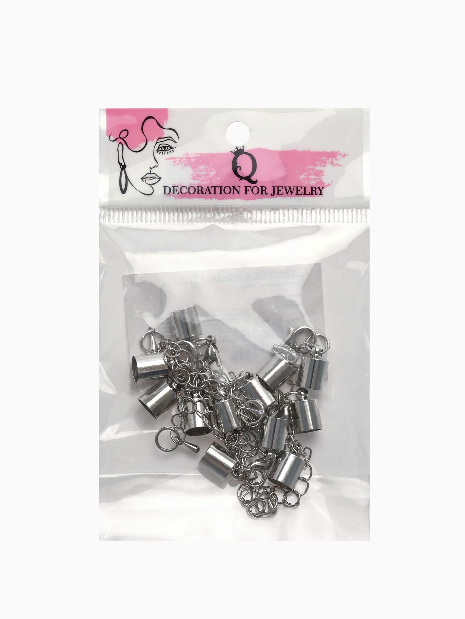 Замок карабин 5 шт. 12x7 мм, с удлинителем и обжимными круглыми концевиками 11x7 мм, внутренний 6.5 мм, цвет серебро, 2.5x0.7x0.7 см., QF, Китай