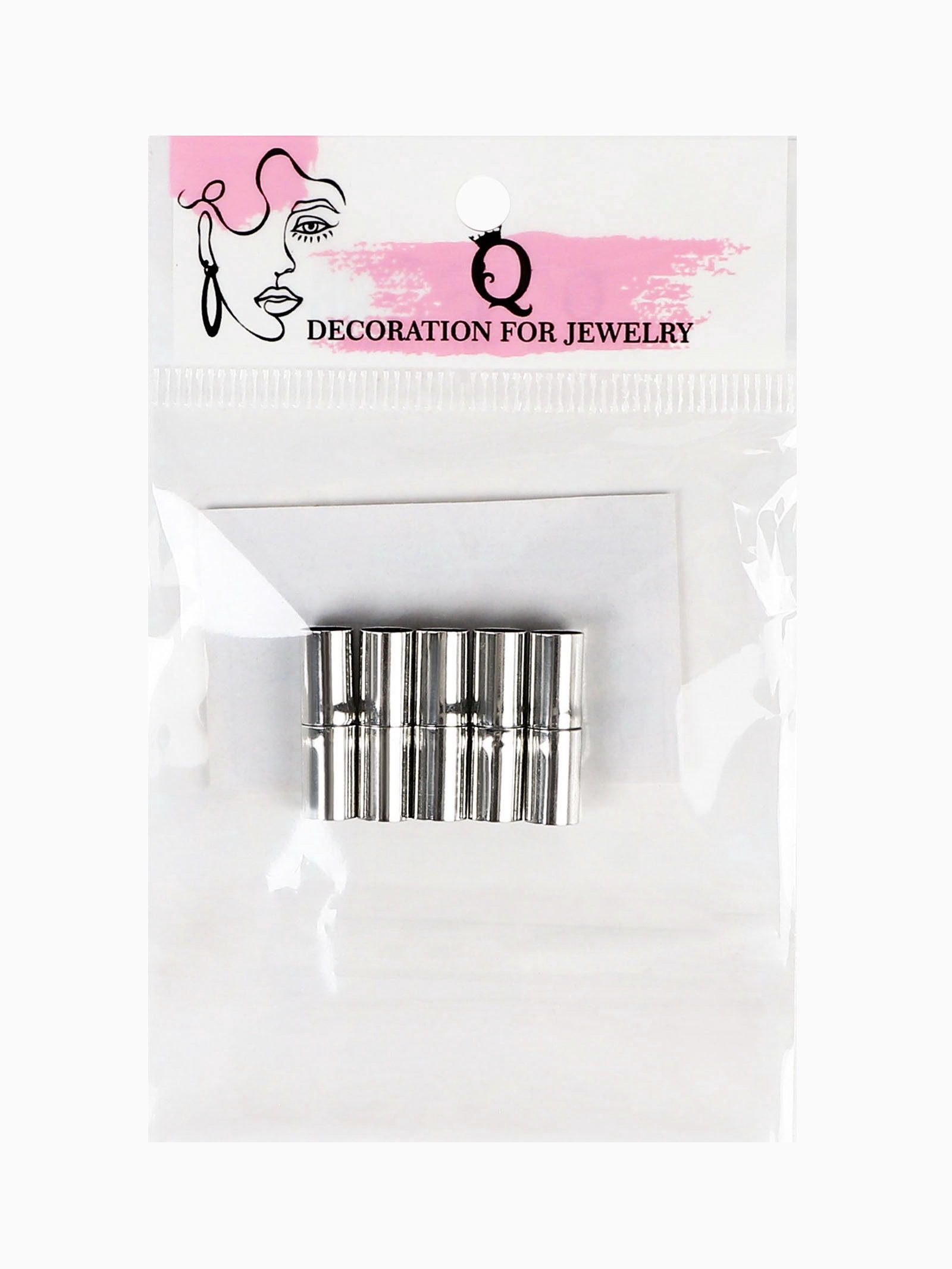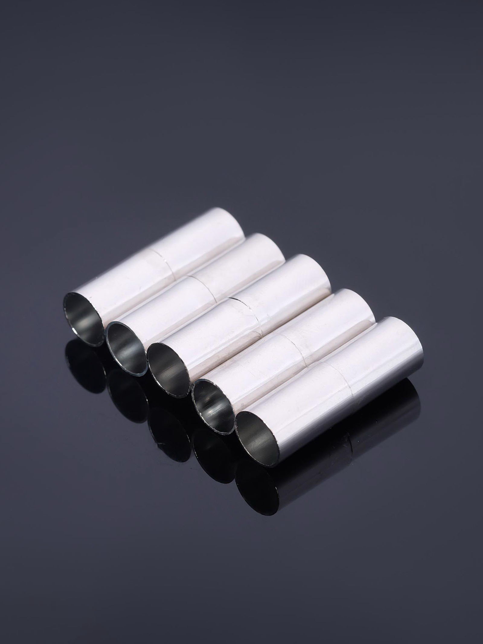 Замок-концевик магнитный, 5 шт. L=20 мм, внутренний d=6 мм, цвет серебро, 0.6x2x0.6 см., QF, Китай