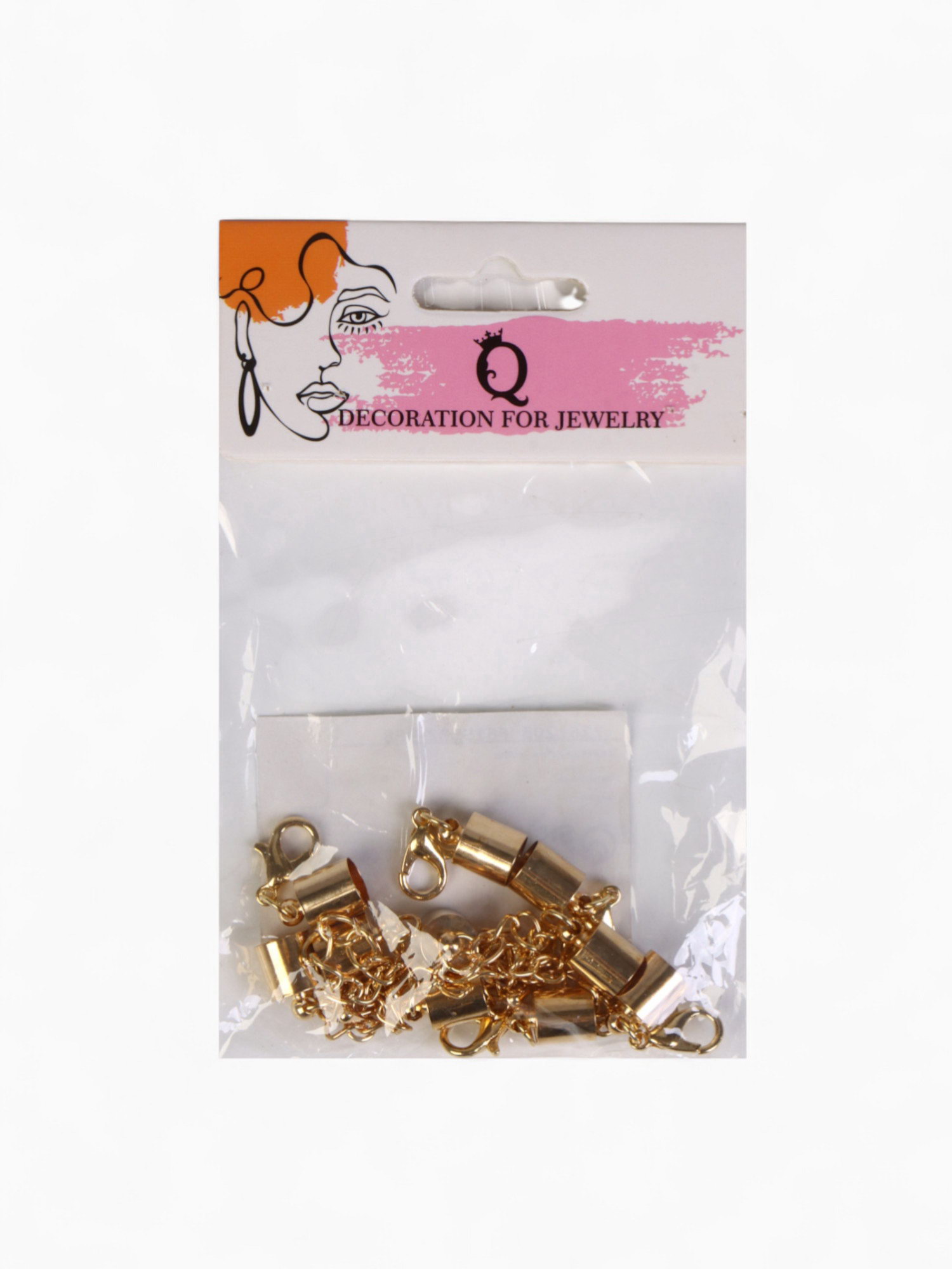 Замок карабин 5 шт. 12x7 мм, с удлинителем и обжимными круглыми концевиками 11x7 мм, внутренний 6.5 мм, 2.5x7x0.7 см., QF, Китай
