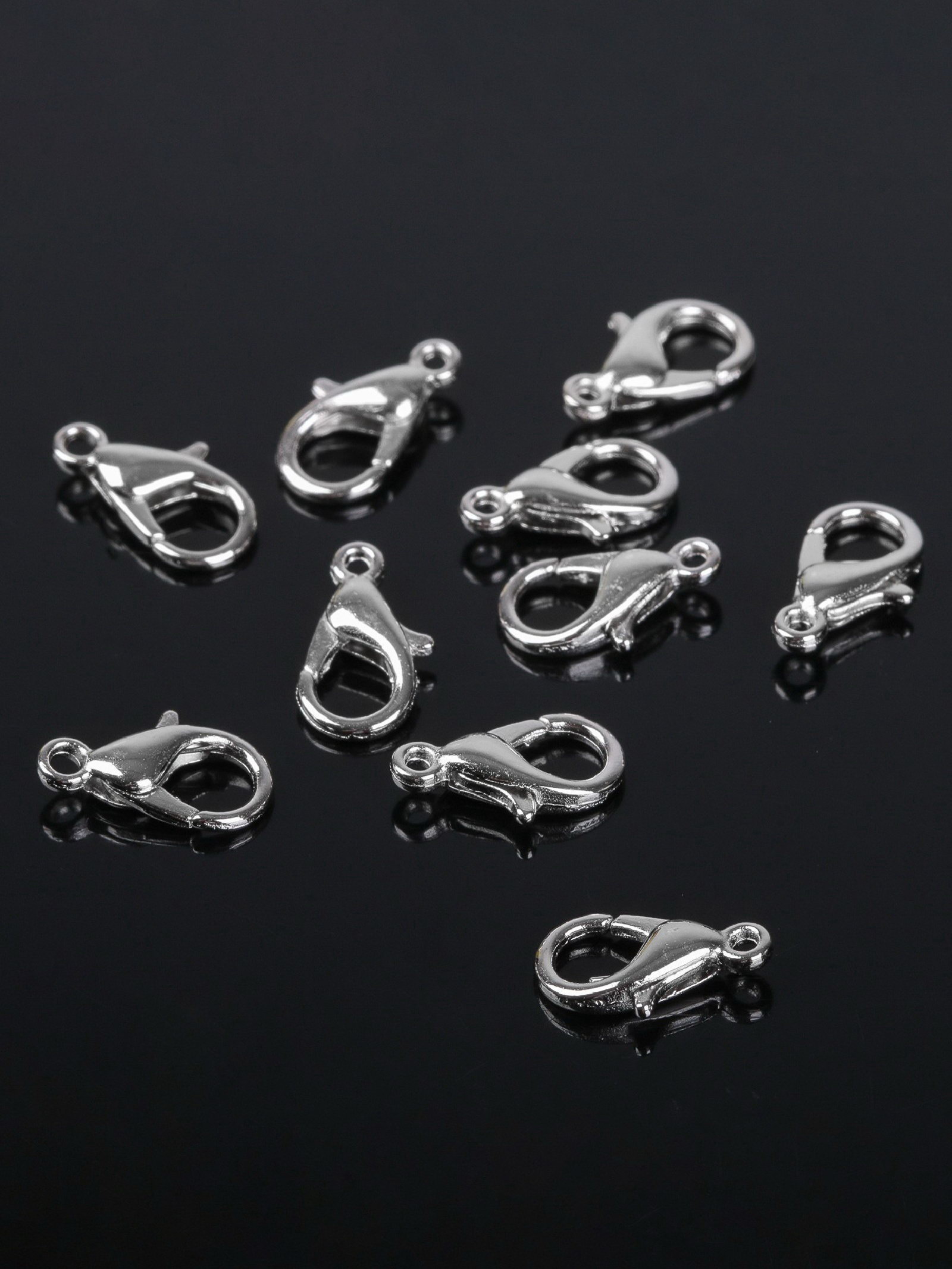 Замок карабин, 200 шт. 12 мм, цвет серебро, 1x1.2x0.2 см., QF, Китай