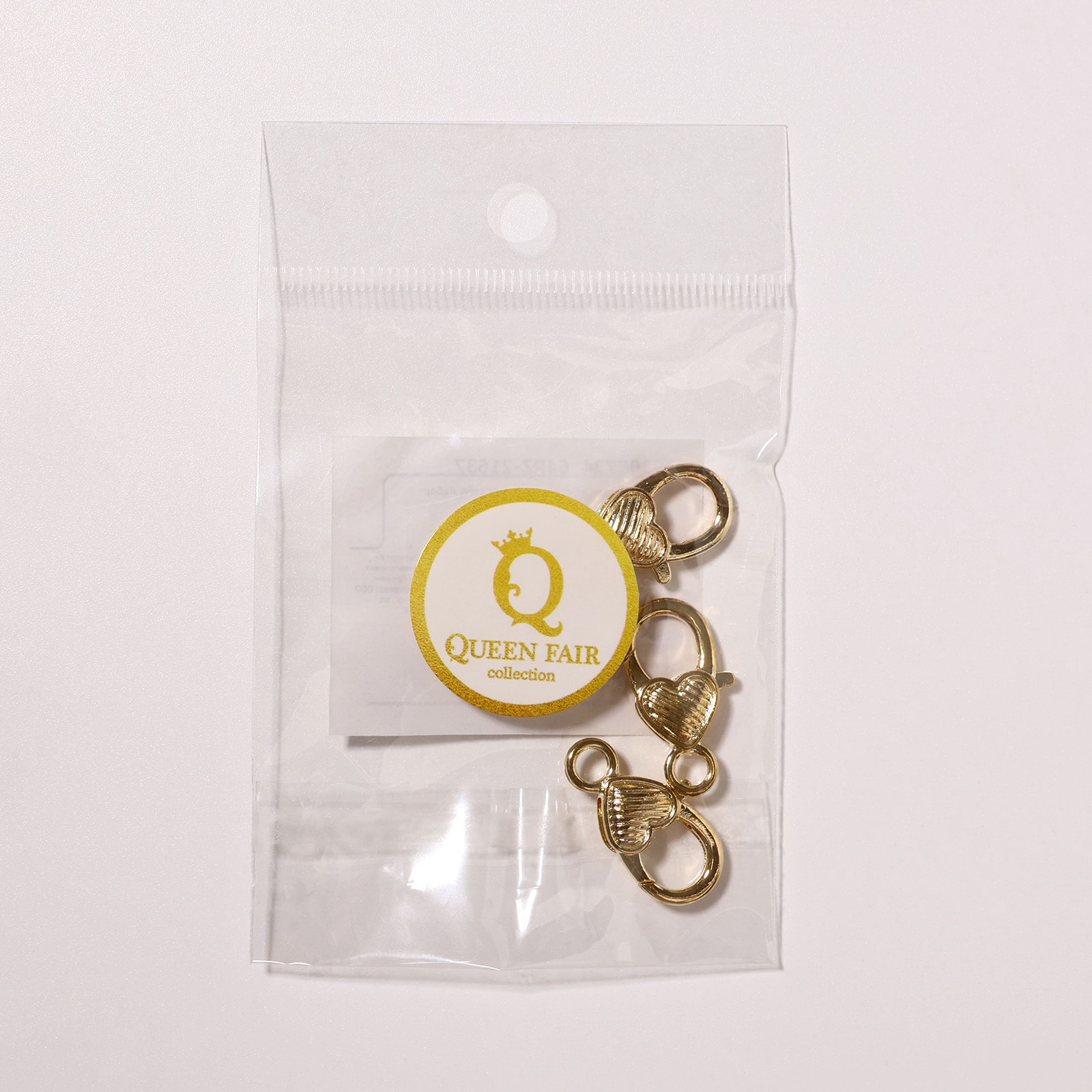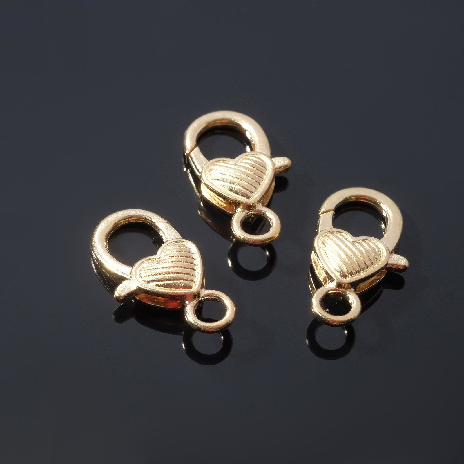 Замок карабин "Сердечко", полосатое, 3 шт. 14x26 мм, цвет золото, 2.6x1.4x0.3 см., QF, Китай