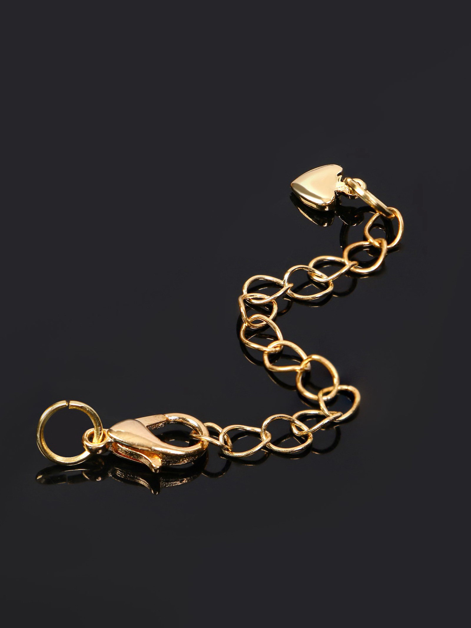 Замок карабин родированный 1.2x0.5 см "Сердечко", с удлинителем 5.5 см, цвет золото, 1.2x5.5x0.5 см., QF, Китай