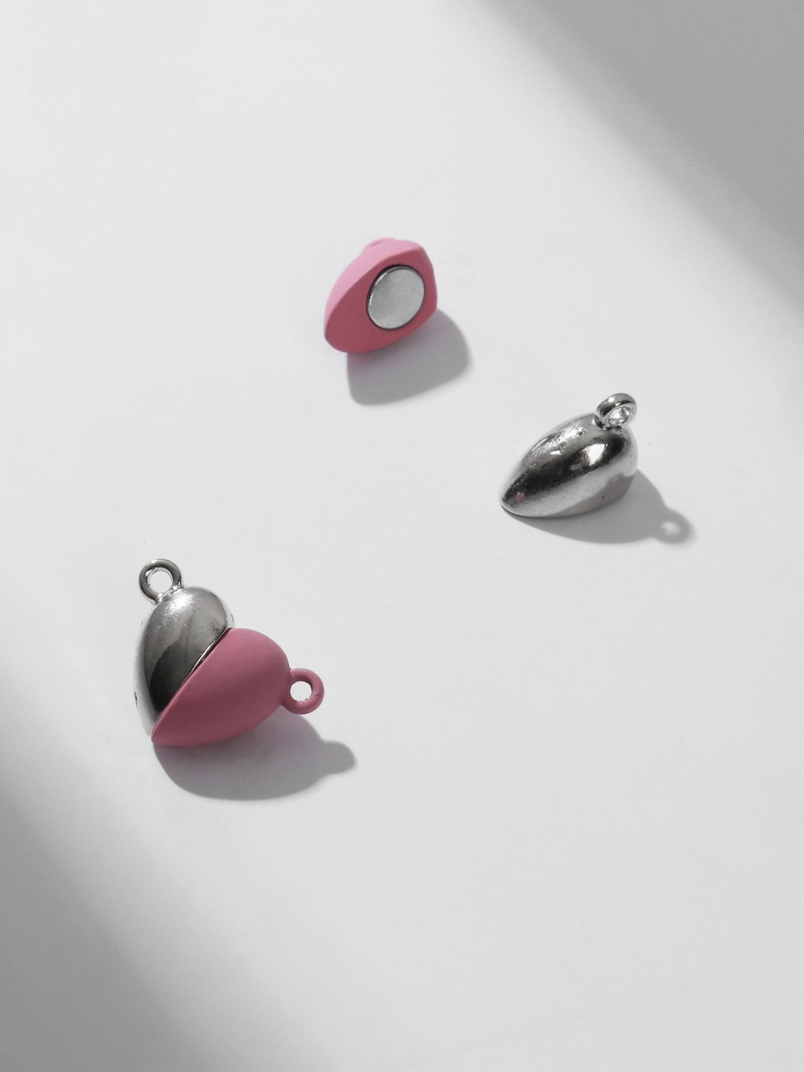 Замок магнитный "Сердечко", 2 шт. серебристо-розовый, 1.4x1.6x0.6 см., QF, Китай