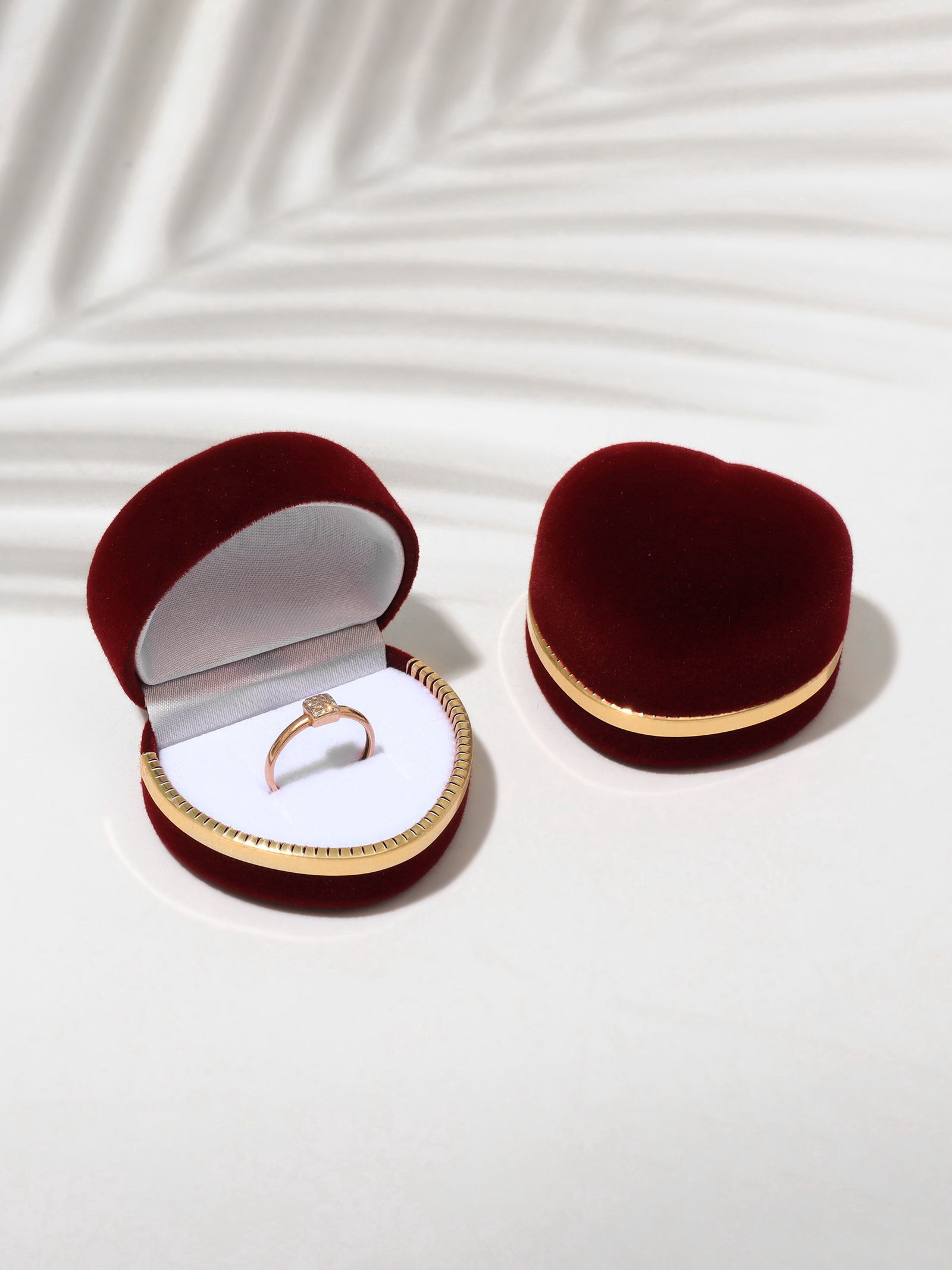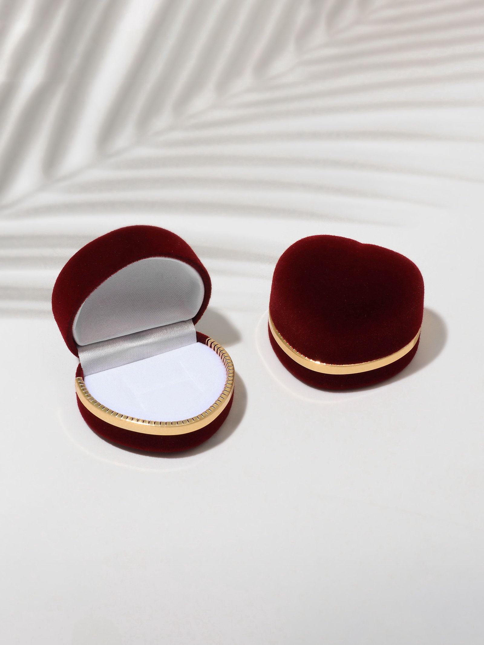 Футляр под кольцо, серьги "Сердце", бархатный, 4x5 см, бордовый с золотом, 5x4x3 см., Китай