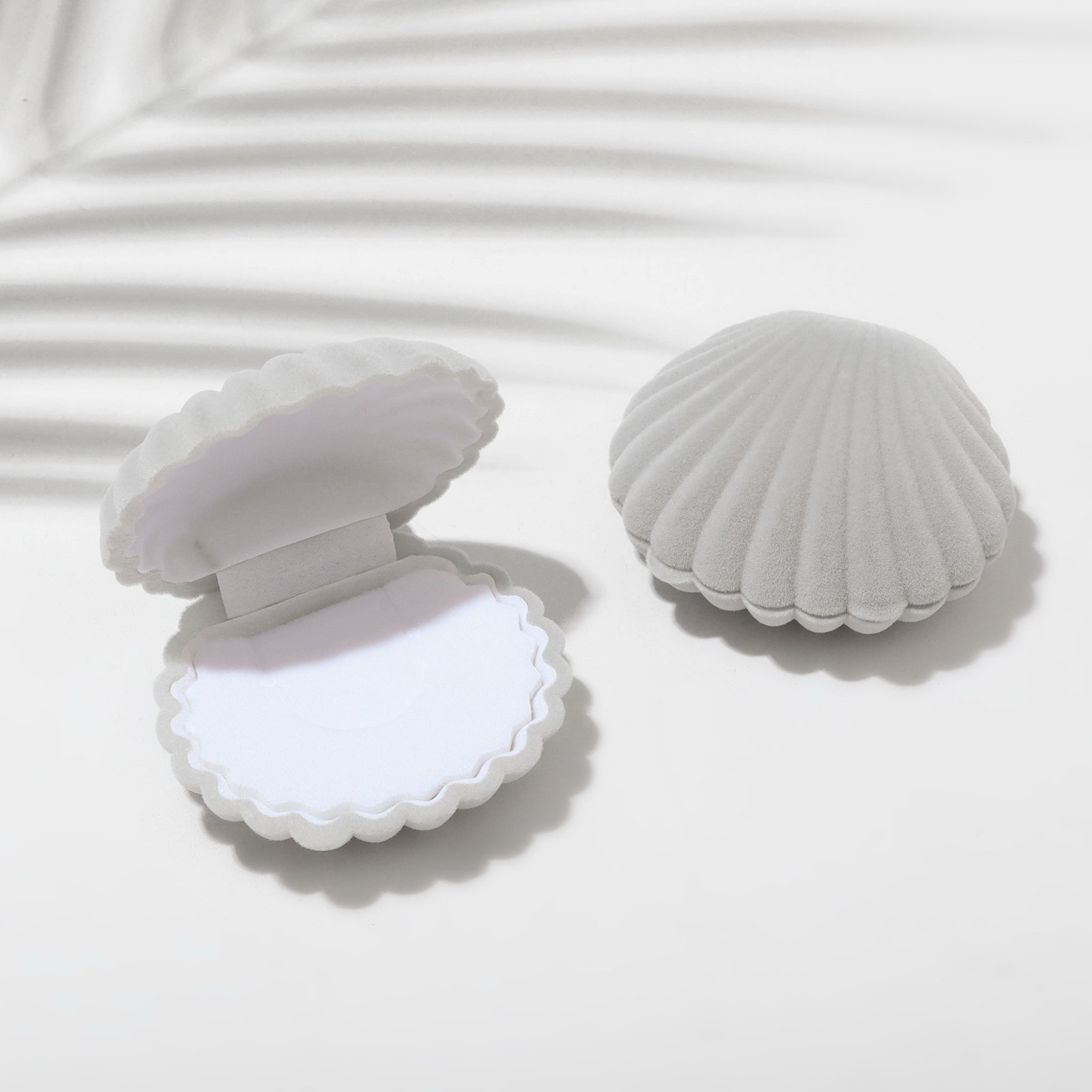 Футляр под кольцо, серьги "Ракушка", бархатный, 6x5.5 см, серый, 5.5x6x3 см., Китай