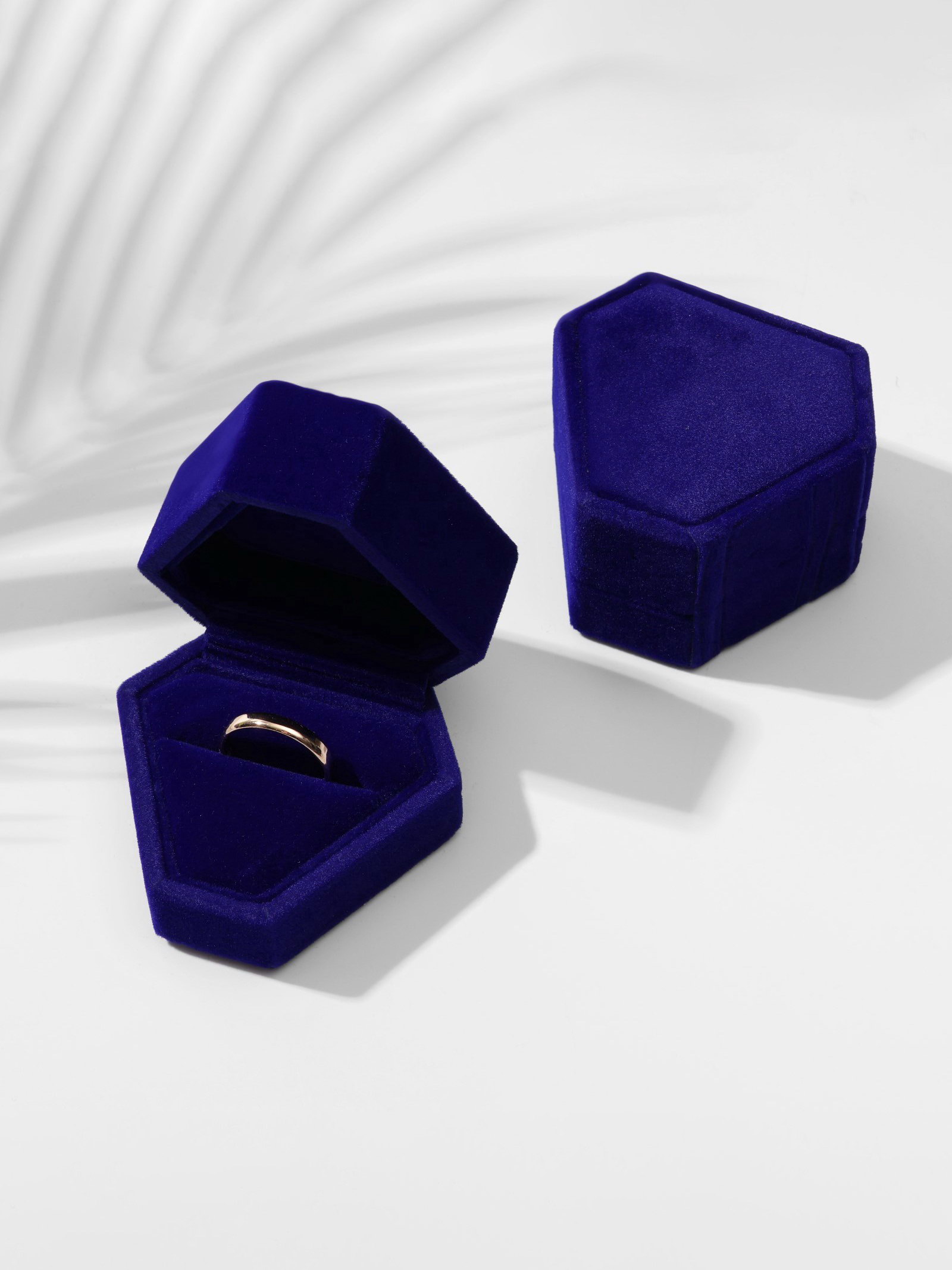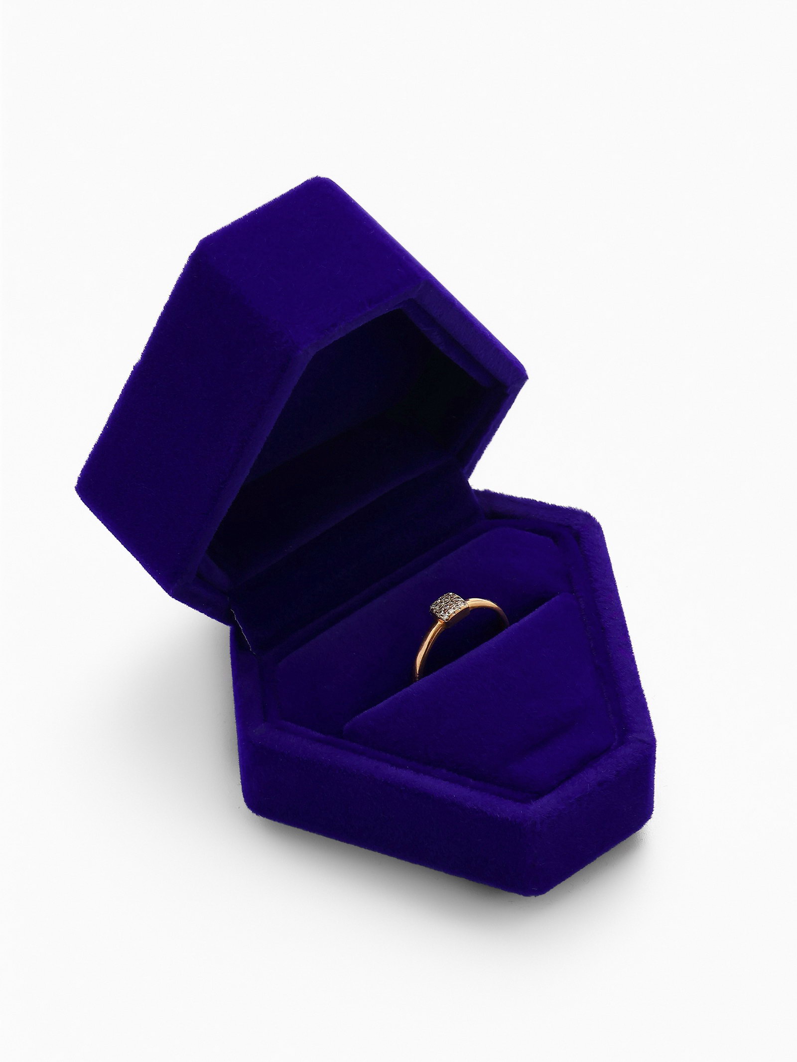 Футляр под кольца "Кристалл", для серёг, бархатная, 6.5x6 см, синяя, 6x6.5x4 см., Китай