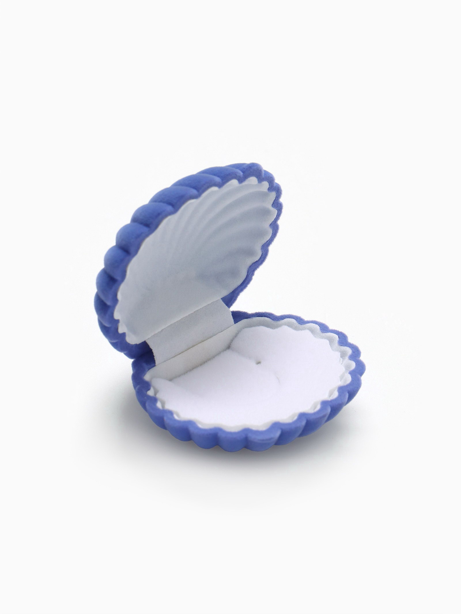 Футляр под серьги, кулон "Ракушка", 6x5.5 см, бархатный, небесный, 5.5x6x3 см., Queen fair, Китай