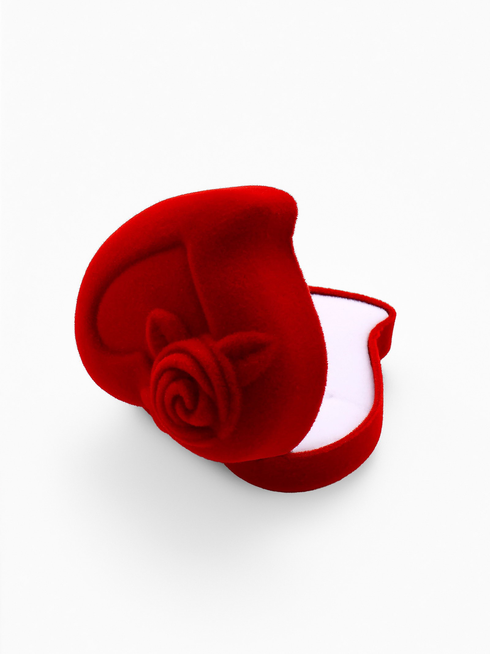 Футляр под кольцо, серьги "Сердце, роза", бархатный, 6x6 см, красный, 6x6x3 см., Китай