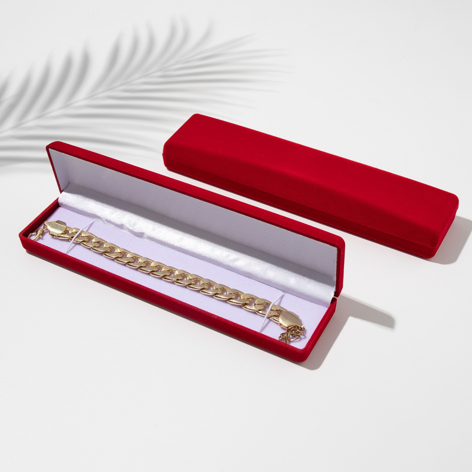 Футляр бархатный под браслет/цепочку/часы "Пенал", 21.5x5x2.5, красный, вставка белая, 5x21.5x2.5 см., Китай