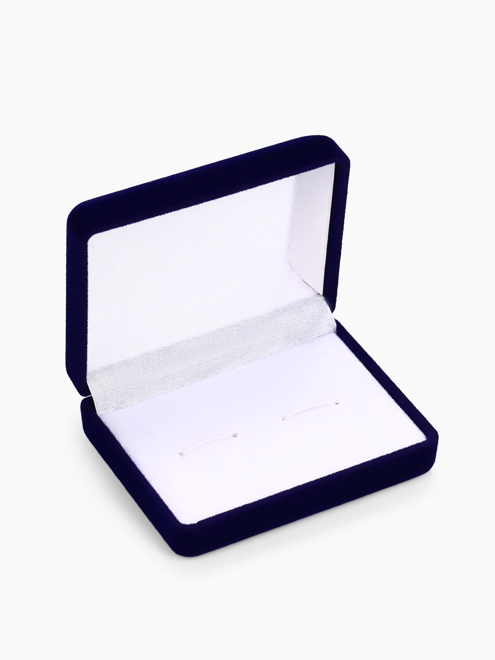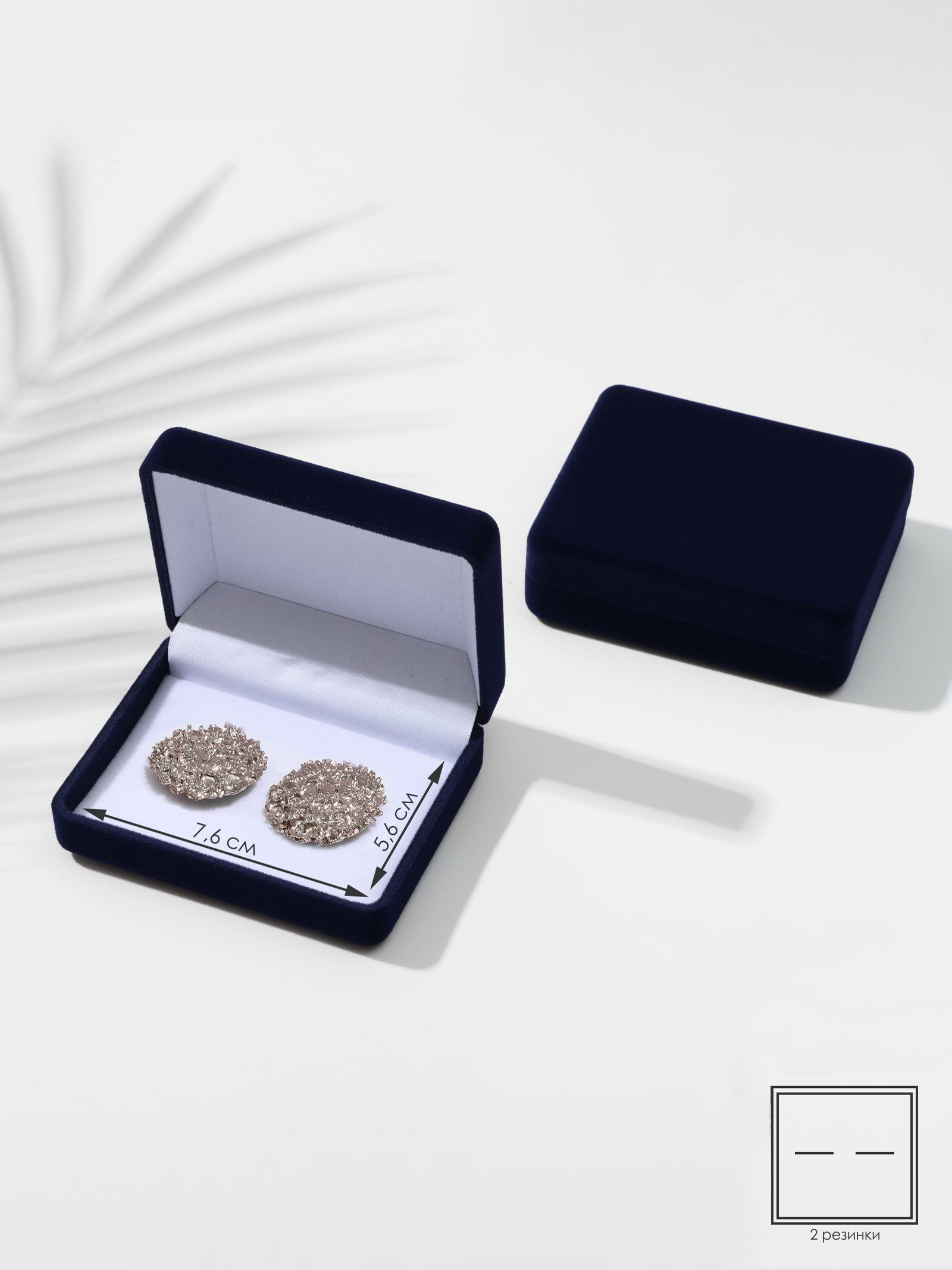 Футляр бархатный под серьги/запонки "Прямоугольник" 8x6x2.5, цвет серо-синий, вставка белая, 6x8x2.5 см., Китай
