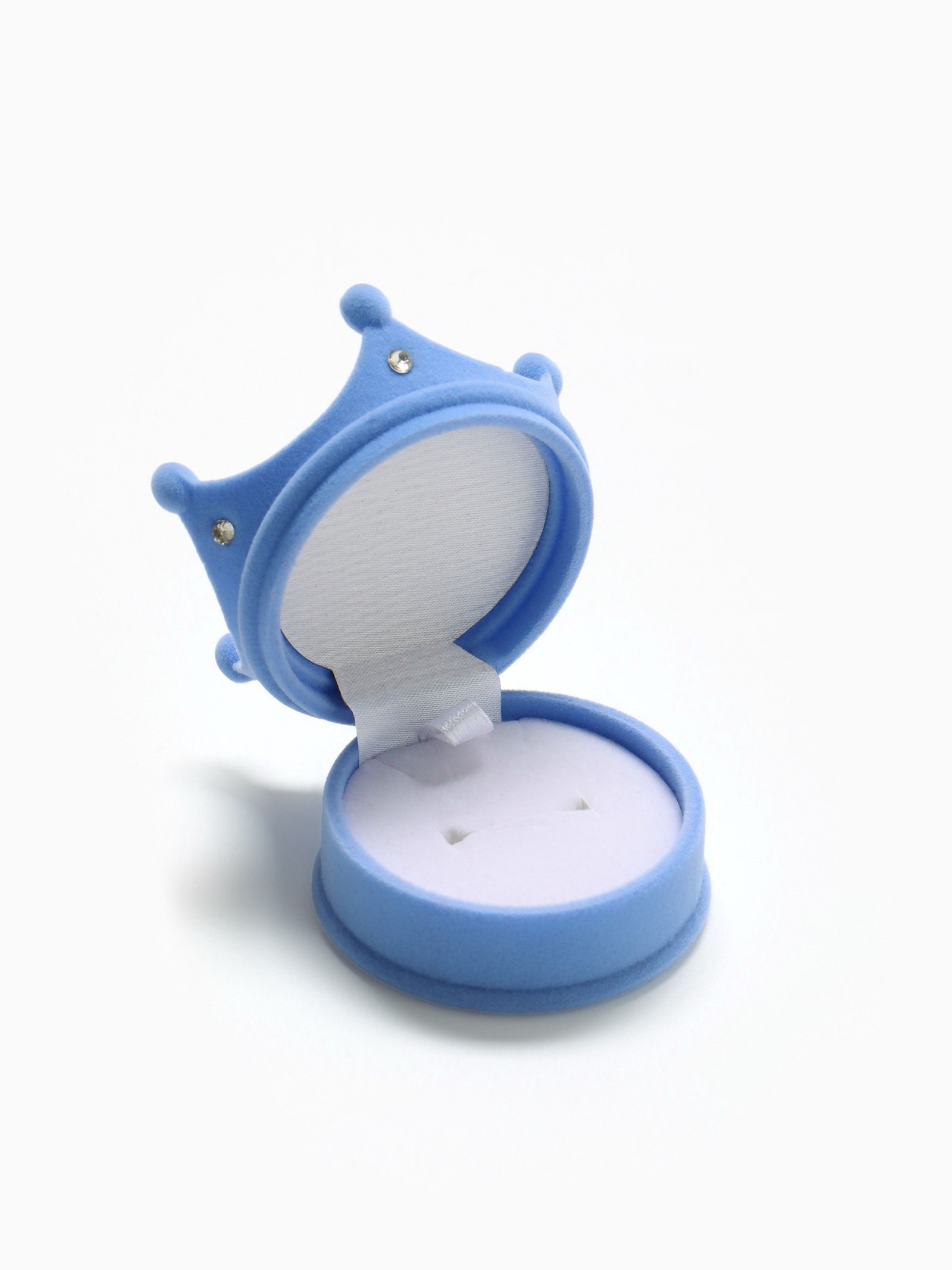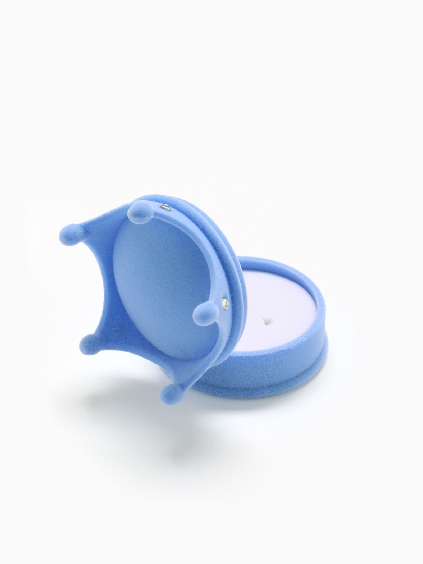 Футляр под серьги, кулон, кольцо "Корона", бархатный, 5.5x5.5x4.5 см, голубой, 5.5x5.5x4.5 см., Китай