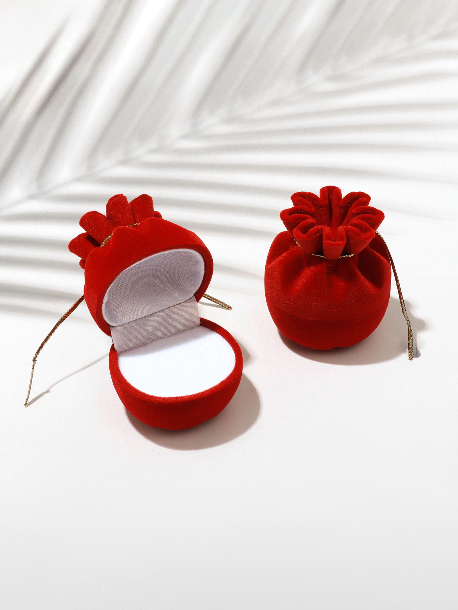 Футляр под серьги, кольцо "Мешочек подарочный", бархатный, 5.5x4.6 см, красный, 4.6x5.5x6.7 см., Китай