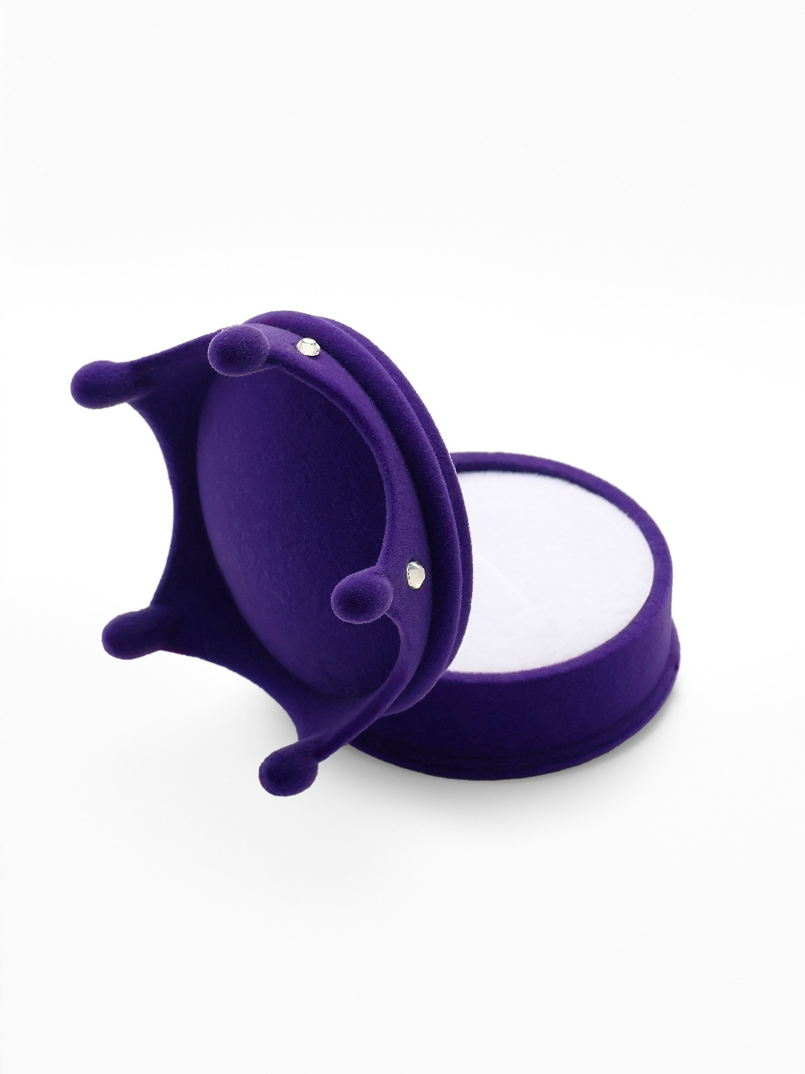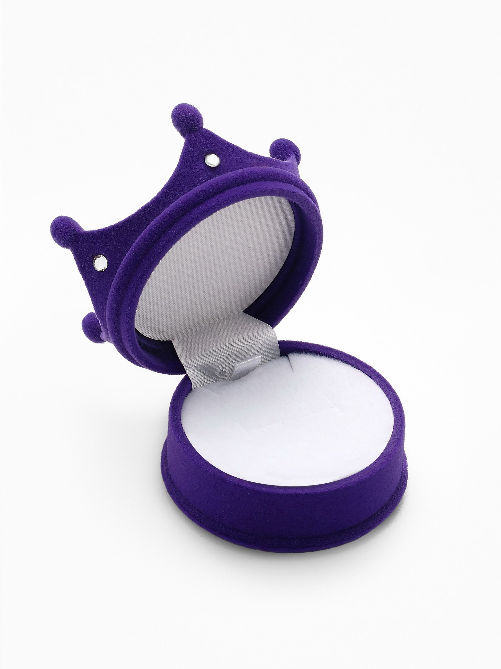 Футляр под серьги, кулон, кольцо "Корона", бархатный, 5.5x5.5x4.5 см, фиолетовый, 5.5x5.5x4.5 см., Китай