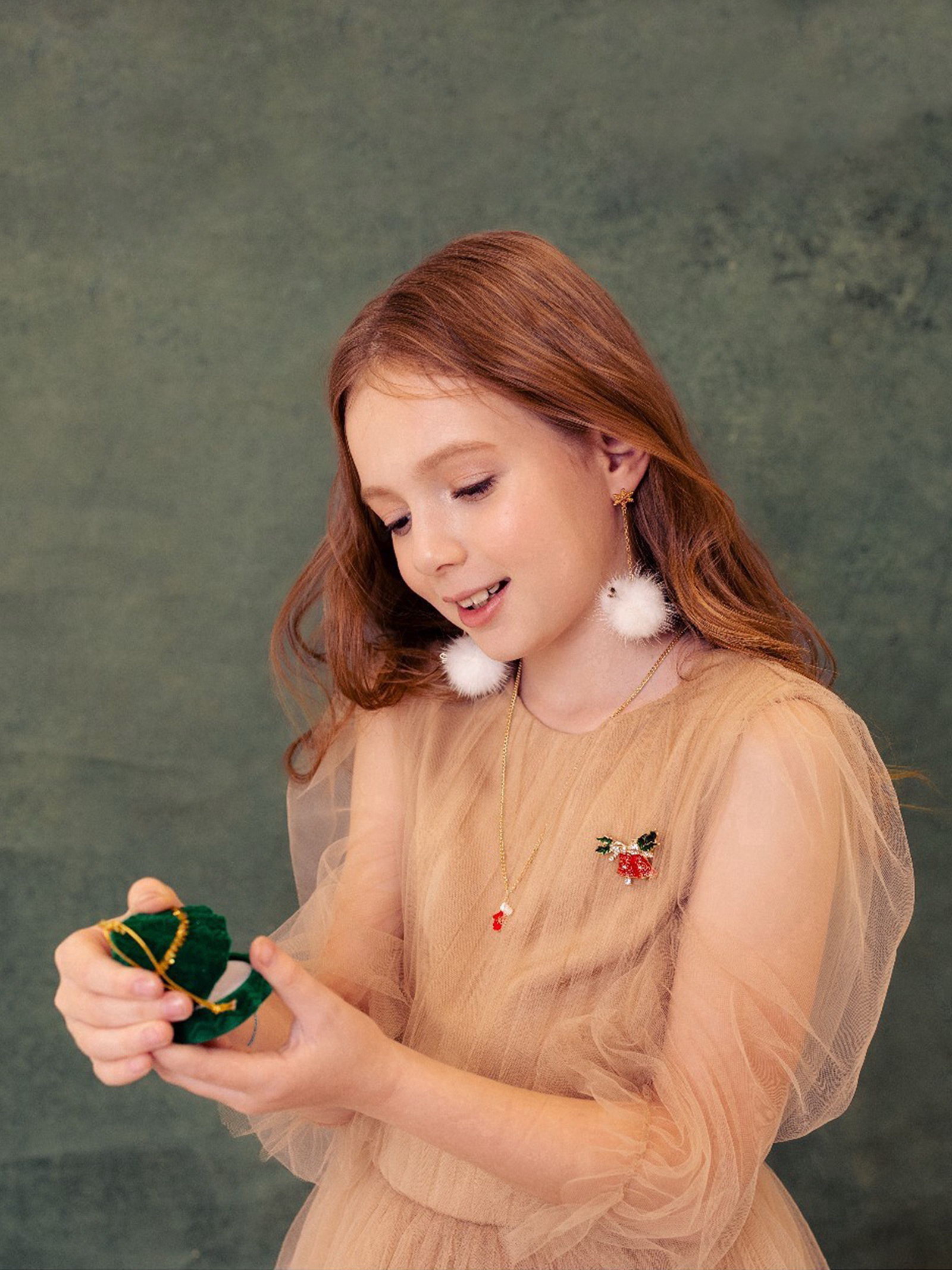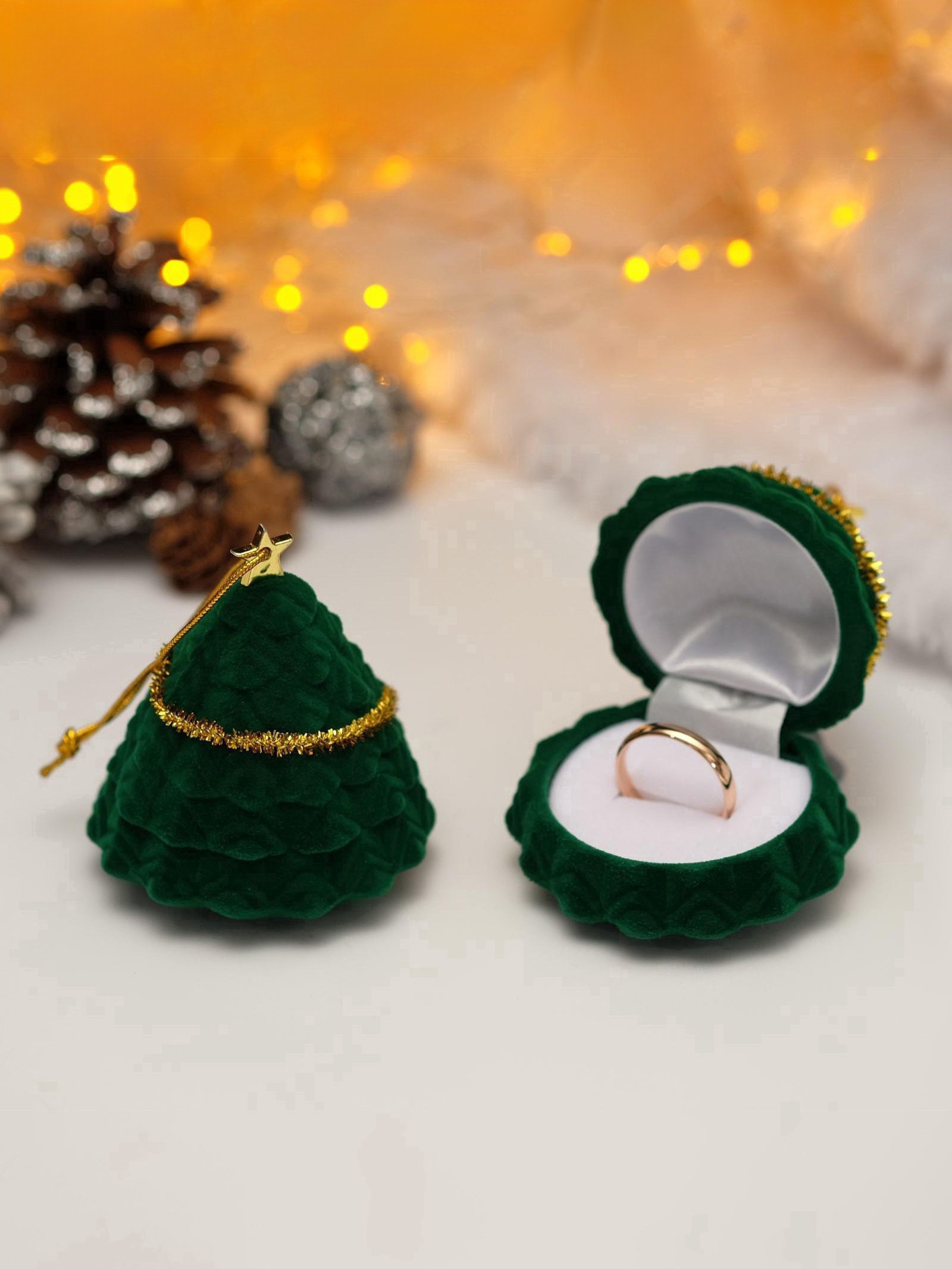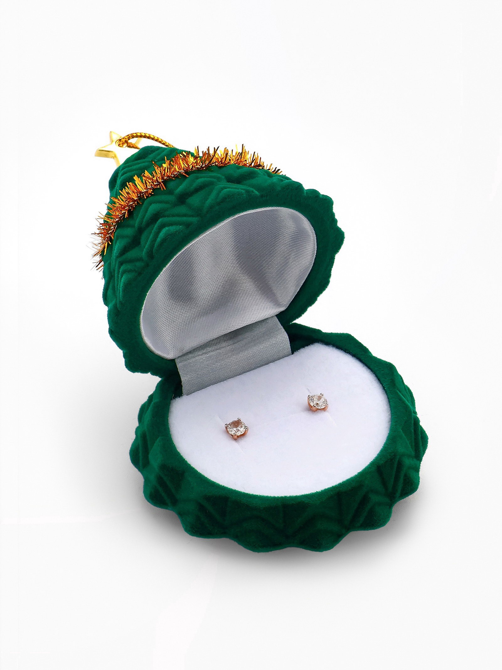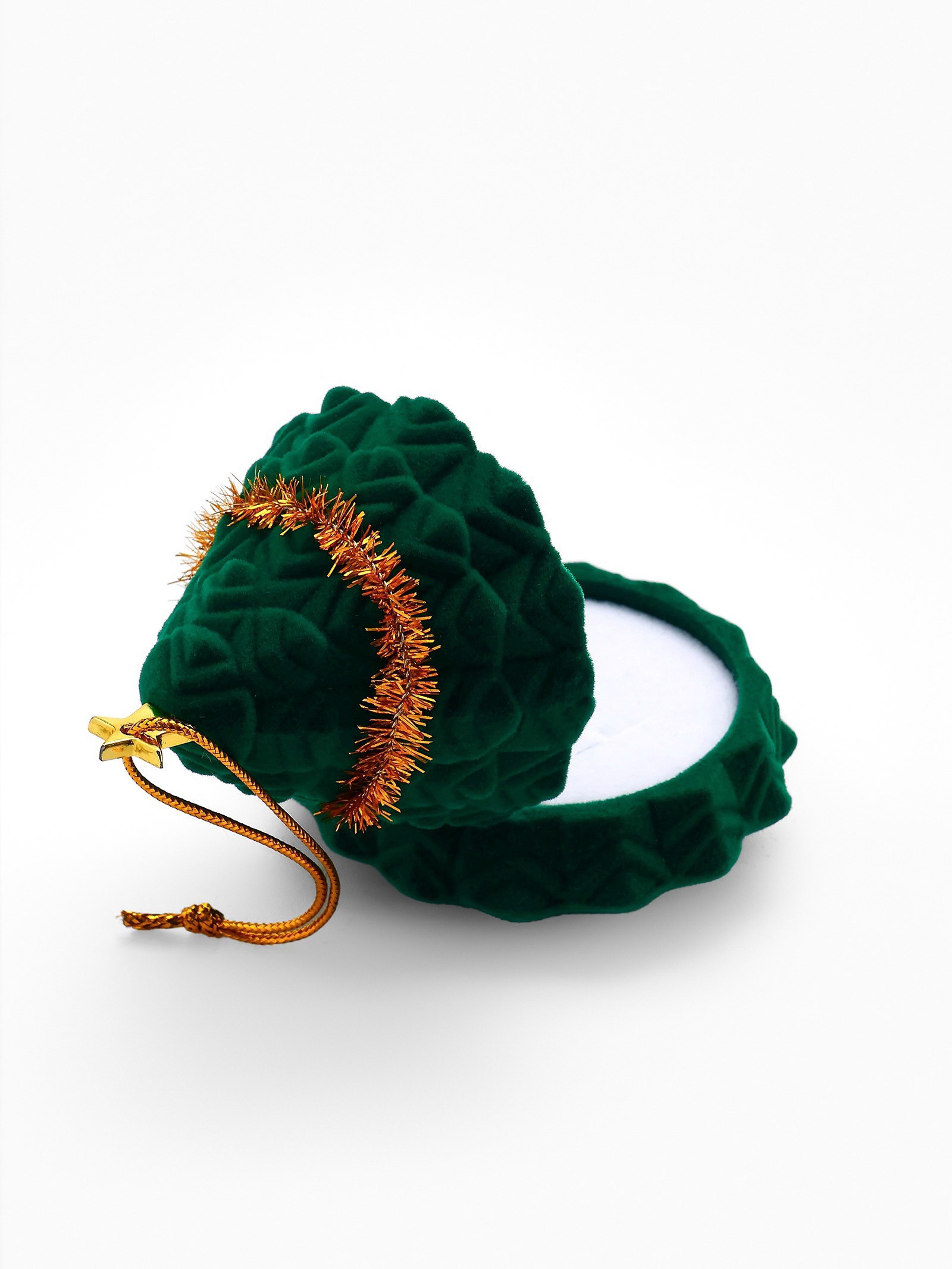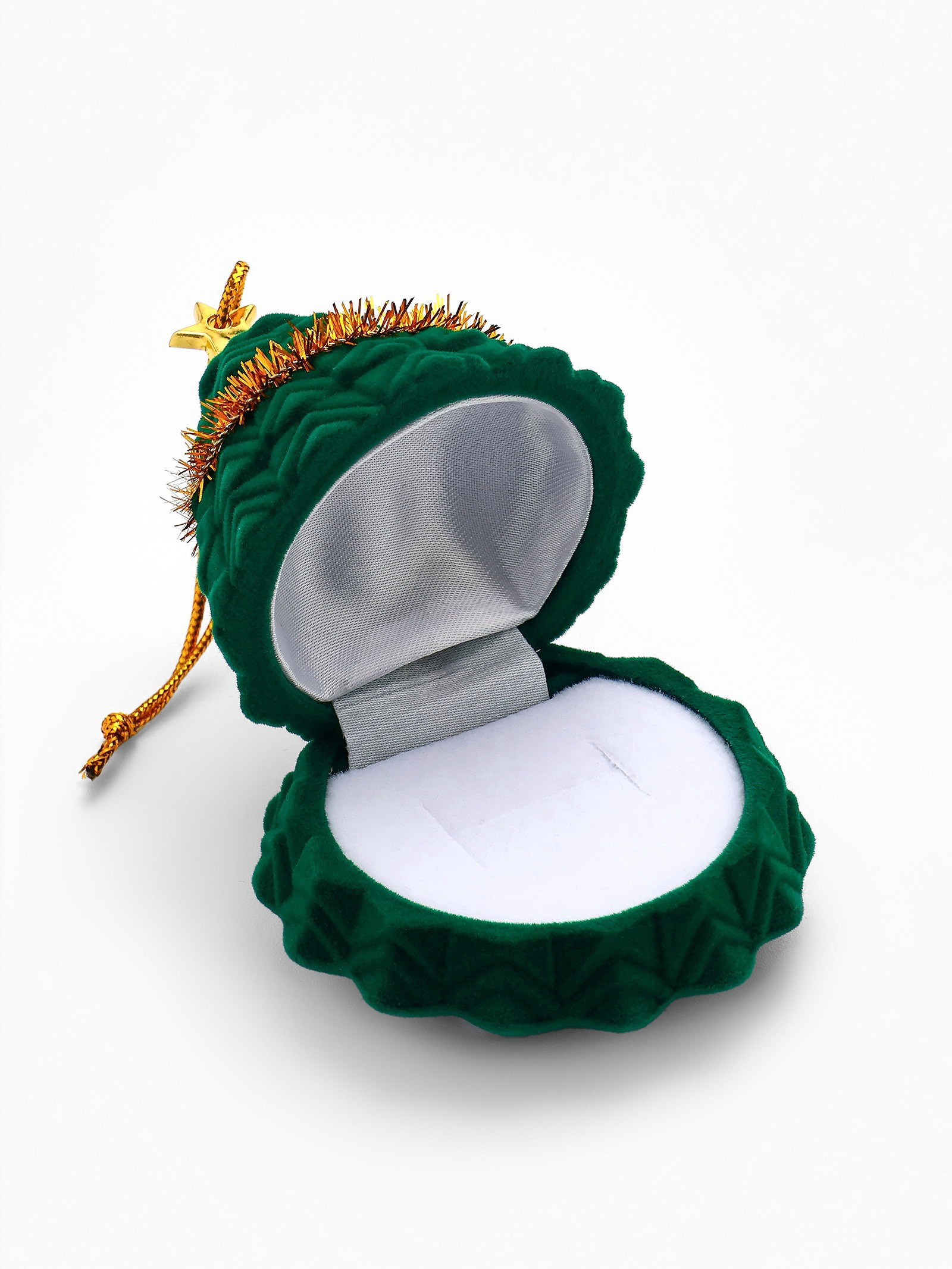 Футляр под серьги, кольцо "Новогодняя ёлочка", бархатный, 5.9x6.2x6.2 см, цвет зелёно-золотой, 6.2x5.9x6.2 см., Китай