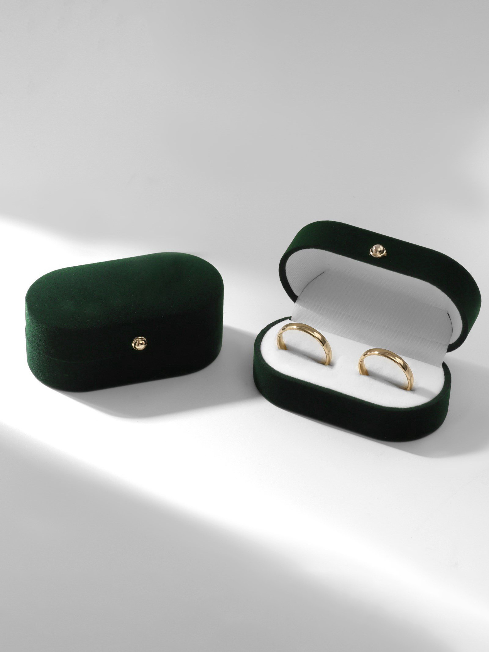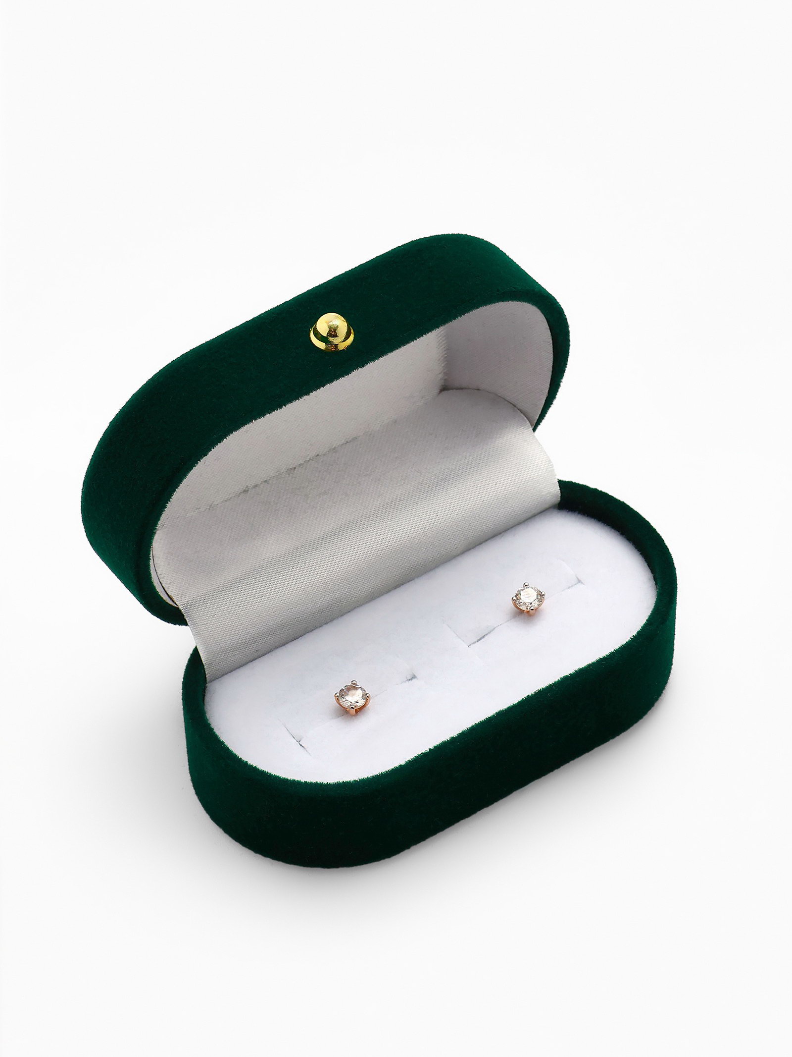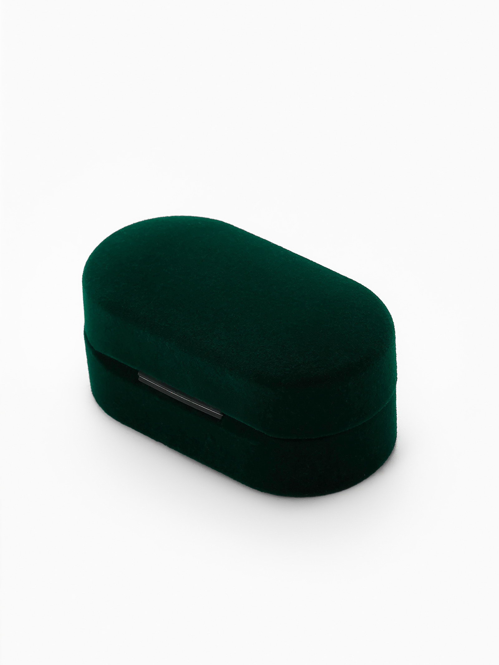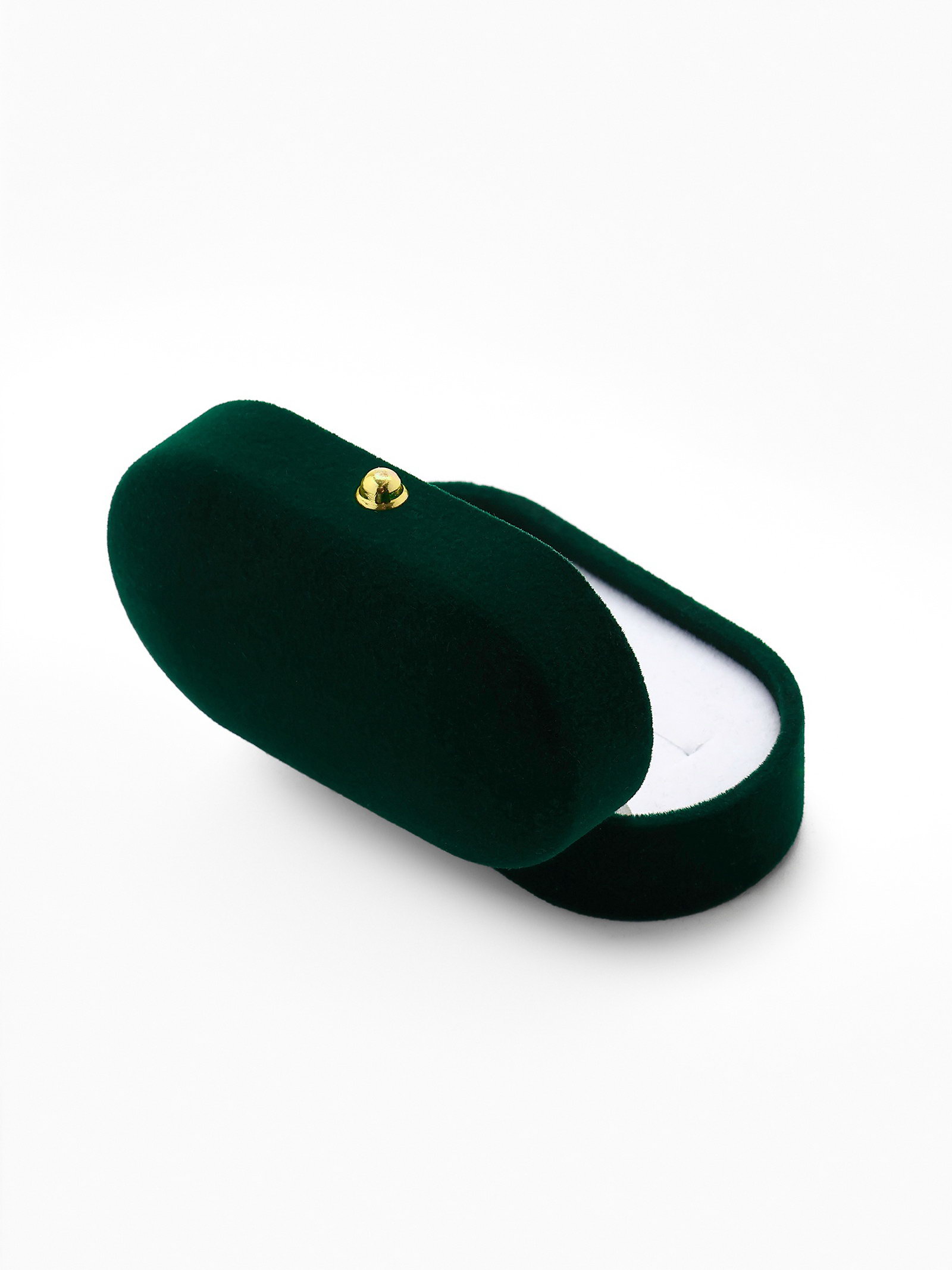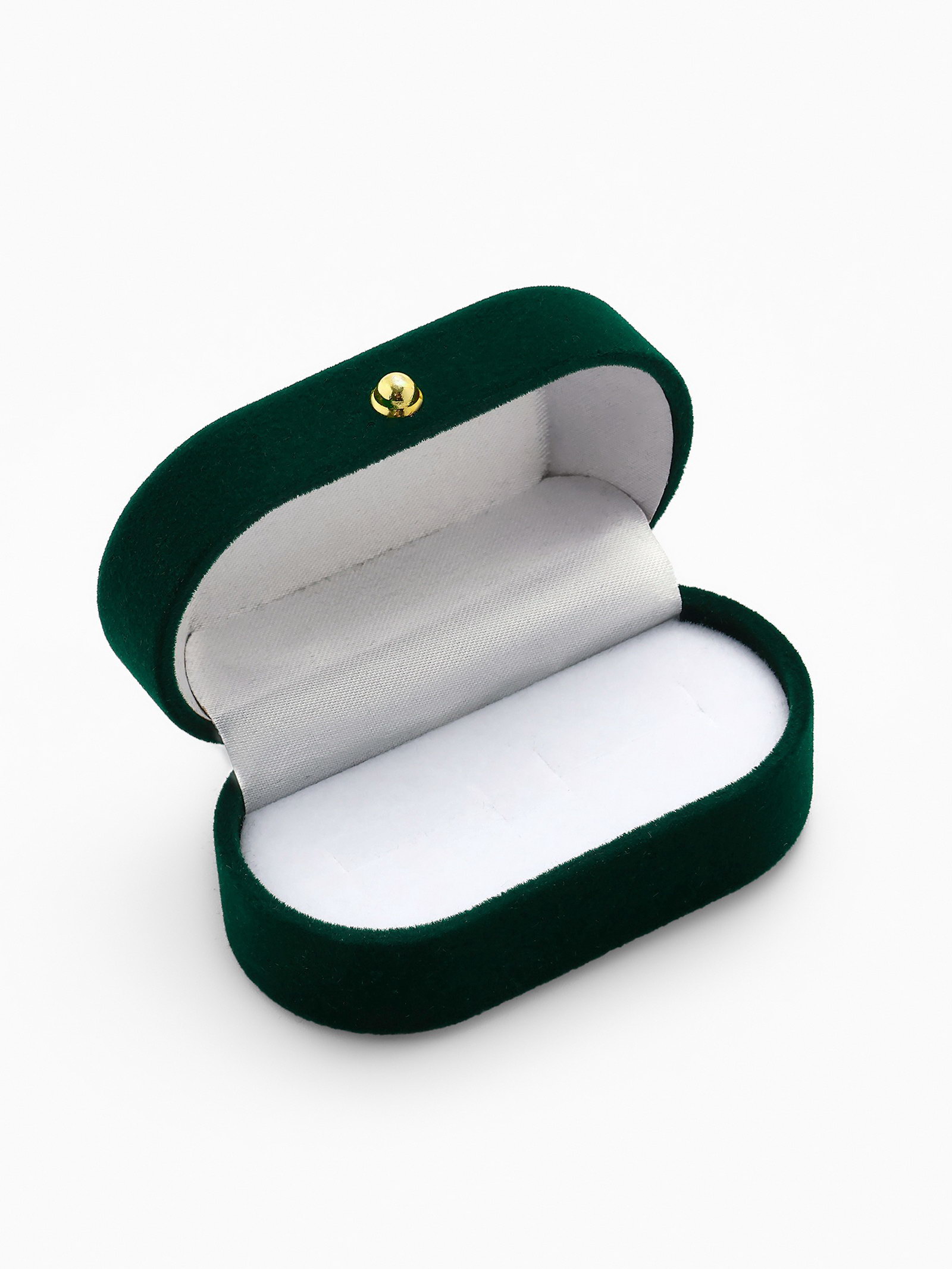 Футляр бархатный под серьги/ кольца/запонки, "Овал вытянутый" 7.5x4, цвет зелёный, вставка белая, 4x7.5x3 см., Китай