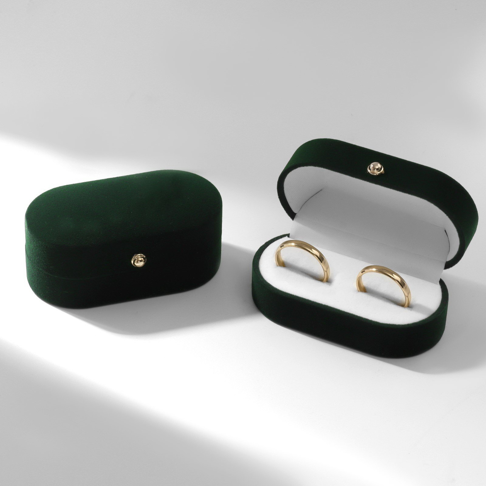 Футляр бархатный под серьги/ кольца/запонки, "Овал вытянутый" 7.5x4, цвет зелёный, вставка белая, 4x7.5x3 см., Китай