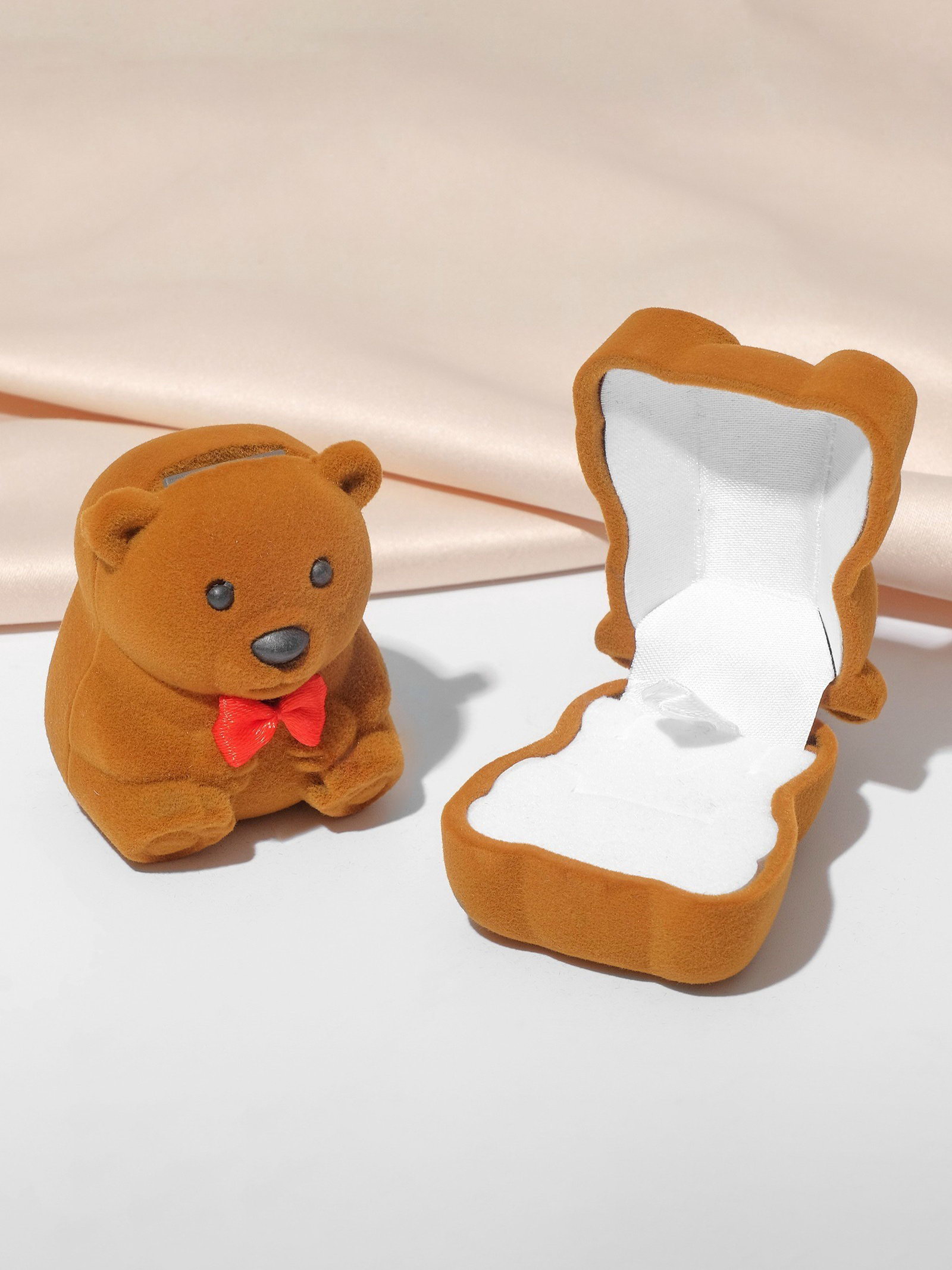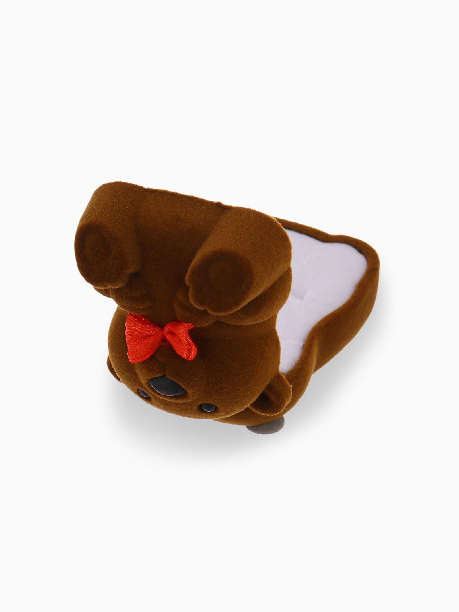 Футляр бархатный под кольцо "Медвежонок" с бантом, 4.6x5, цвет коричневый, вставка белая, 5x4.6x3.5 см., Китай