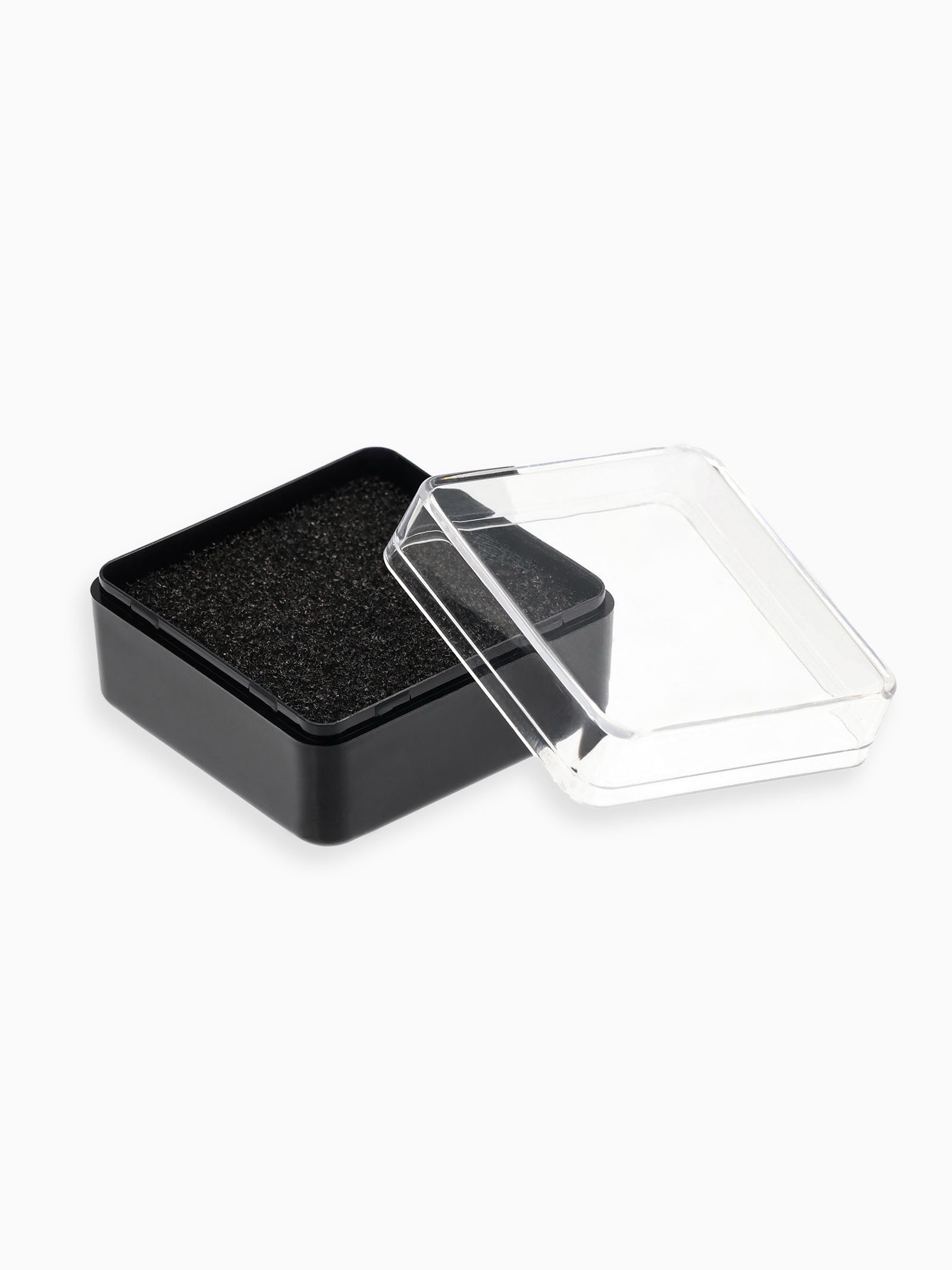 Футляр пластиковый для украшений и значка "Атрибутика", 4.1x4.1x2.4 см, прозрачная с чёрной вставкой, 4.1x4.1x2.1 см., Китай