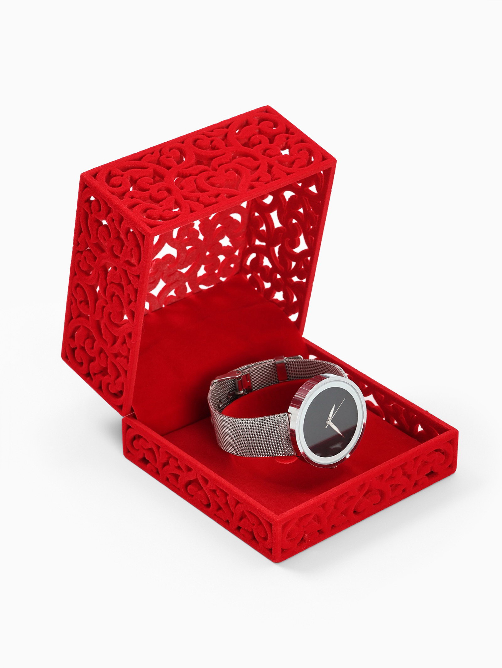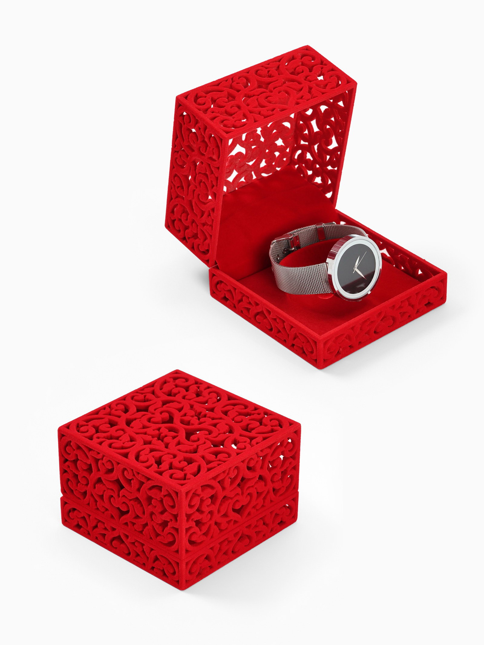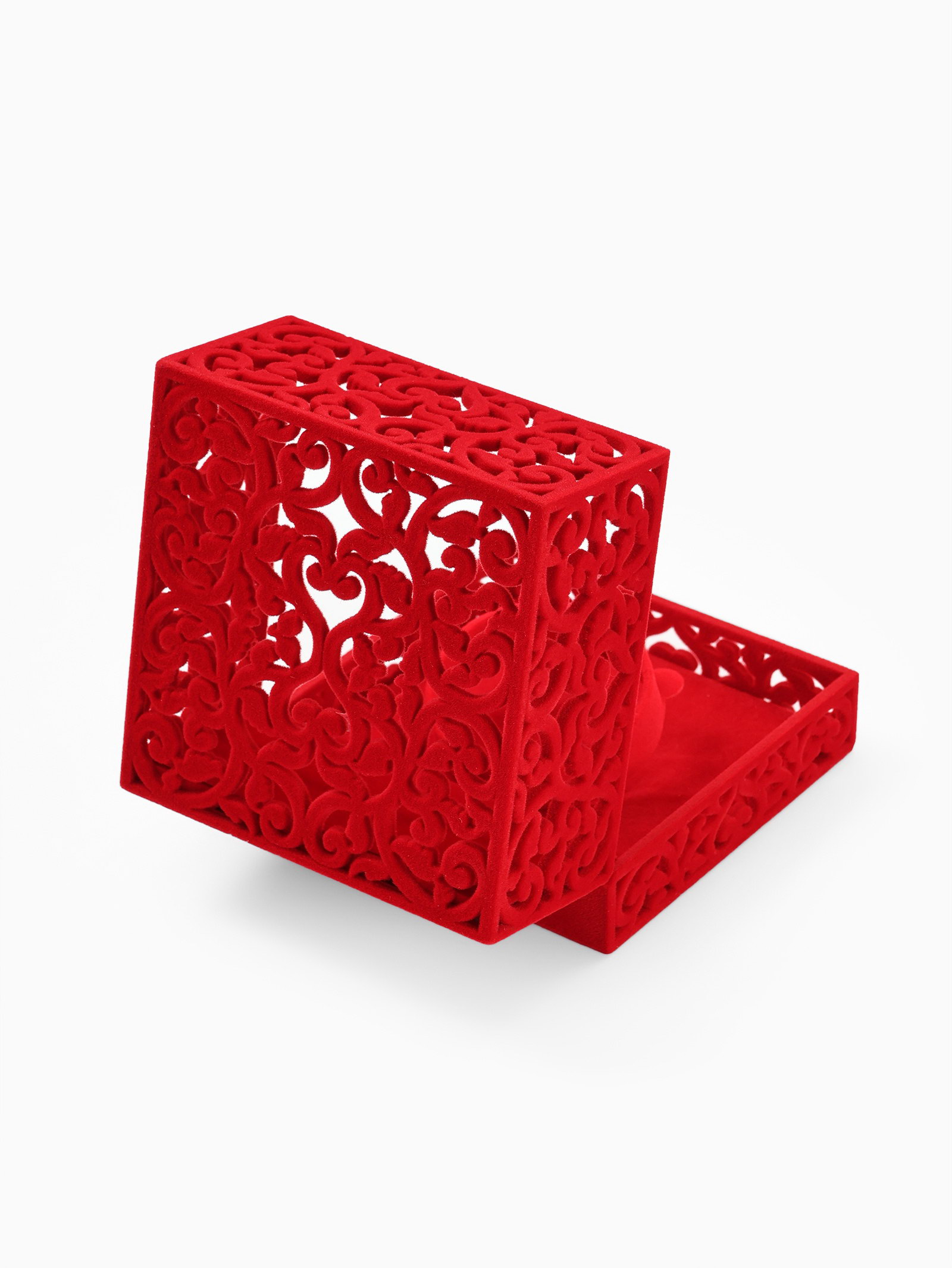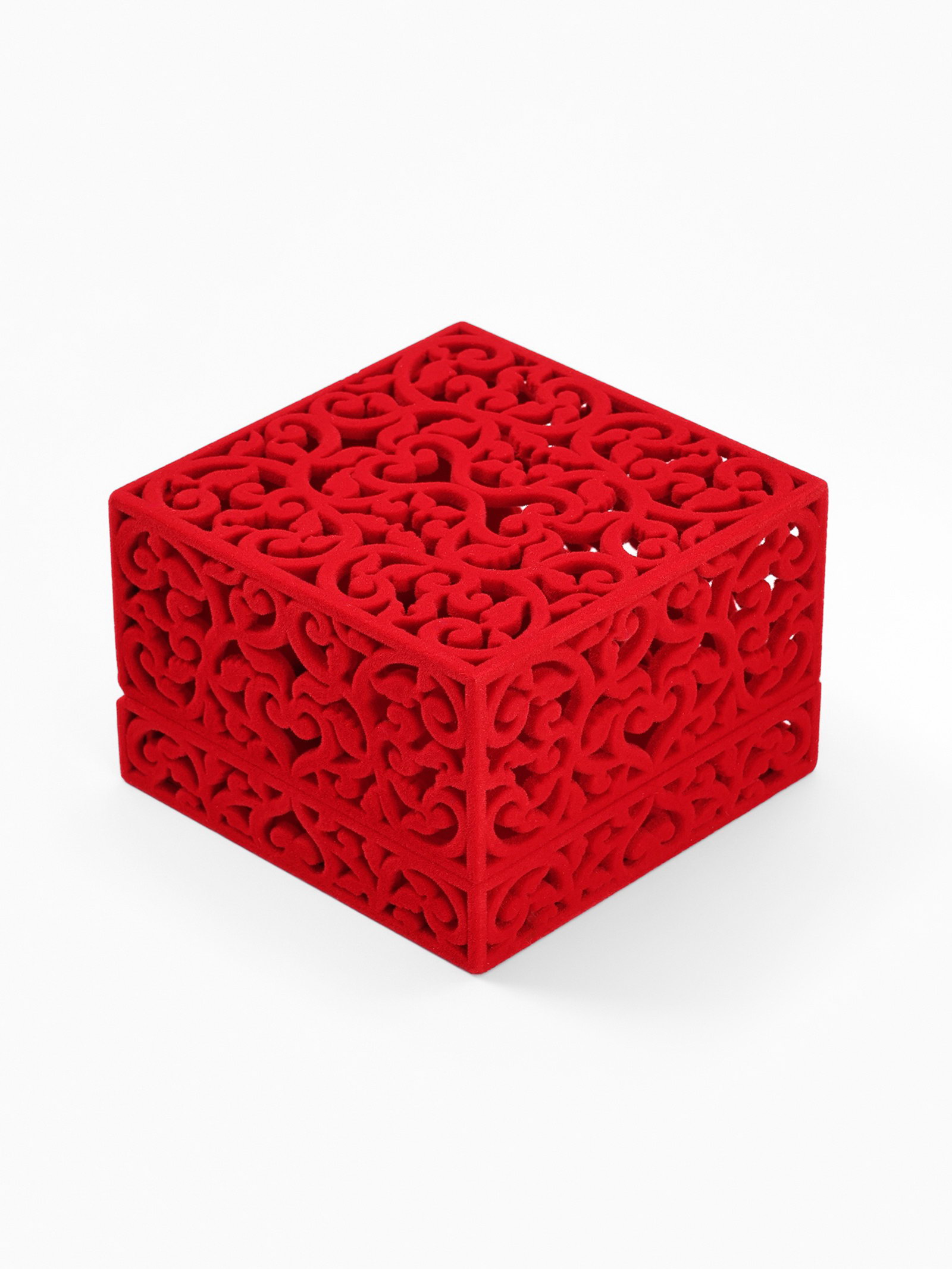 Футляр бархатный под браслет "Куб резной", 10*10*6.5, цвет красный, вставка красная, 10x10x6.5 см., Китай