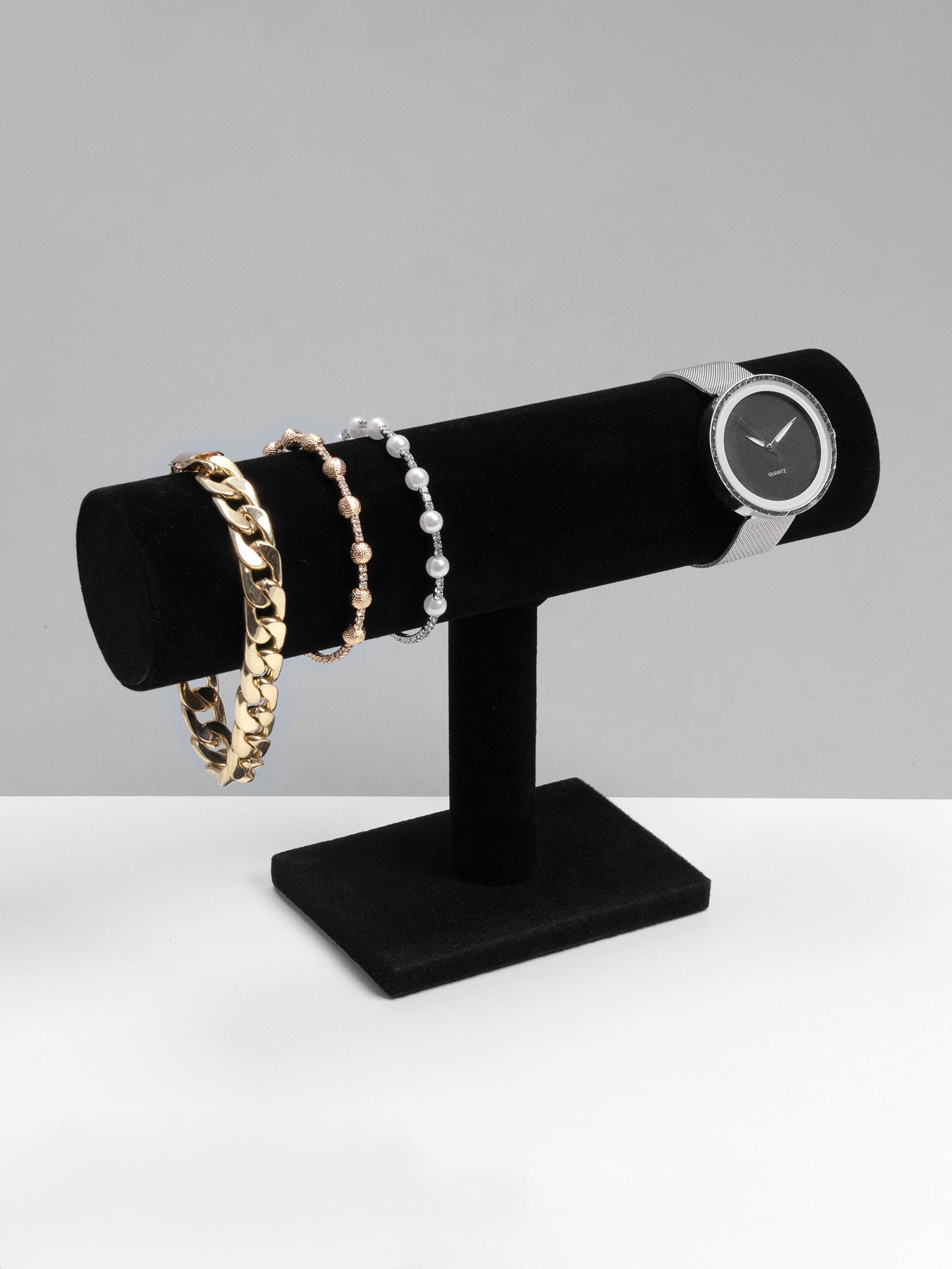 Подставка для часов, браслетов и цепочек 23x13.5x7 см, d=5 см, чёрная, 13.5x23x7 см., QF, Китай