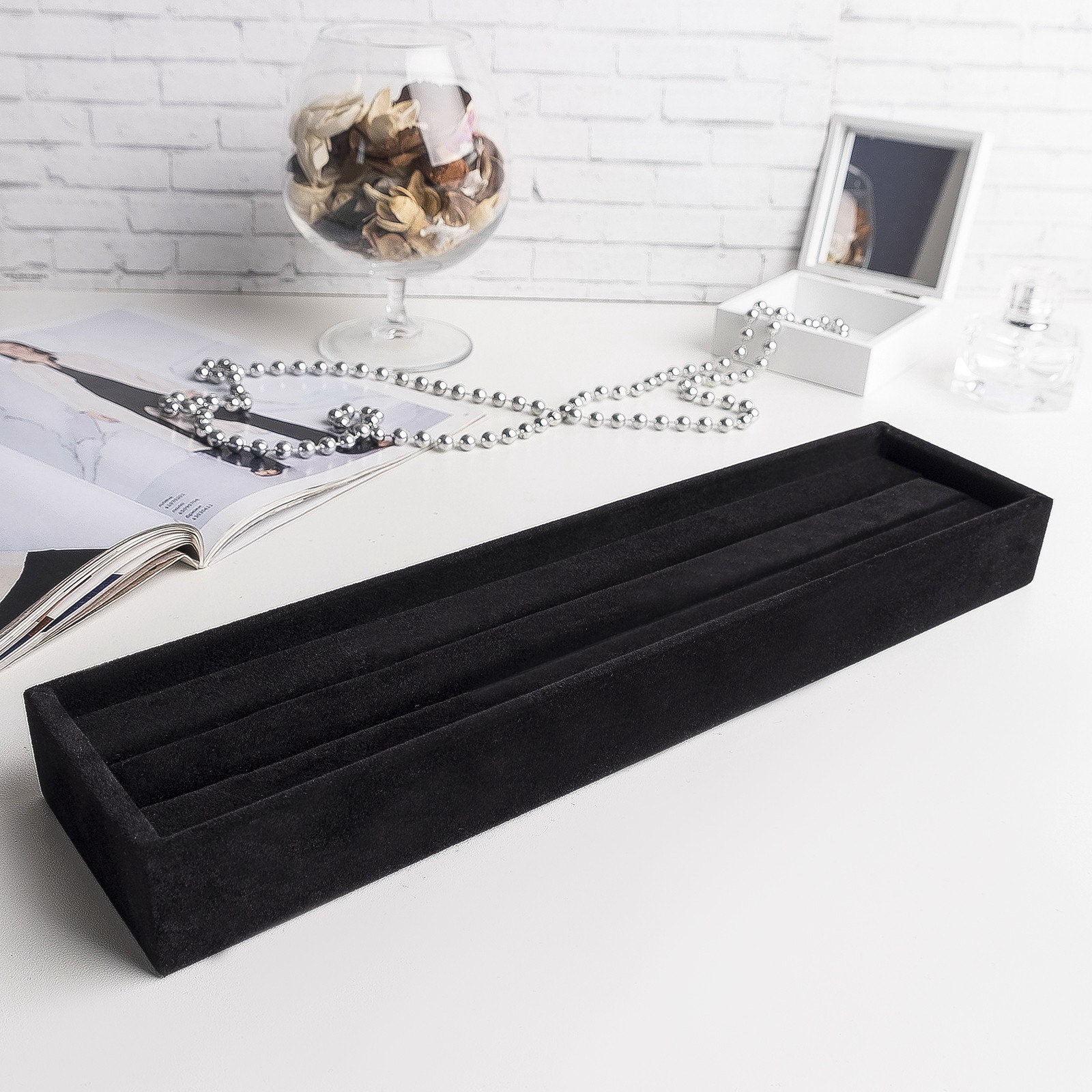 Подставка под кольца2 полосы, 35x10x3 см, цвет чёрный, 10x35x3 см., Queen fair, Китай