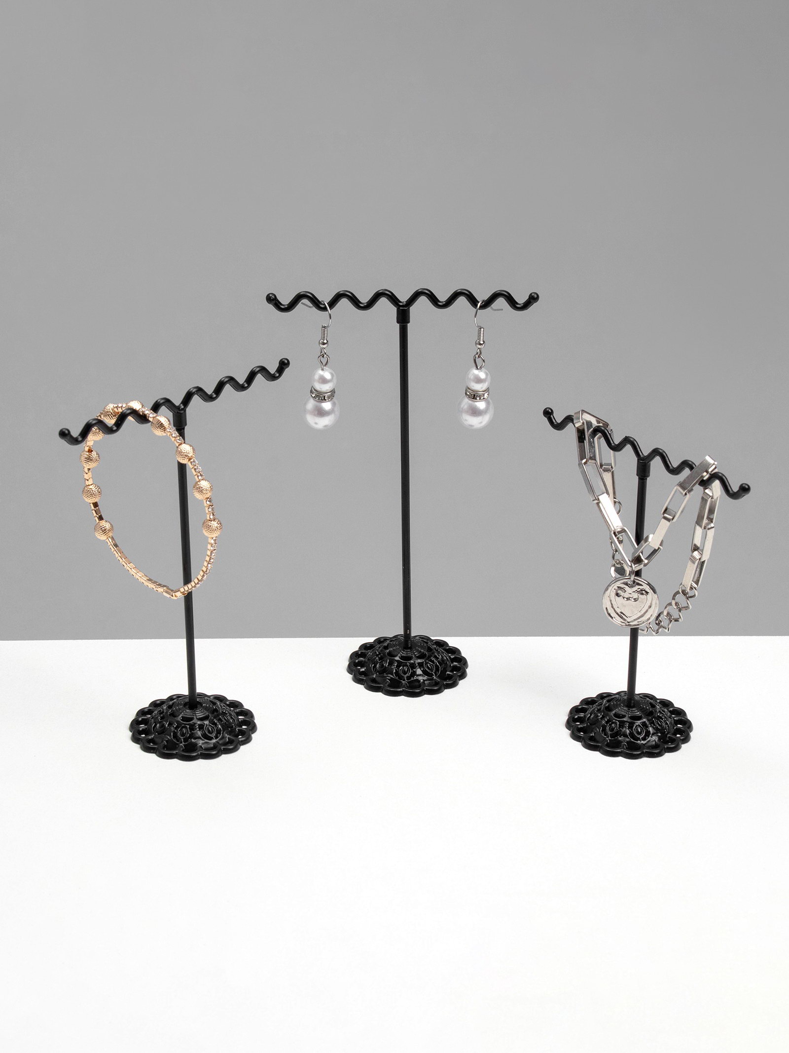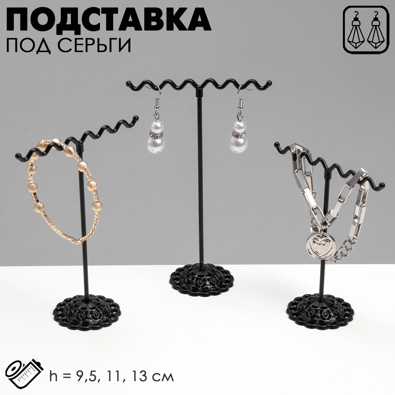 Подставка под серьги "Волны", набор 3 шт., h=9.5, 11, 13 см, чёрная, 3.5x8x13 см., QF, Китай
