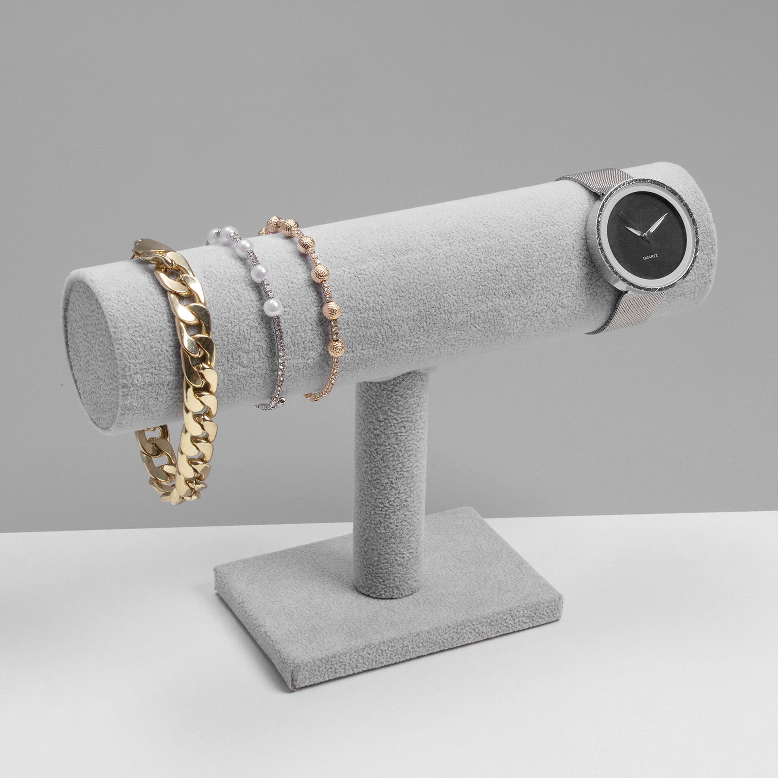 Подставка для часов, браслетов цепочек, 23.5x7x14 см, d=5 см, серая, 14x24x7 см., QF, Китай