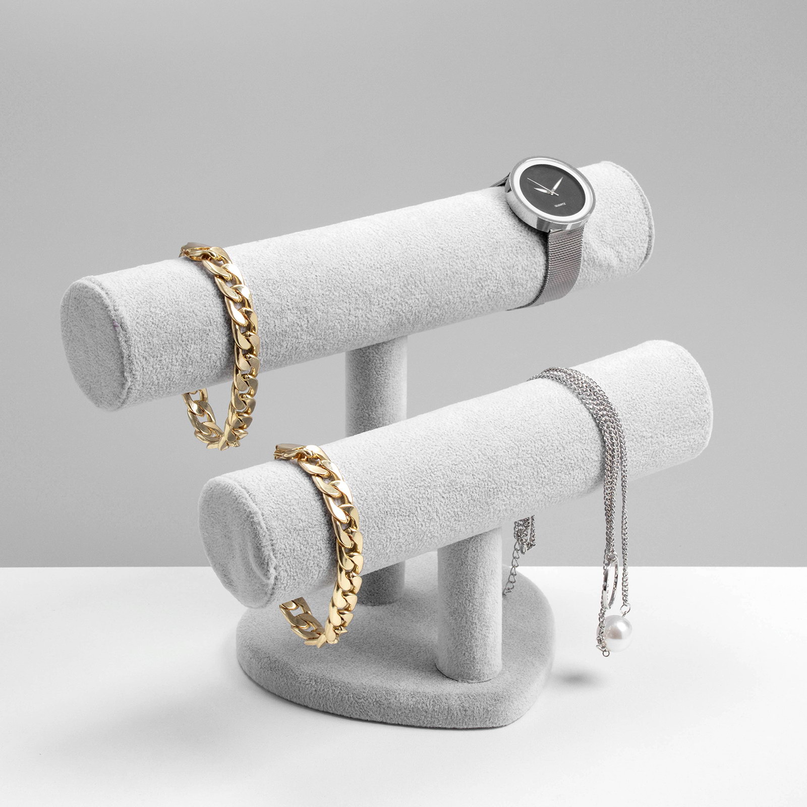 Подставка для часов, браслетов двухуровневая, сердце, 26x11x18 см, d=5 см, цвет серый, 11x26x18 см., QF, Китай