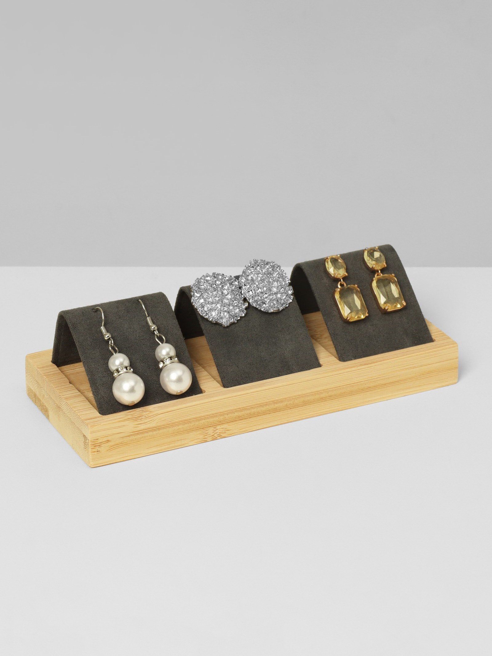 Подставка под серьги дерево, 3 пары, 15.5x6.8x4.5 см, чёрная, 6.8x15.5x4.5 см., QF, Китай