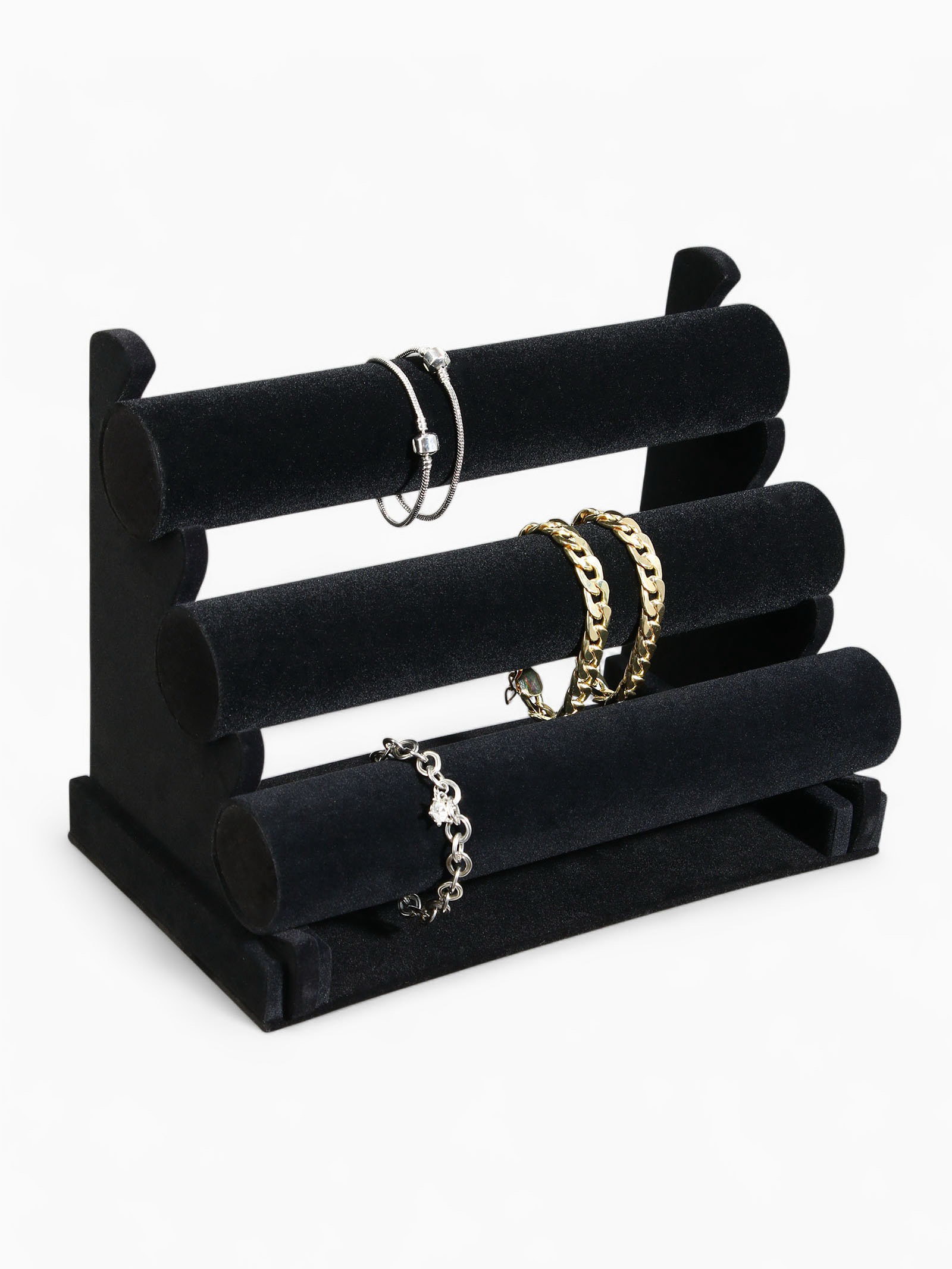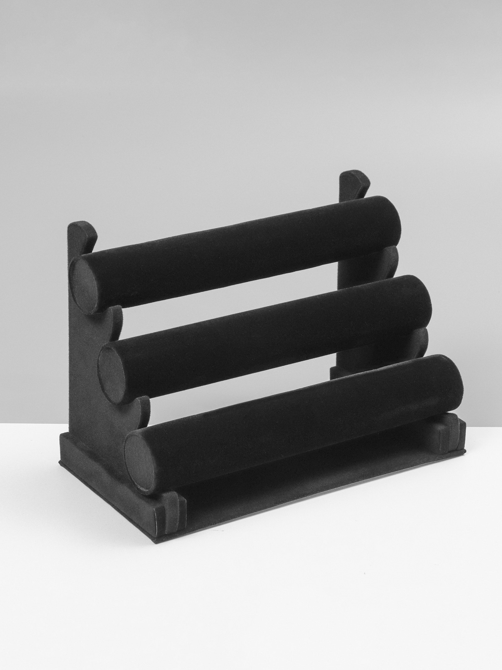 Подставка для часов, браслетов флок, 3 ролика, 31x17.5x23 см, d=5 см, чёрная, 17.5x30x23 см., QF, Китай