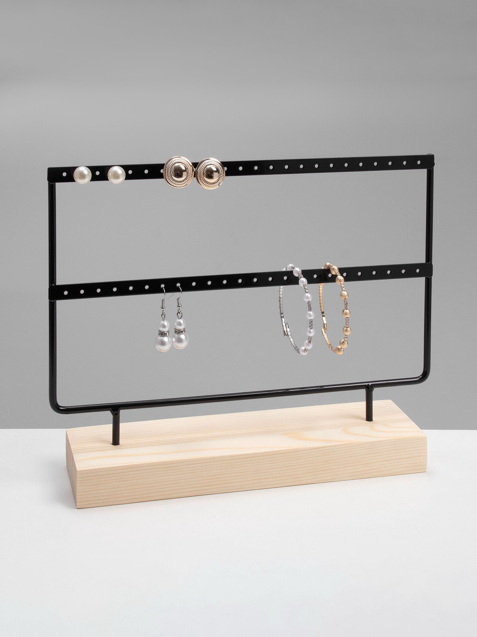 Подставка под серьги 2 яруса, на 24 пары серёг, 27x7x20, чёрная, 7x27x20 см., QF, Китай