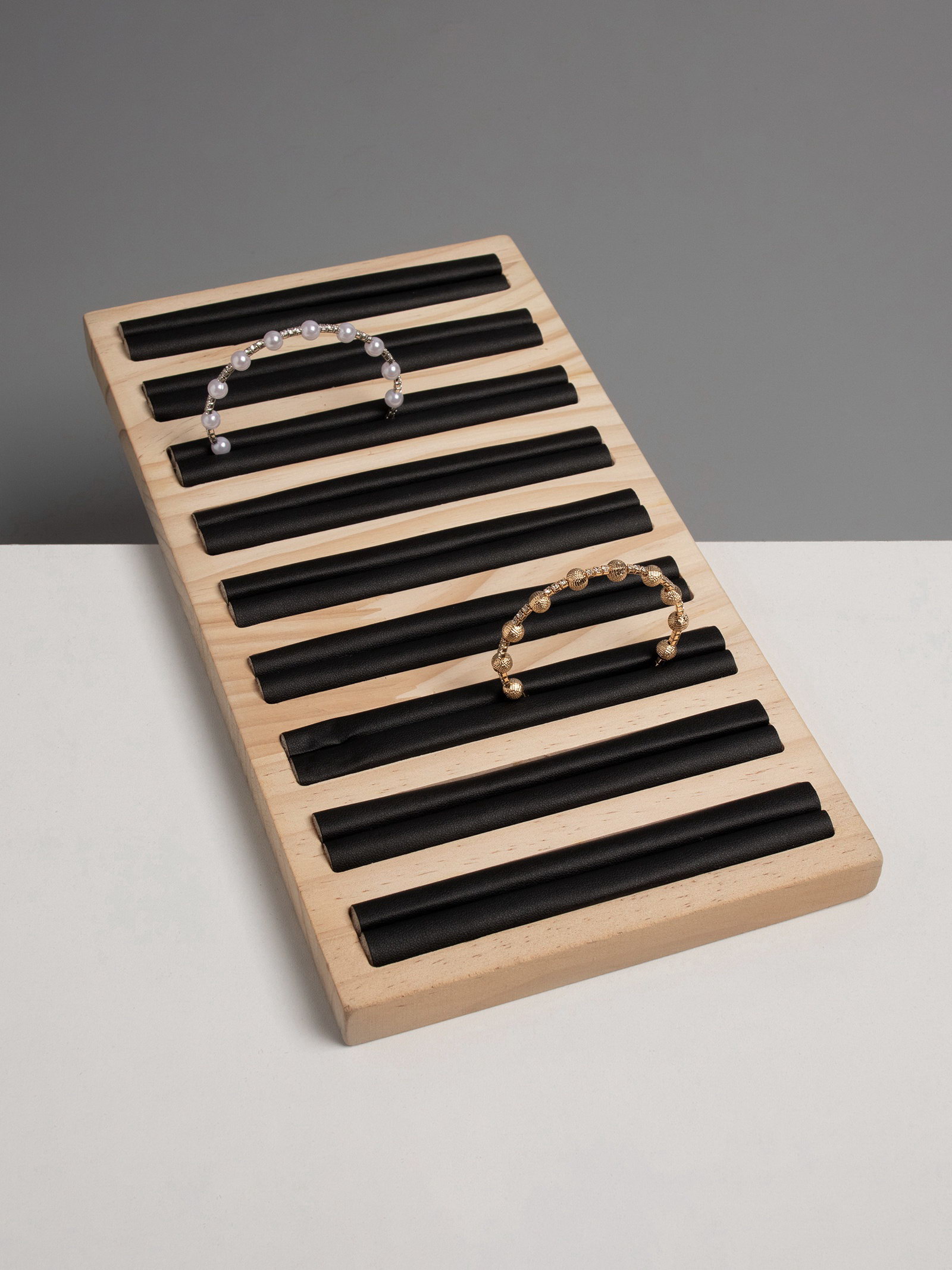 Подставка под кольца9 полос, дерево, 15x28.5x2 см, чёрная, 28.5x15x2 см., QF, Китай